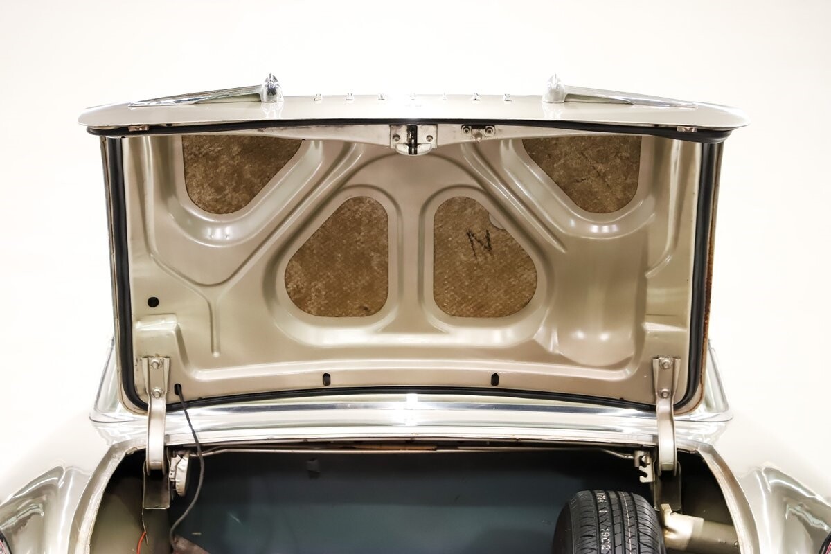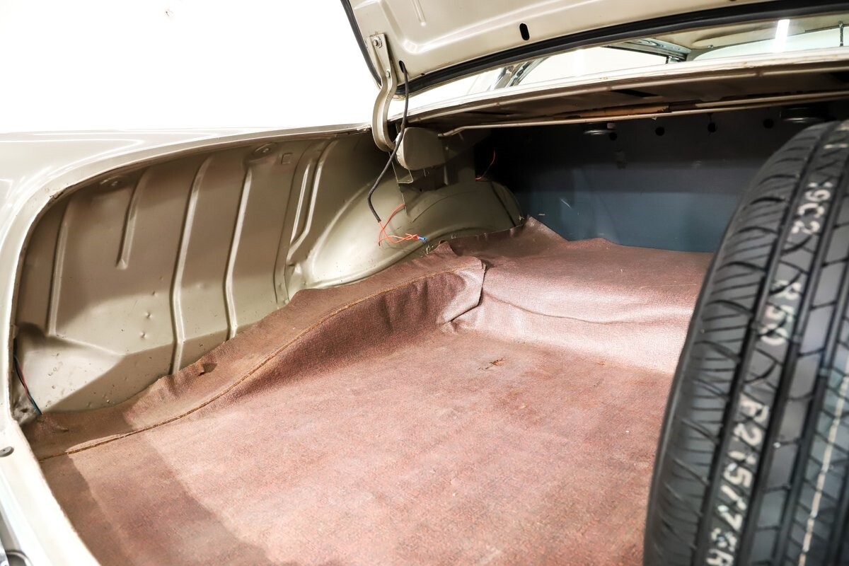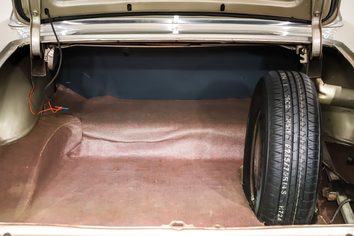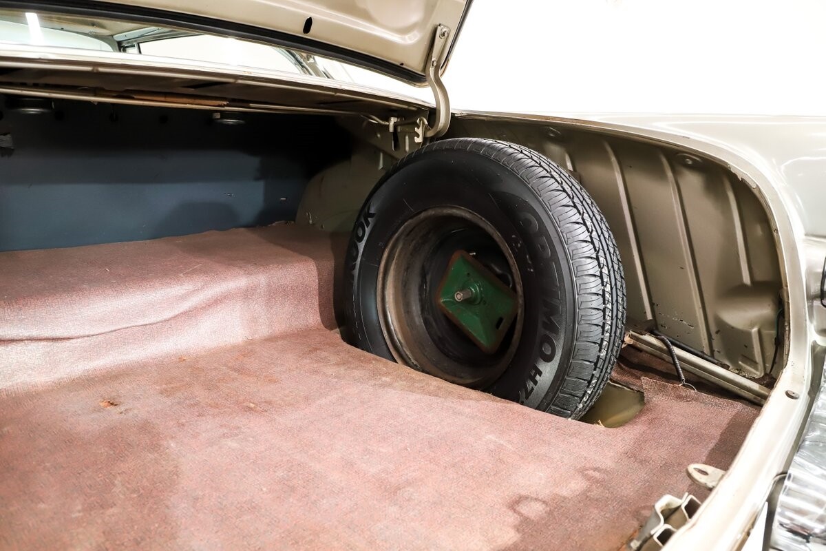 TRUNK COMPARTMENT: Inside the trunk is certainly all original paint and still shows very nicely. It even has the original mat, complete jack and spare assembly. There is a car cover still in a box.
