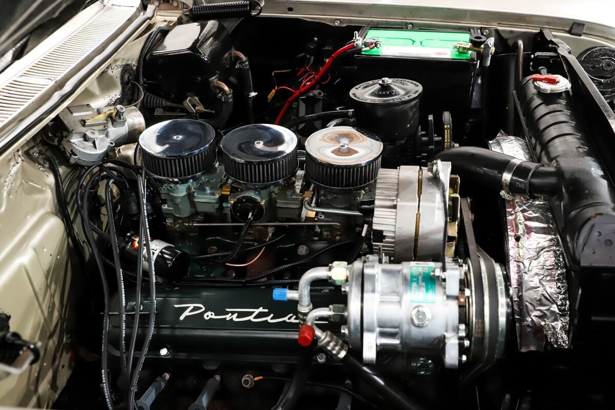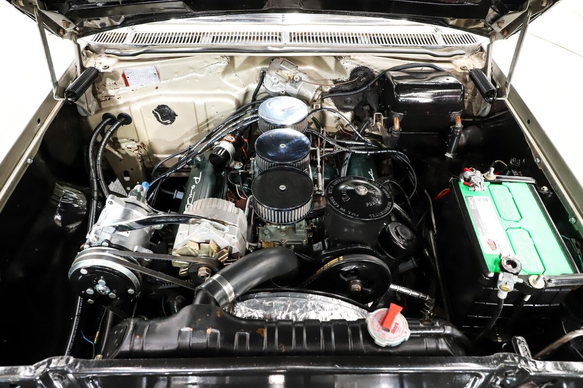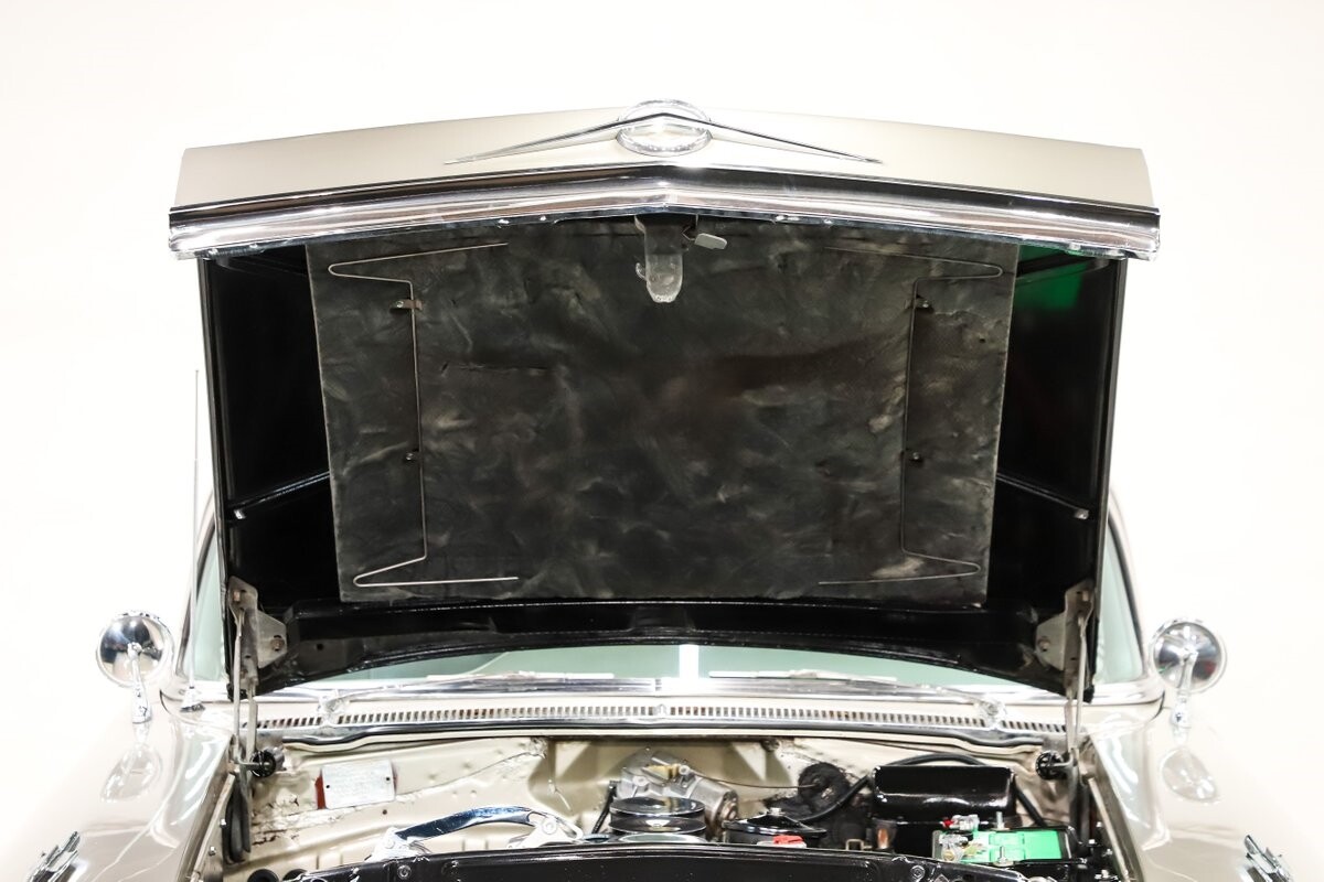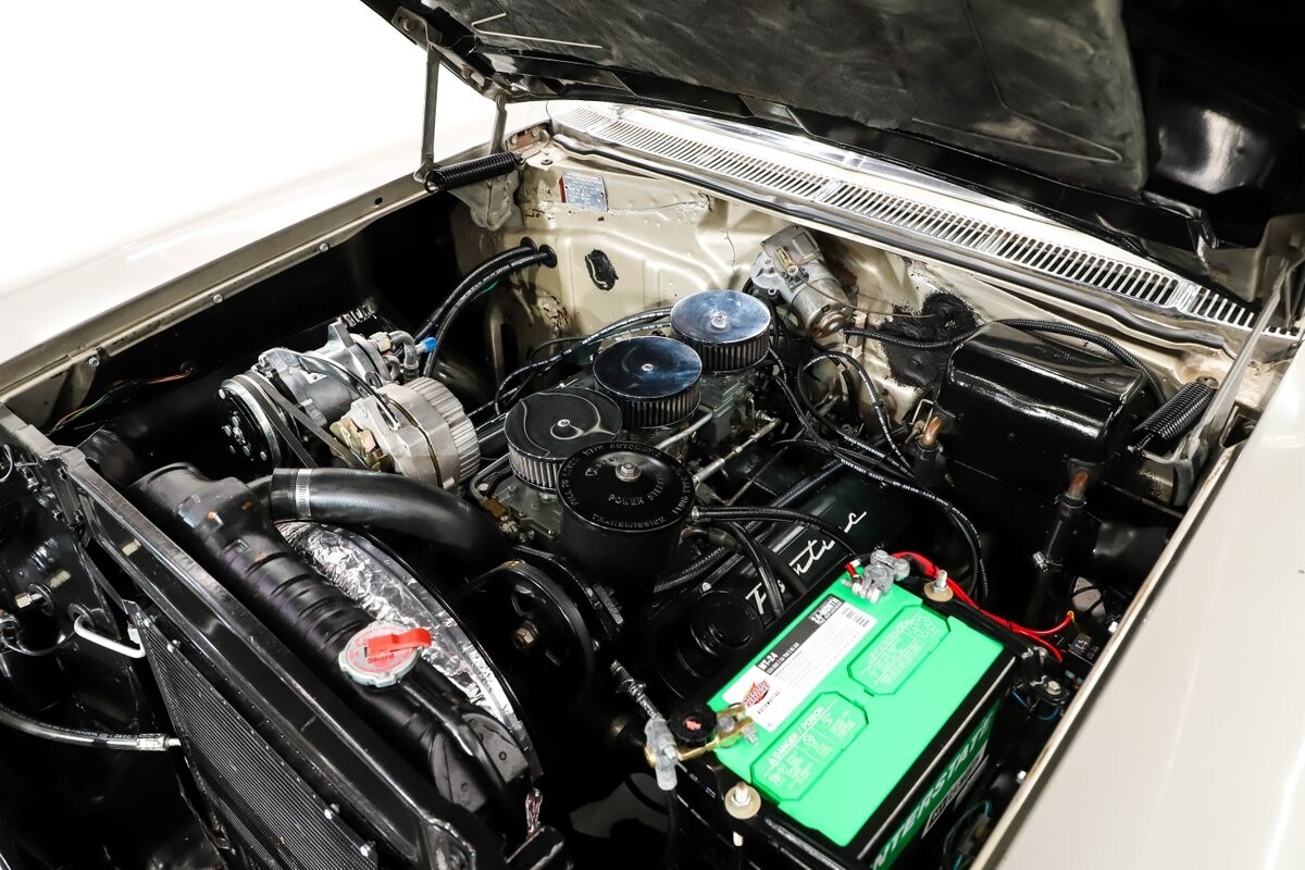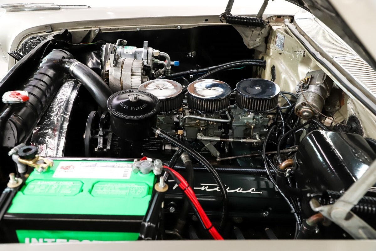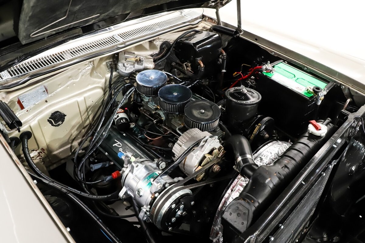 ENGINE COMPARTMENT: 347 with the optional Tri-Power carb set up. It is clean from oil pan to the intake; very probable it was rebuilt. The carbs were restored. Factory power steering and brakes. Upgraded heat and a/c system. The generator was upgraded with an alternator. Everything is very clean and proper. Original paint on the firewall.