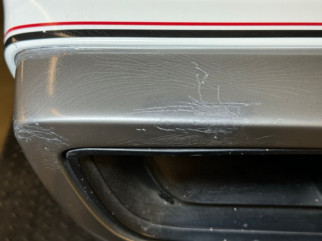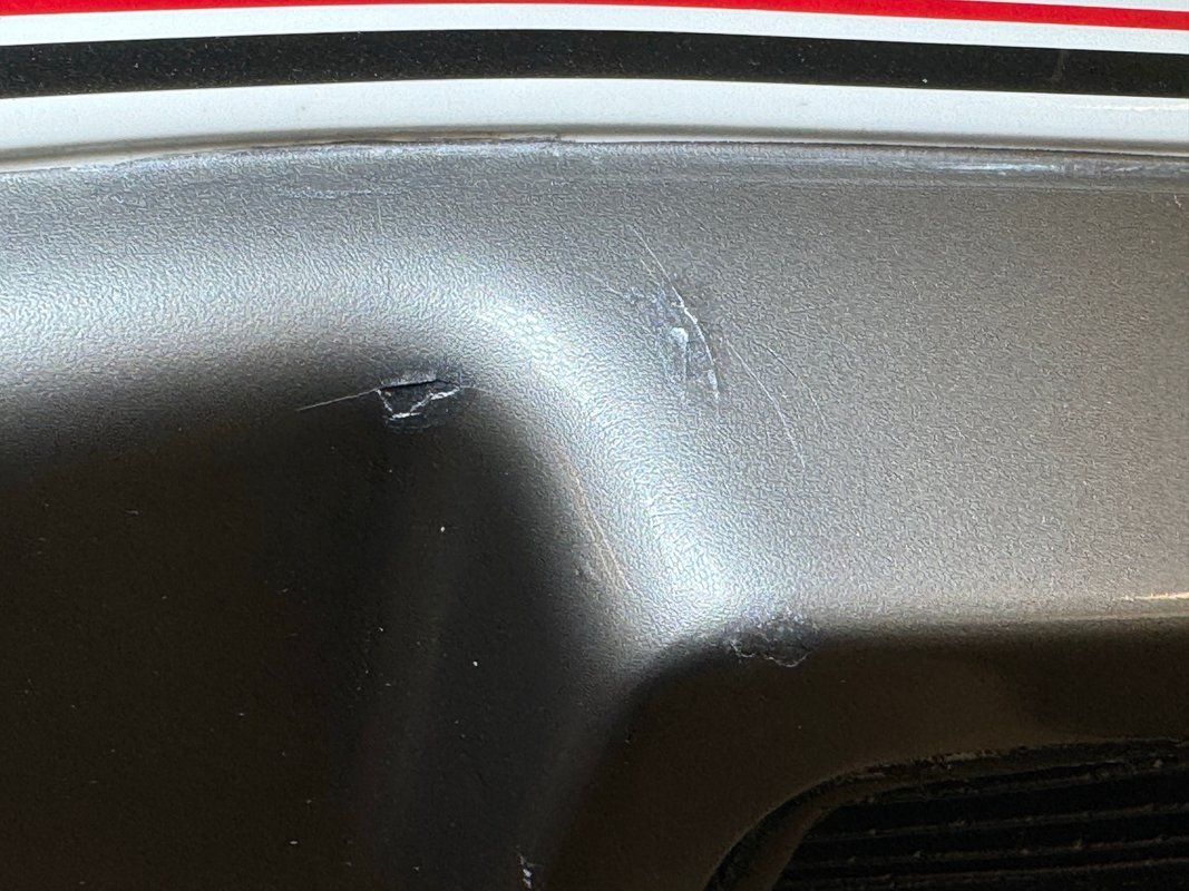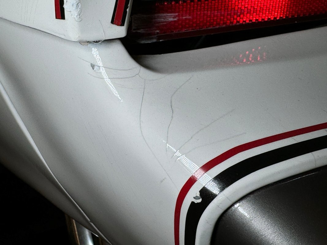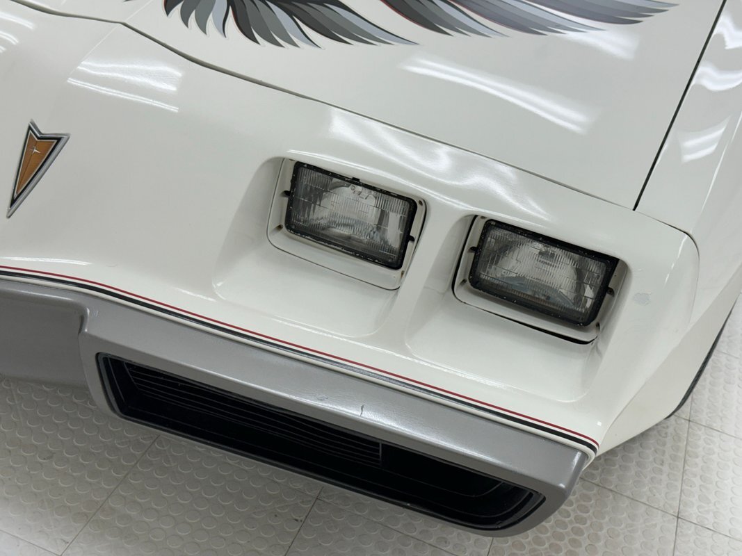 The base for the special paint and decal treatment begins with Cameo White enhanced with gray paint on the grille surround of the Pontiac's Enduro nose and a twin pinstripe encircling the gray. Also in front, white headlight bezels replace the standard black and the screaming eagle's fiery breath flows over the turbo bulge while gray paint floods the area over the bird, then drifts over the roof and shoulder line of the car. The pinstripes pick up color from the bird and circle the car, including the rear window, while the back bumper cover picks up the gray. Even if you don't like Trans Ams, there's no denying the beautiful design which our car wears well. The 15x8-inch turbine wheels were used on other Trans Ams, but only the pace car received white ones. Imperfections on this car are reserved mostly for flex cracks in the Enduro bumper cover paint, front and rear and some minor damage to the front air dam.