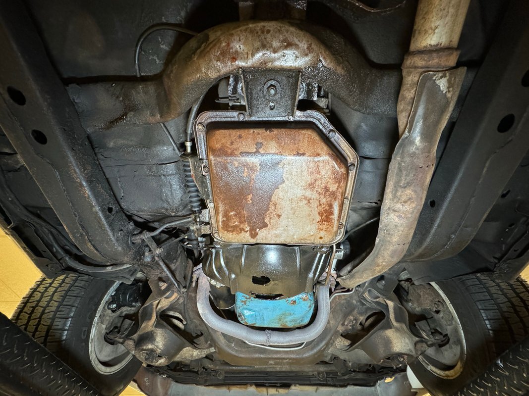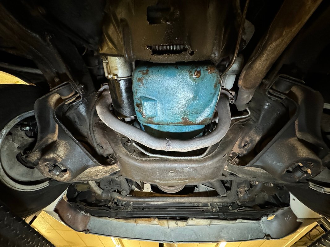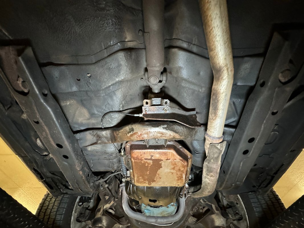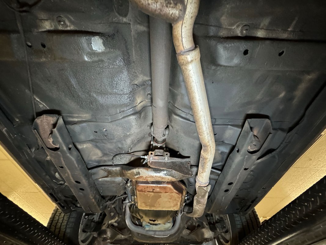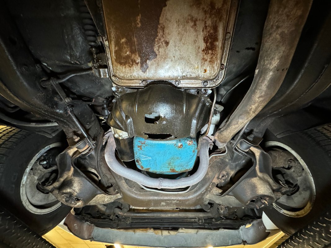 Driver quality underneath with plenty of surface rust but no invasive rust was noted. The exhaust flows into a Y-pipe, then a pair of stock style mufflers, up and over the rear axle and existing through the immortal downturned twin tailpipe chrome splitters. We note a cracked flywheel cover with two significant holes, but aftermarket parts are readily available for the F-body crowd. For suspension the car is equipped with coil springs up front and leaf springs in the back.