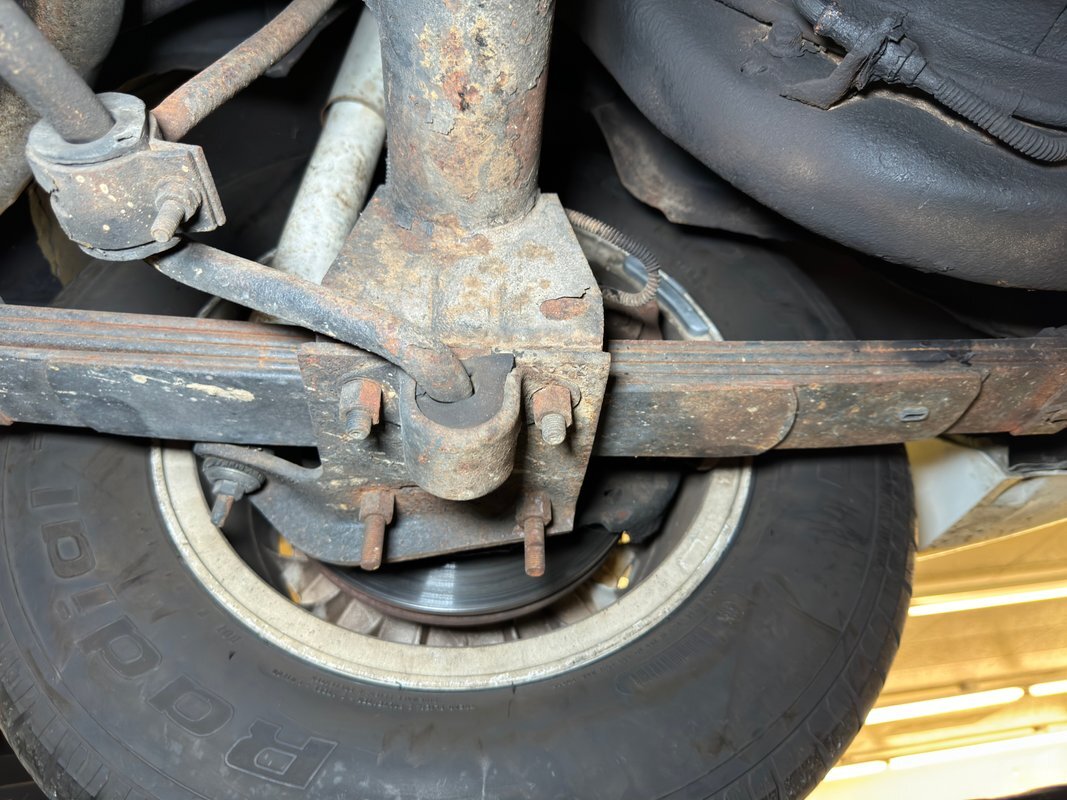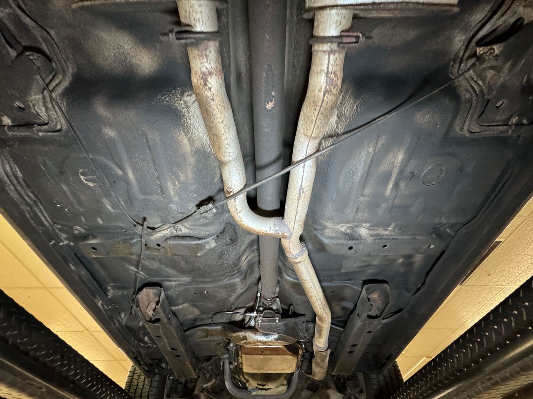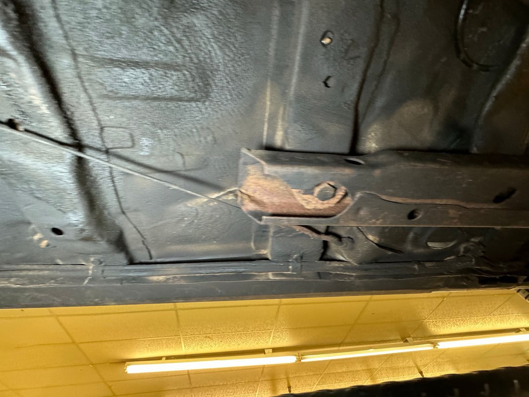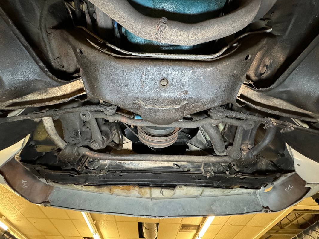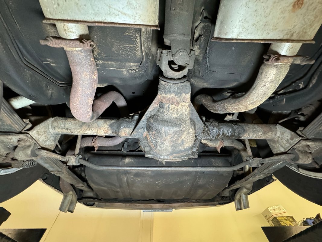 Driver quality underneath with plenty of surface rust but no invasive rust was noted. The exhaust flows into a Y-pipe, then a pair of stock style mufflers, up and over the rear axle and existing through the immortal downturned twin tailpipe chrome splitters. We note a cracked flywheel cover with two significant holes, but aftermarket parts are readily available for the F-body crowd. For suspension the car is equipped with coil springs up front and leaf springs in the back.