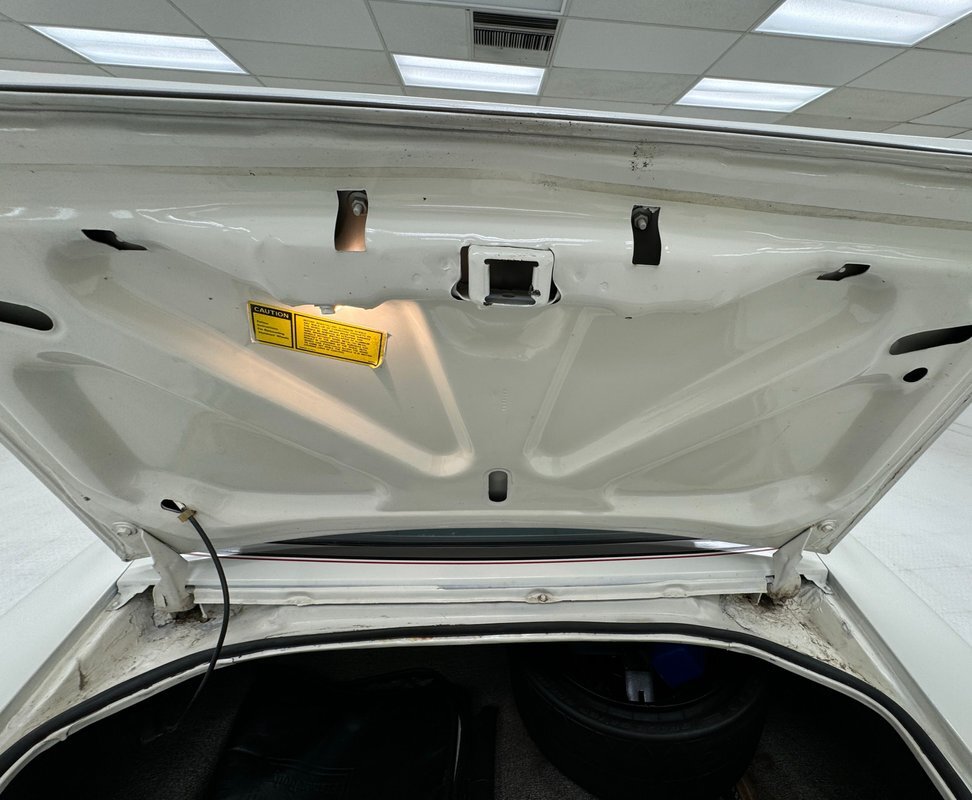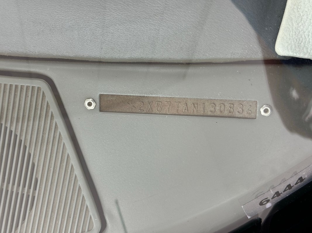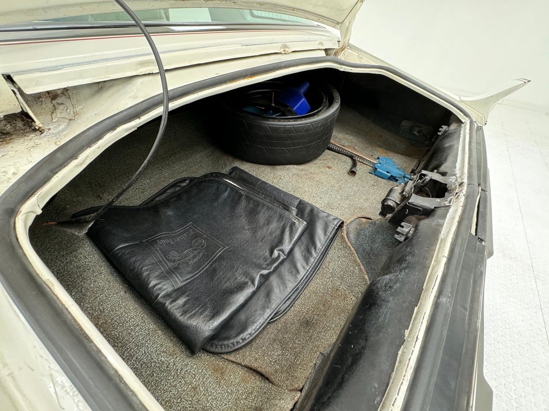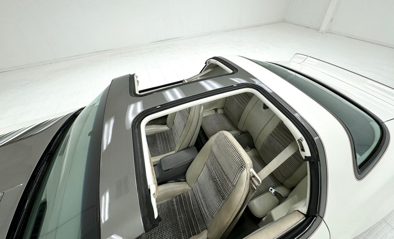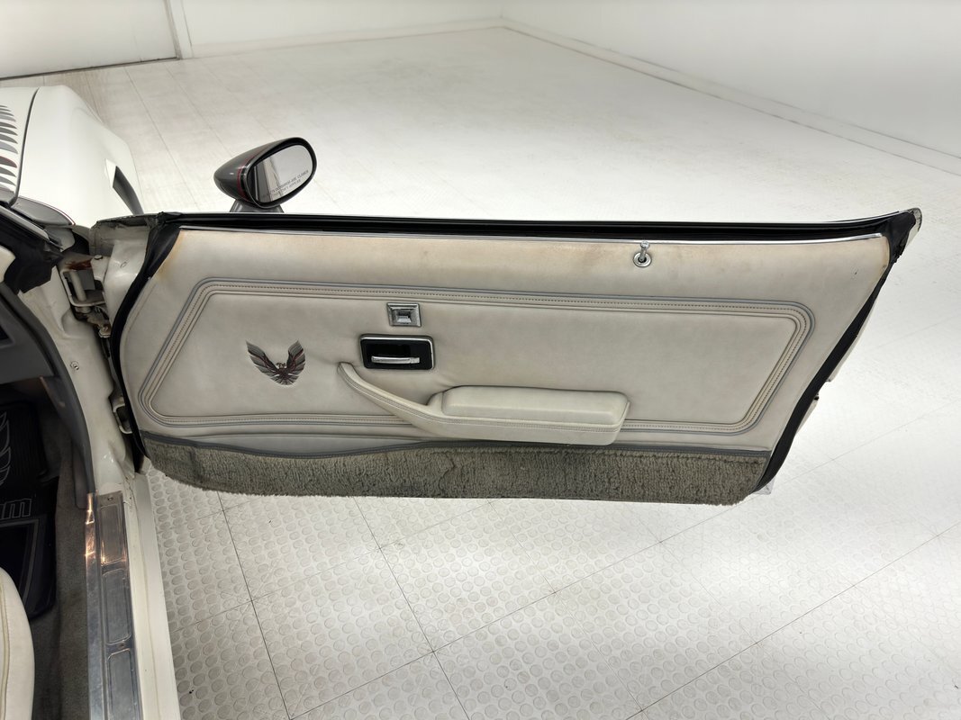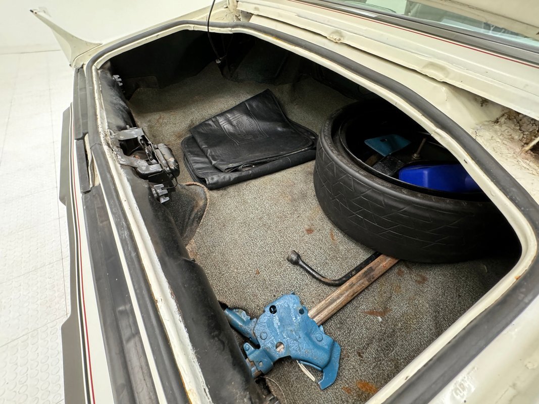 Oyster gray vinyl over the gray carpeted footer is presented in standard Trans Am door panel configuration for the period, and the carpet shows a bit of age. Oyster cloth seats are also in standard configuration and register wear as when the checkered black pattern begins to merge, as seen on the seat of the driver's side. Aftermarket covers are available if the new owner chooses to go in that direction. As is, they are not torn, and the back seats look fantastic with the screaming chicken embroidered on the center panel. Gray leather wraps the sport steering wheel mounted on GM's widely used steering column in front of the turned metal dash where standard gauges fall in a line and an added Sunpro boost gauge has been added. Climate controls also fall within the turned metal area while down lower, an AM/FM/Cassette radio is situated over the ashtray. Turned metal applique also covers the shifter plate in the center console followed by window switches and an armrest over the storage bin, all in great shape. Gray plush carpet covers the floor and the T-tops look great and so does the frame around them. Showing a bit of usage, the trunk is lined with a gray mat and has space saver spare, jack, and T-top covers.