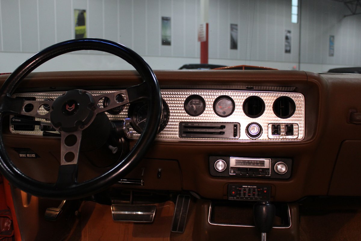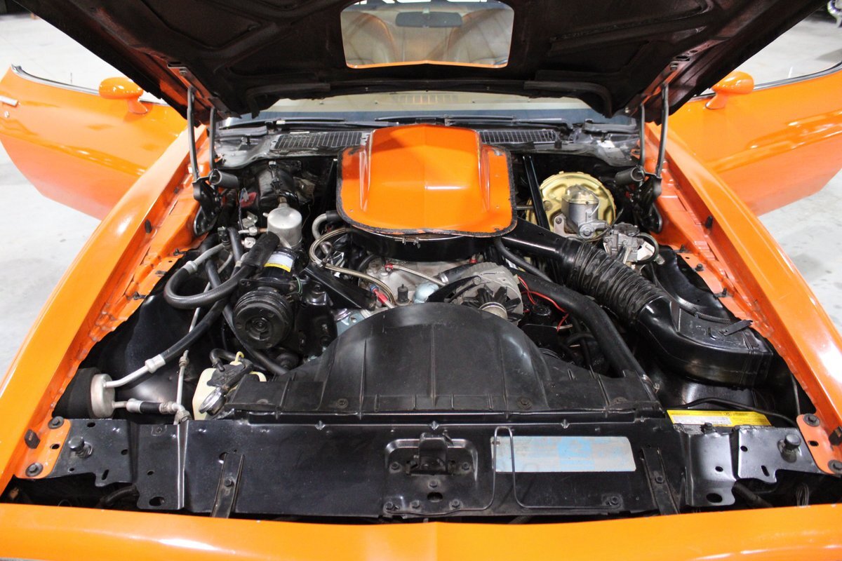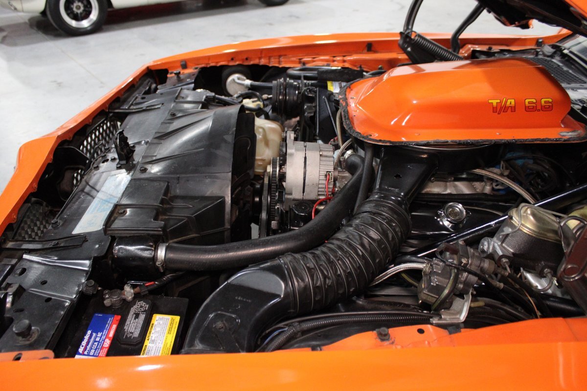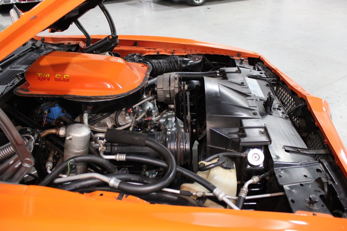 This highly original, two-owner example was optioned with power steering, power disc brakes, rear seat console, power windows, tilt column, and the T/A 6.6L 400ci four-barrel V8 engine. Also included are the original window sticker, build sheet, service records, lowered suspension, chassis bracing, an updated aluminum Holly intake manifold, along with a VSC oil pan and VSC wheels.