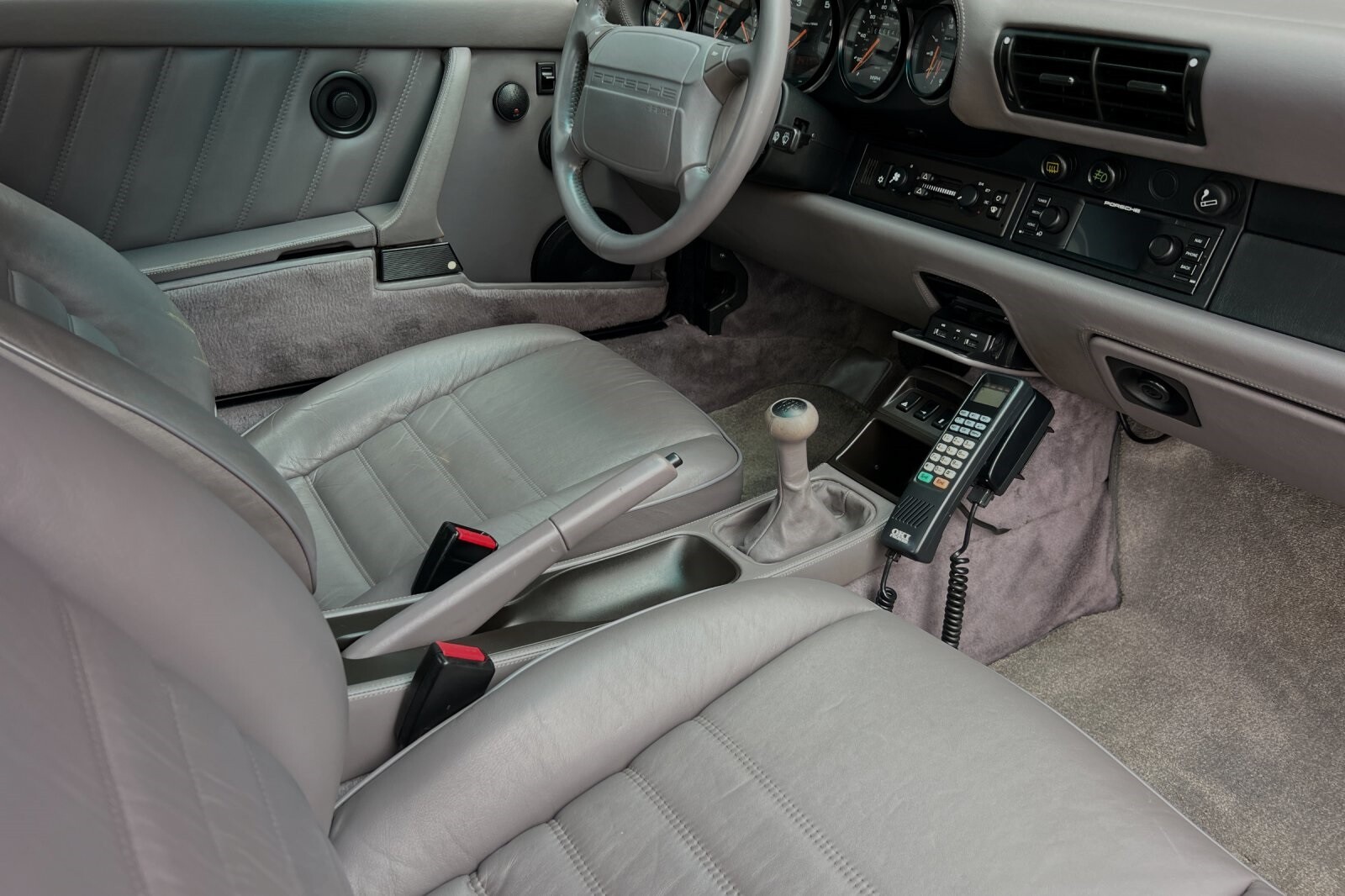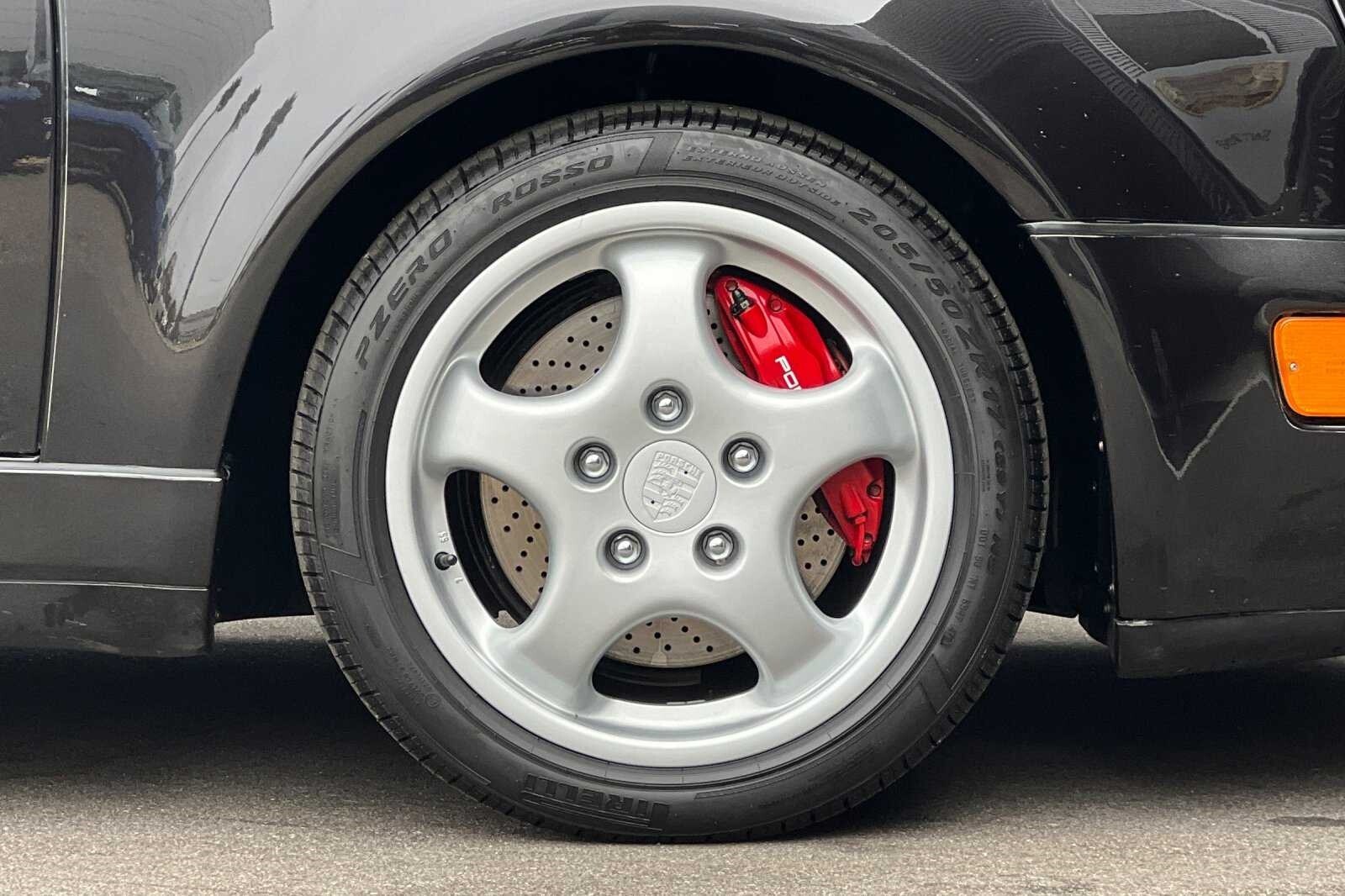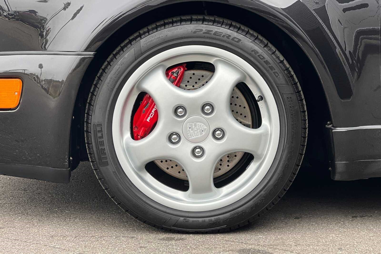 This Porsche San Luis Obispo 1992 Porsche 911 Turbo is well equipped and includes these features and benefits: ABS brakes, Alloy wheels, Heated door mirrors, Power moonroof, 4-Wheel Disc Brakes, Air Conditioning, AM/FM radio, Automatic temperature control, Bodyside moldings, Cassette, Driver vanity mirror, Dual front impact airbags, Front anti-roll bar, Front Bucket Seats, Front fog lights, Leather steering wheel, Passenger vanity mirror, Power door mirrors, Power steering, Power windows, Rear anti-roll bar, Rear window defroster, Rear window wiper, Security system, Speed control, Split folding rear seat, Spoiler, Tachometer, and Voltmeter. ABS brakes, Alloy wheels, Heated door mirrors, Power moonroof.