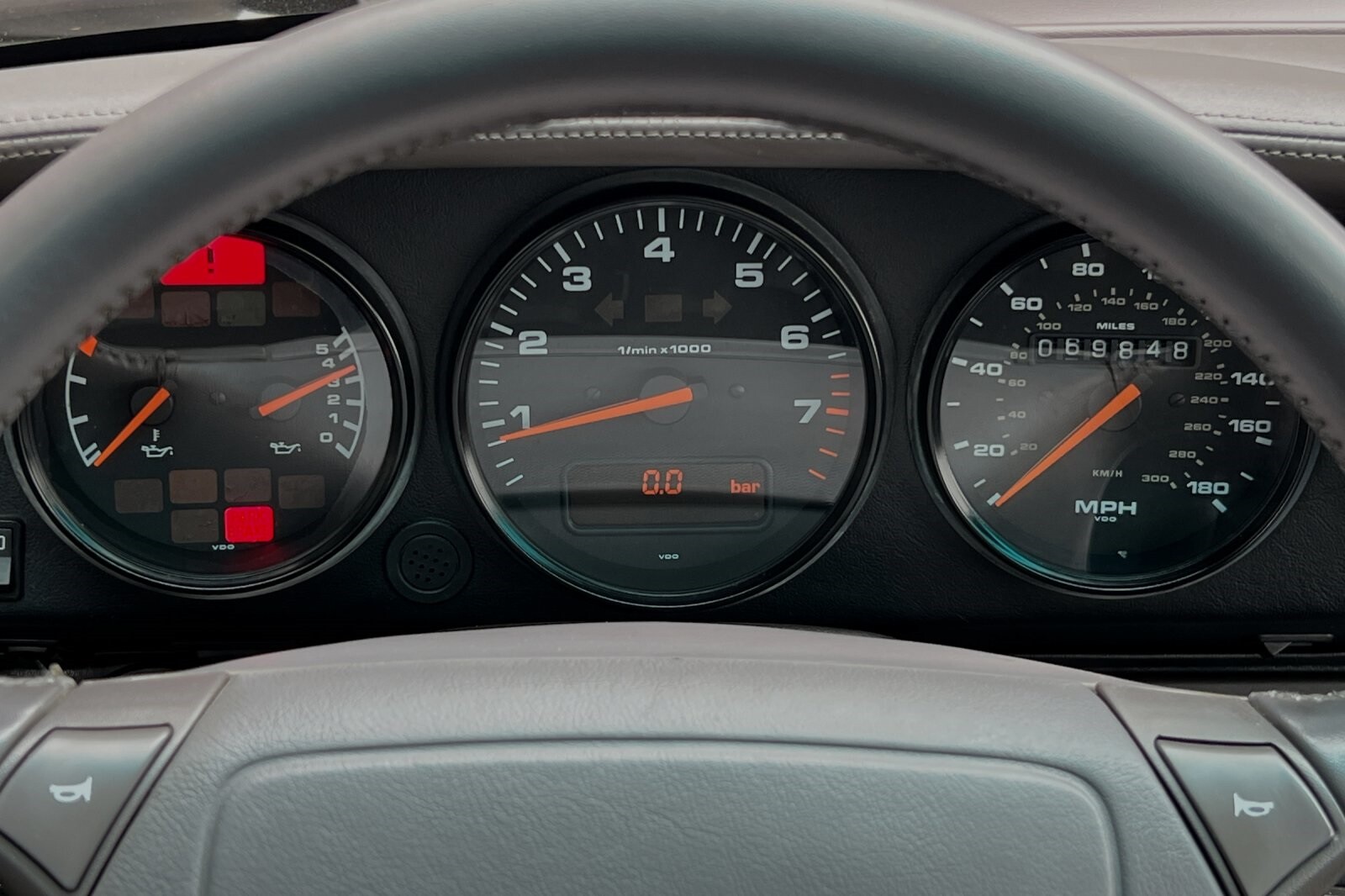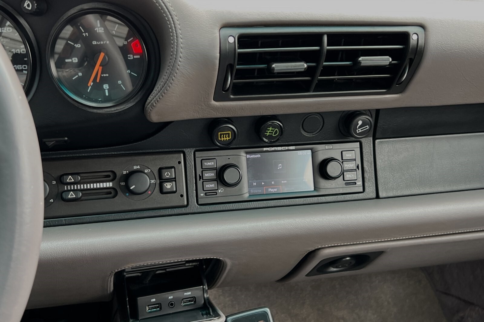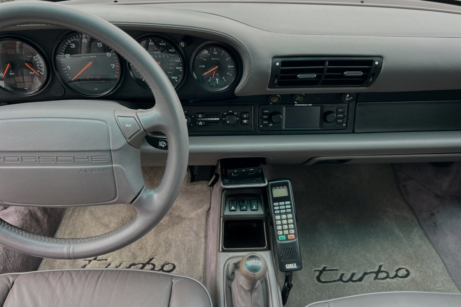 This Porsche San Luis Obispo 1992 Porsche 911 Turbo is well equipped and includes these features and benefits: ABS brakes, Alloy wheels, Heated door mirrors, Power moonroof, 4-Wheel Disc Brakes, Air Conditioning, AM/FM radio, Automatic temperature control, Bodyside moldings, Cassette, Driver vanity mirror, Dual front impact airbags, Front anti-roll bar, Front Bucket Seats, Front fog lights, Leather steering wheel, Passenger vanity mirror, Power door mirrors, Power steering, Power windows, Rear anti-roll bar, Rear window defroster, Rear window wiper, Security system, Speed control, Split folding rear seat, Spoiler, Tachometer, and Voltmeter. ABS brakes, Alloy wheels, Heated door mirrors, Power moonroof.