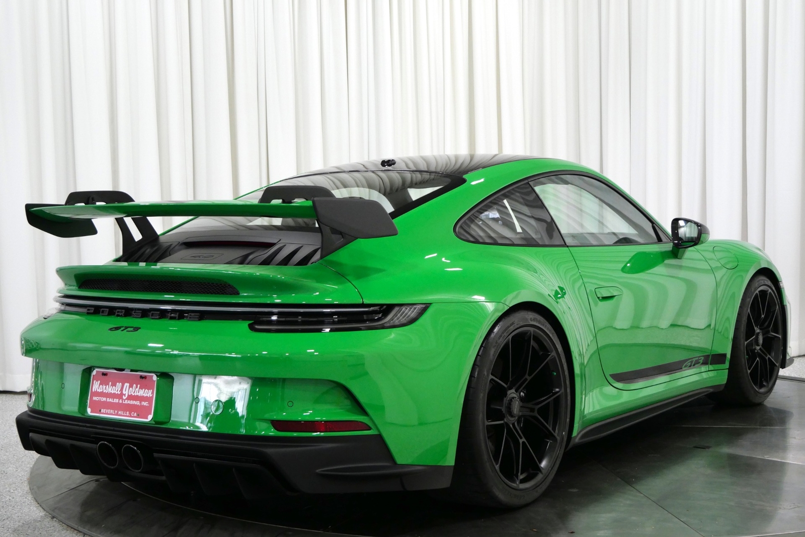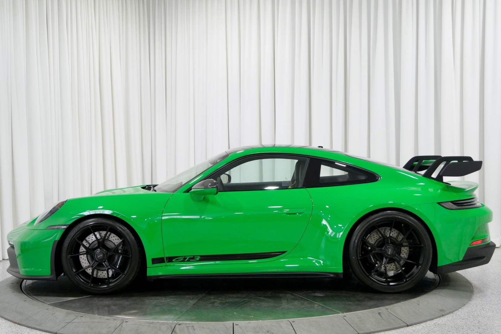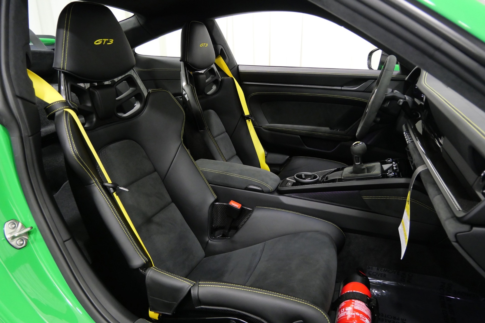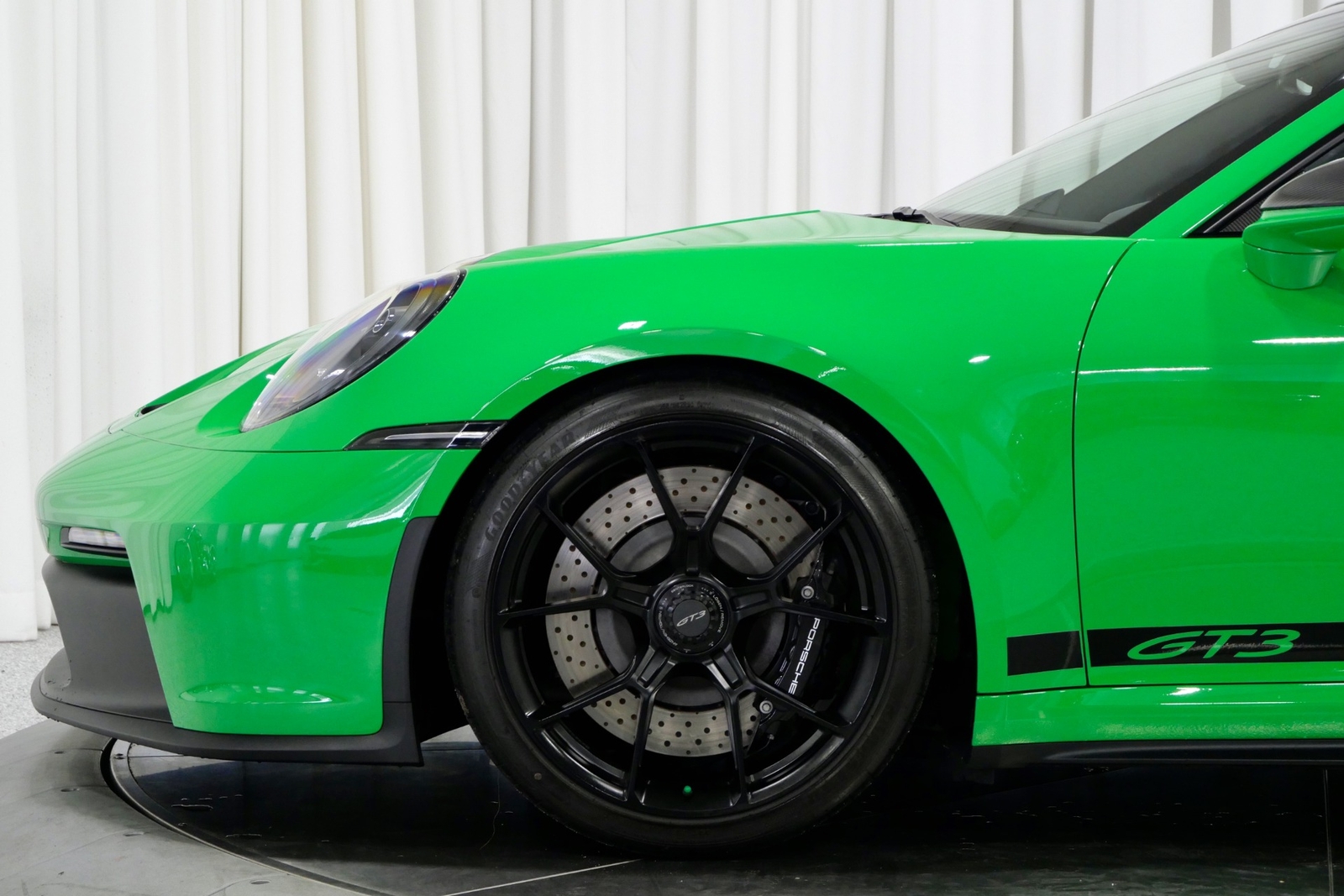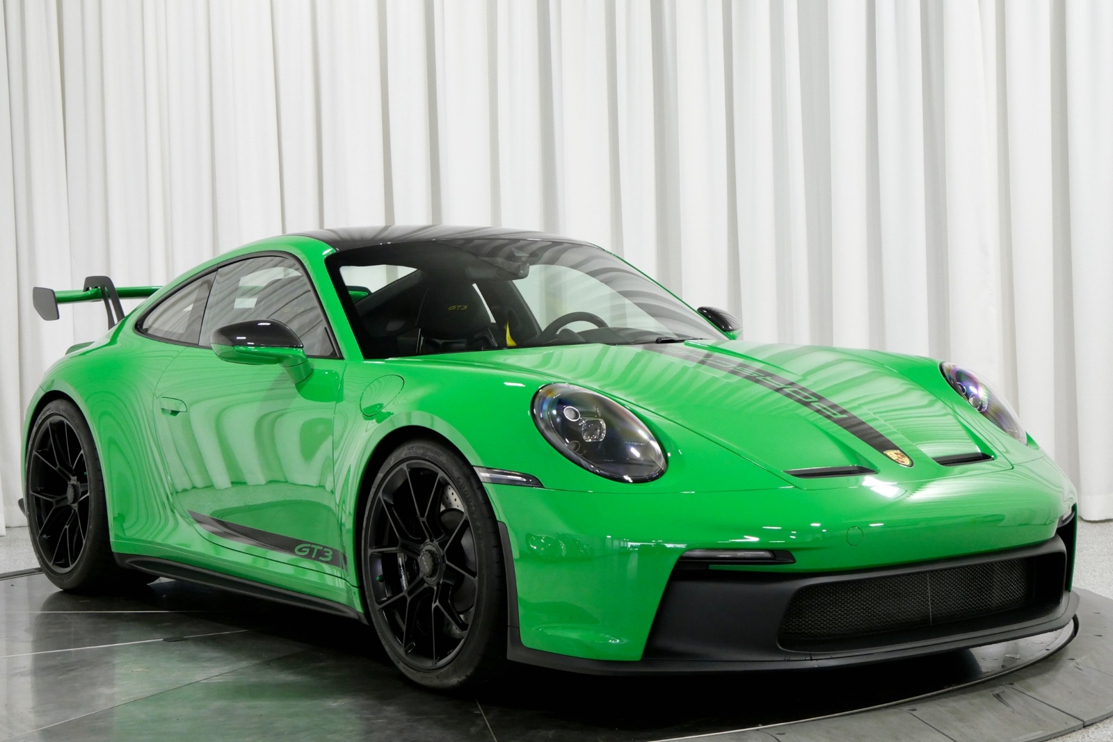 We have just added to our extensive exotic car inventory a beautiful 2023 Porsche 911 GT3 in Python Green over Black interior and only 1,474 miles. This GT3 is loaded with: 4.0 Liter H6, 6 speed manual transmission, 20/21 inch centerlock wheels in satin black, black brake calipers, front axle lift, carbon fiber roof, Motorsport decal on top in black, model designation decals on sides in black, LED headlamps in black with dynamic lighting, Exclusive Design taillights, window triangle trims in carbon fiber, leather and Race-Tex interior with yellow stitching, carbon fiber racing buckets, interior inlays in carbon fiber, center console lid with Porsche script, extended Race-Tex package, deviated stitching interior package in yellow (dashboard, rear side panels, center console lid, knee pad, door panels), Bose surround sound, tachometer in Racing Yellow, Chrono package with preparation for lap trigger, Sport Chrono face in Racing Yellow, Porsche PCM with navigation, preparation for Porsche dashcam, floor mats, extended range fuel tank, exclusive design fuel cap, under door puddle light projectors, seat belts in Racing Yellow, pedals and footrest in aluminum, ambient lighting and much more.