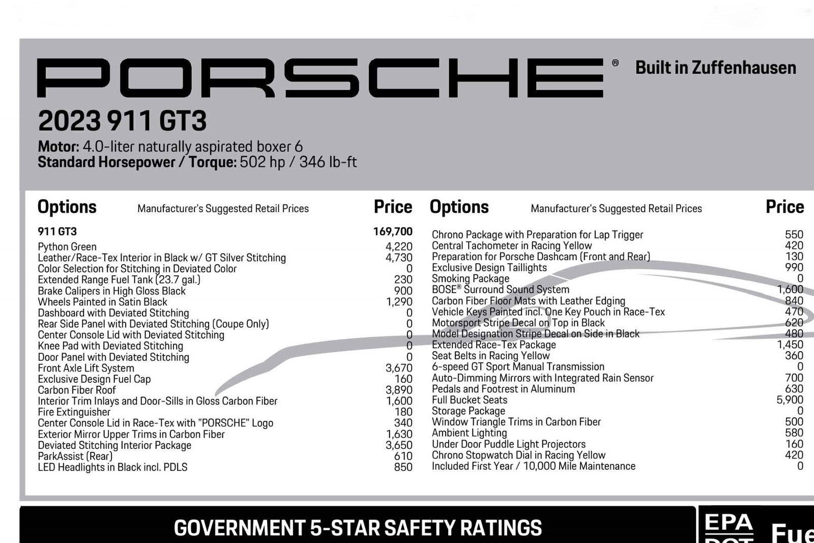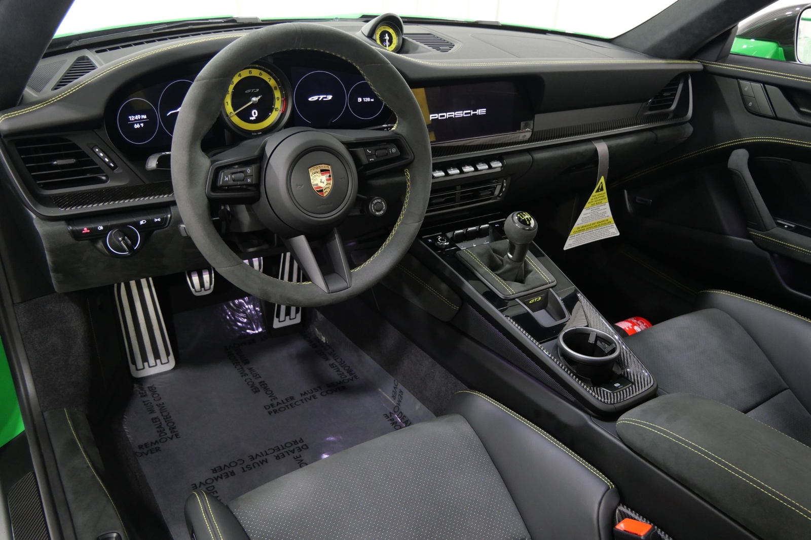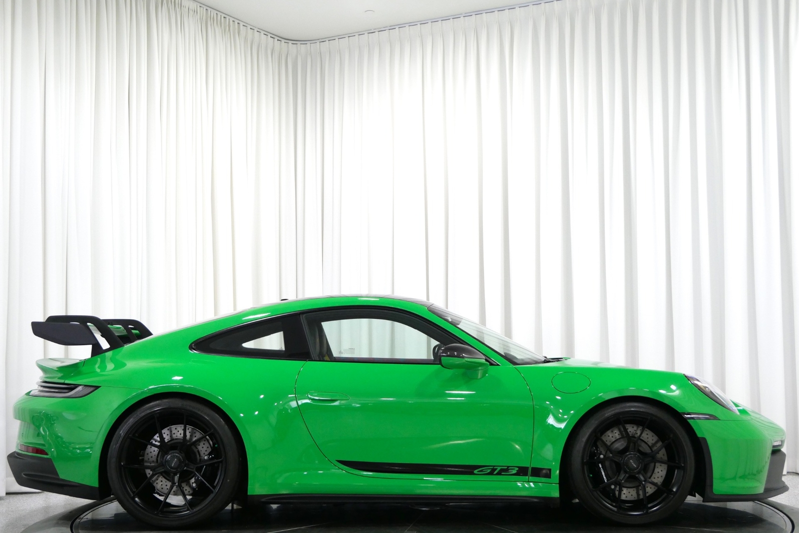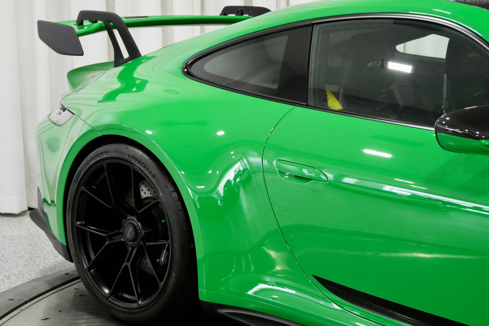 We have just added to our extensive exotic car inventory a beautiful 2023 Porsche 911 GT3 in Python Green over Black interior and only 1,474 miles. This GT3 is loaded with: 4.0 Liter H6, 6 speed manual transmission, 20/21 inch centerlock wheels in satin black, black brake calipers, front axle lift, carbon fiber roof, Motorsport decal on top in black, model designation decals on sides in black, LED headlamps in black with dynamic lighting, Exclusive Design taillights, window triangle trims in carbon fiber, leather and Race-Tex interior with yellow stitching, carbon fiber racing buckets, interior inlays in carbon fiber, center console lid with Porsche script, extended Race-Tex package, deviated stitching interior package in yellow (dashboard, rear side panels, center console lid, knee pad, door panels), Bose surround sound, tachometer in Racing Yellow, Chrono package with preparation for lap trigger, Sport Chrono face in Racing Yellow, Porsche PCM with navigation, preparation for Porsche dashcam, floor mats, extended range fuel tank, exclusive design fuel cap, under door puddle light projectors, seat belts in Racing Yellow, pedals and footrest in aluminum, ambient lighting and much more.