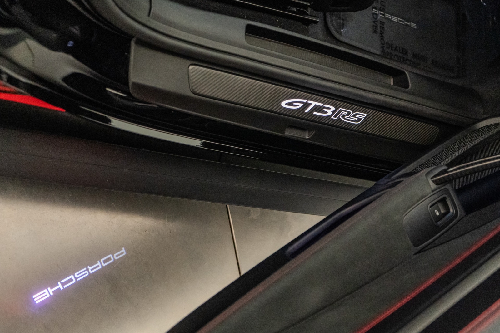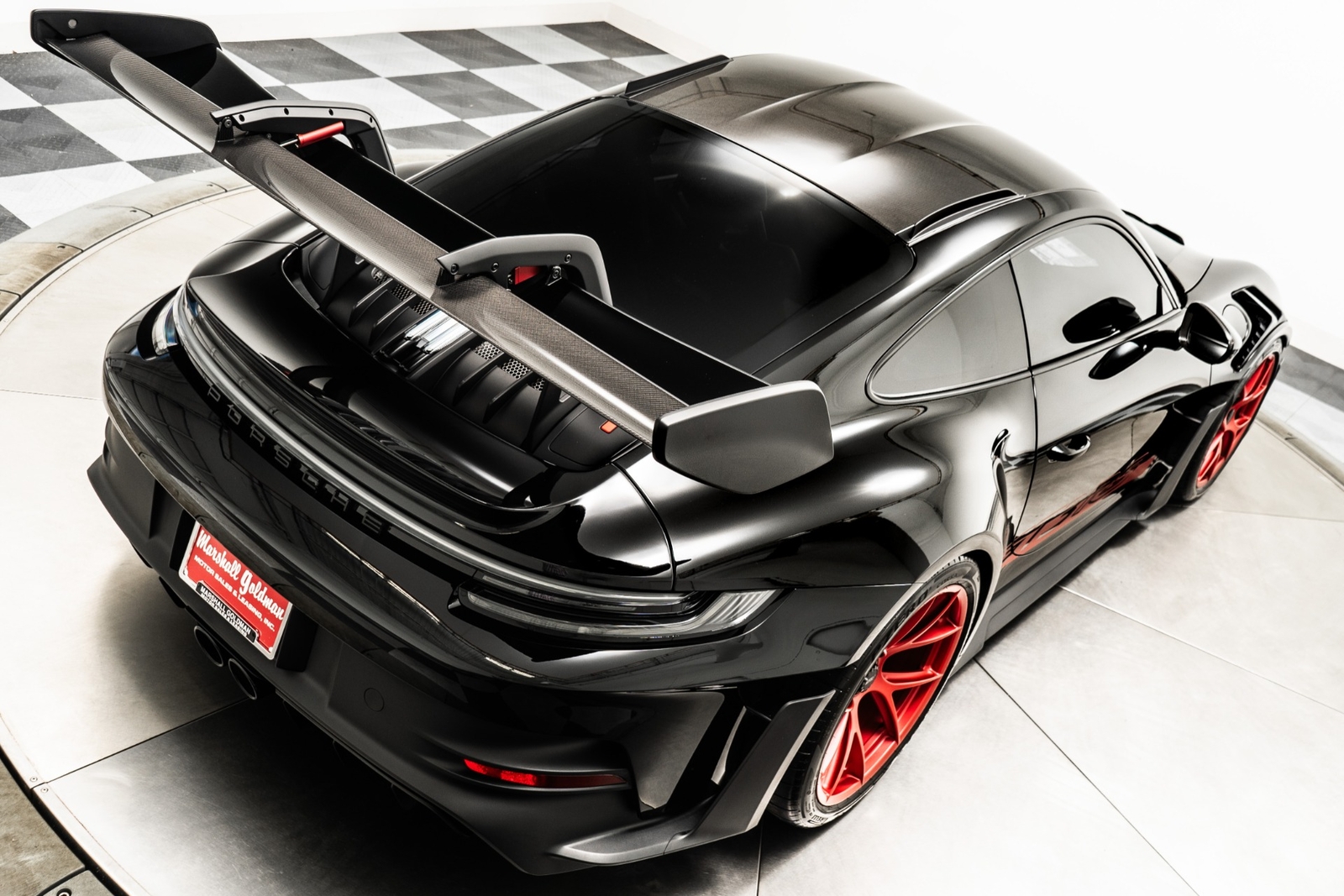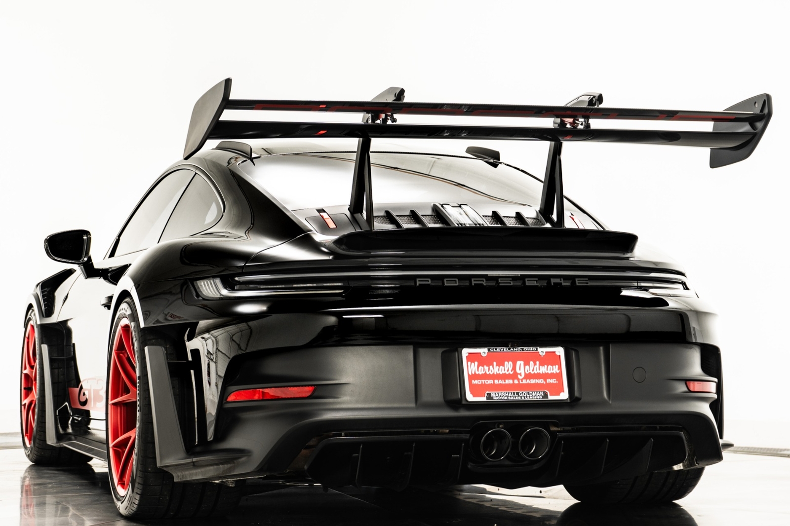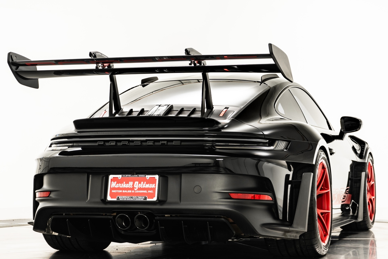 We have just added to our extensive exotic car inventory a beautiful 2024 Porsche 911 GT3 RS in Black over Black interior and only 1,394 miles. This GT3 is loaded with: 4.0 Liter H6, 7 speed PDK transmission, Weissach package (20/21 inch magnesium centerlock wheels, exposed carbon fiber hood, roof, mirrors, window triangle trims and rear wing, door grab handles in matte carbon, magnesium shift paddles, upper part of gearshift panel in Race-Tex, headrest embroidery, CFRP sway bars, CFRP coupling rods and underbody panel on rear axle), wheels painted in satin Pyro Red, black brake calipers, front axle lift, model designation decals on sides in red, LED headlamps in black with dynamic lighting, Exclusive Design taillights, illuminated carbon fiber door sills, carbon fiber racing buckets, interior inlays in carbon fiber, center console lid with Porsche logo, Bose surround sound, tachometer in Guards Red, Sport Chrono face in Guards Red, Porsche PCM with navigation, floor mats, extended range fuel tank, under door puddle light projectors, seat belts in Guards Red, pedals and footrest in aluminum, ambient lighting, deletion of satellite radio antenna and much more.