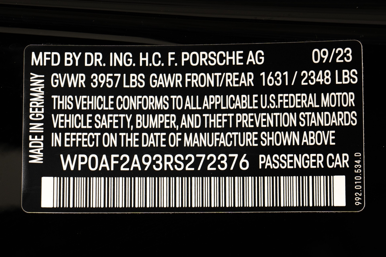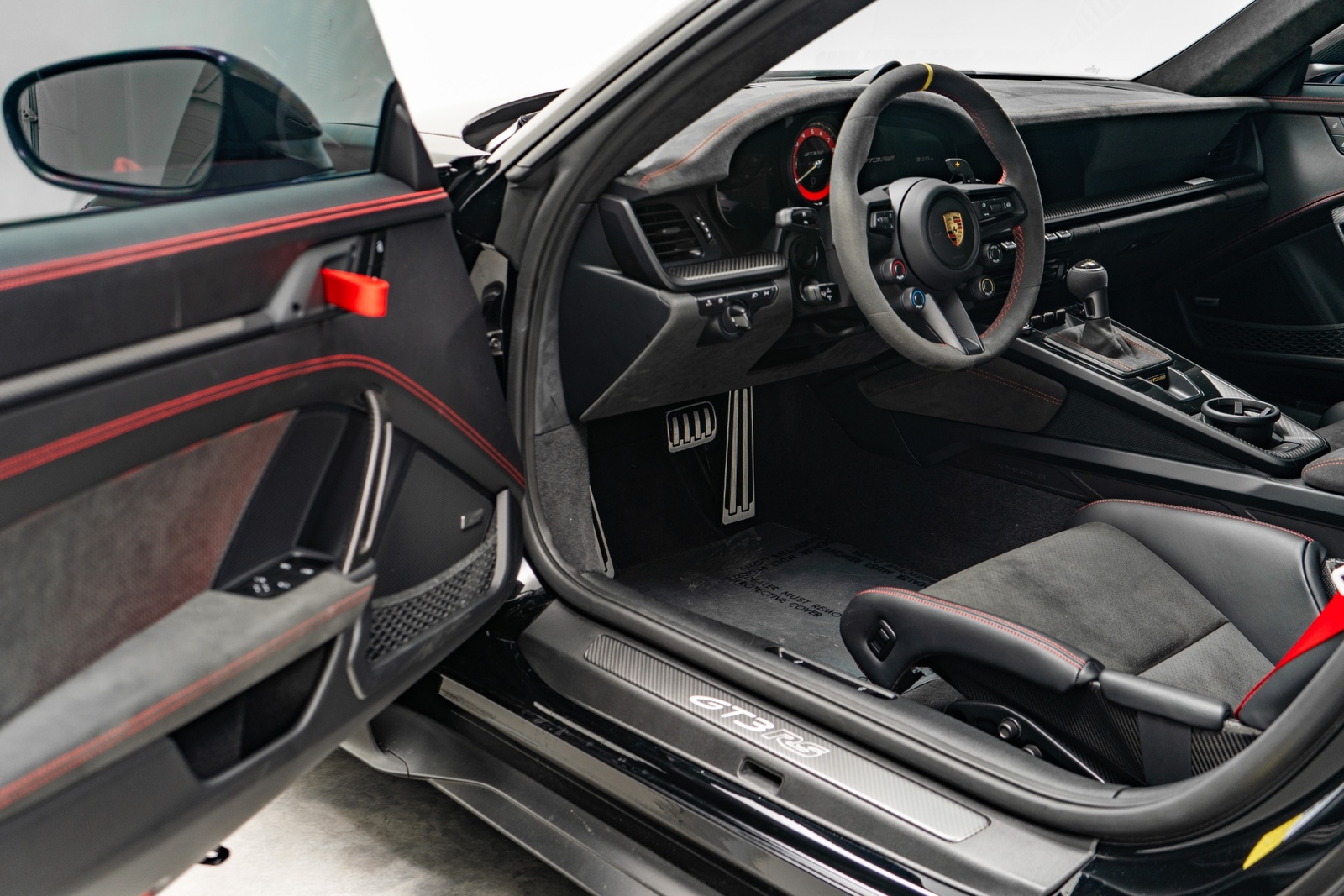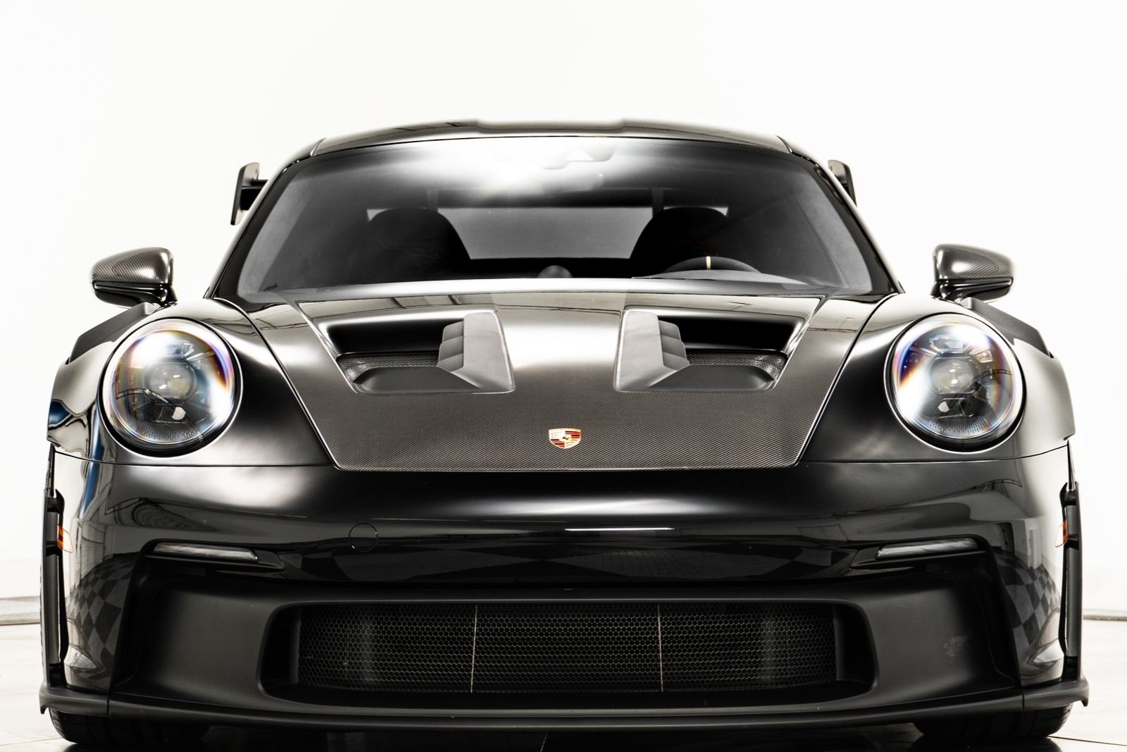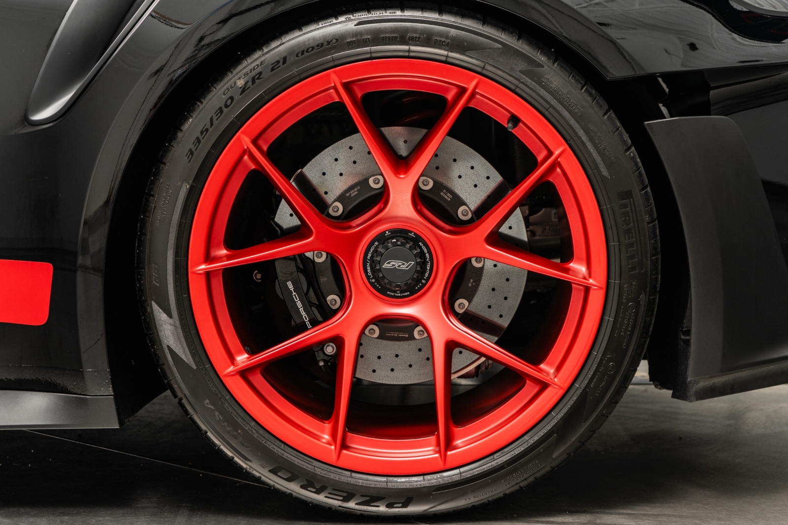 We have just added to our extensive exotic car inventory a beautiful 2024 Porsche 911 GT3 RS in Black over Black interior and only 1,394 miles. This GT3 is loaded with: 4.0 Liter H6, 7 speed PDK transmission, Weissach package (20/21 inch magnesium centerlock wheels, exposed carbon fiber hood, roof, mirrors, window triangle trims and rear wing, door grab handles in matte carbon, magnesium shift paddles, upper part of gearshift panel in Race-Tex, headrest embroidery, CFRP sway bars, CFRP coupling rods and underbody panel on rear axle), wheels painted in satin Pyro Red, black brake calipers, front axle lift, model designation decals on sides in red, LED headlamps in black with dynamic lighting, Exclusive Design taillights, illuminated carbon fiber door sills, carbon fiber racing buckets, interior inlays in carbon fiber, center console lid with Porsche logo, Bose surround sound, tachometer in Guards Red, Sport Chrono face in Guards Red, Porsche PCM with navigation, floor mats, extended range fuel tank, under door puddle light projectors, seat belts in Guards Red, pedals and footrest in aluminum, ambient lighting, deletion of satellite radio antenna and much more.