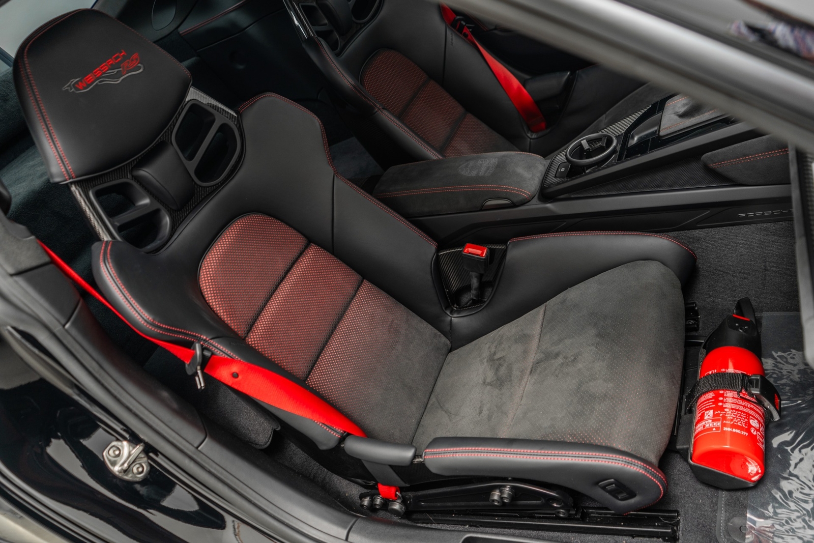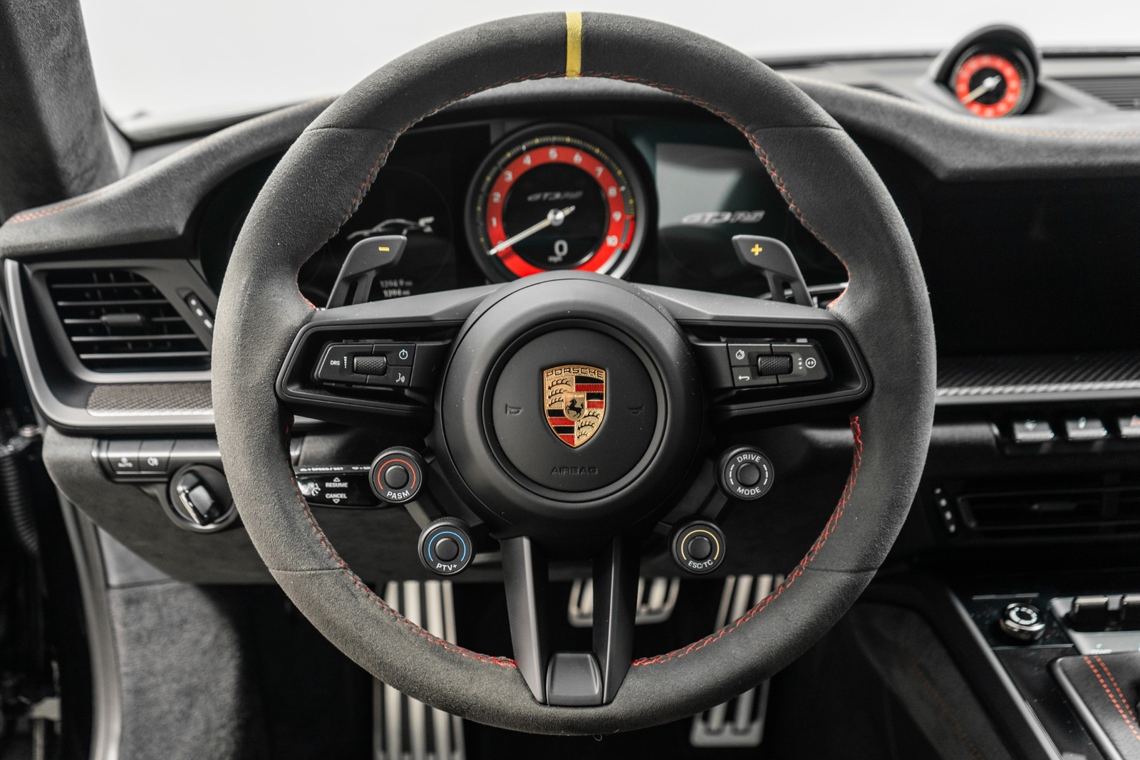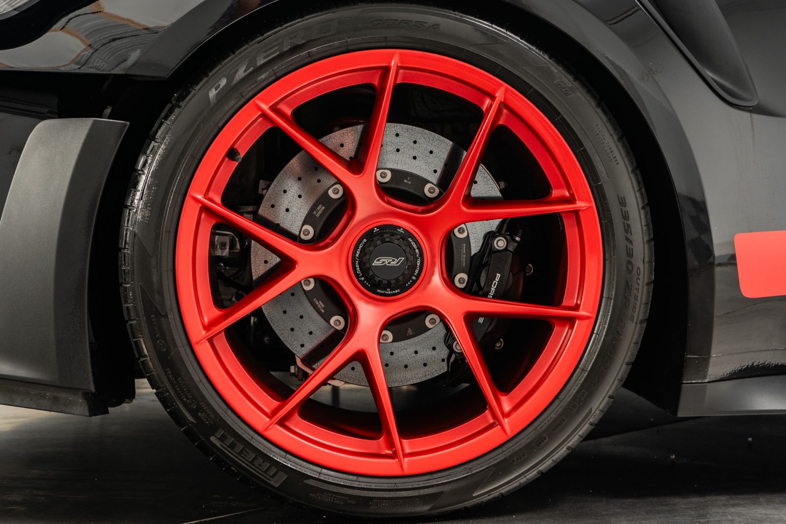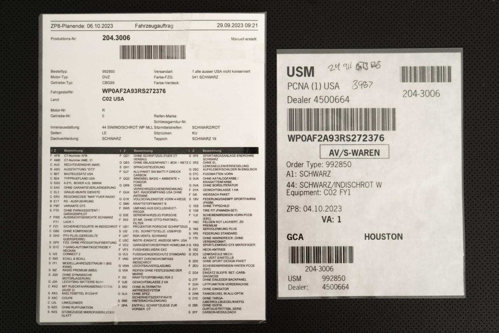 We have just added to our extensive exotic car inventory a beautiful 2024 Porsche 911 GT3 RS in Black over Black interior and only 1,394 miles. This GT3 is loaded with: 4.0 Liter H6, 7 speed PDK transmission, Weissach package (20/21 inch magnesium centerlock wheels, exposed carbon fiber hood, roof, mirrors, window triangle trims and rear wing, door grab handles in matte carbon, magnesium shift paddles, upper part of gearshift panel in Race-Tex, headrest embroidery, CFRP sway bars, CFRP coupling rods and underbody panel on rear axle), wheels painted in satin Pyro Red, black brake calipers, front axle lift, model designation decals on sides in red, LED headlamps in black with dynamic lighting, Exclusive Design taillights, illuminated carbon fiber door sills, carbon fiber racing buckets, interior inlays in carbon fiber, center console lid with Porsche logo, Bose surround sound, tachometer in Guards Red, Sport Chrono face in Guards Red, Porsche PCM with navigation, floor mats, extended range fuel tank, under door puddle light projectors, seat belts in Guards Red, pedals and footrest in aluminum, ambient lighting, deletion of satellite radio antenna and much more.