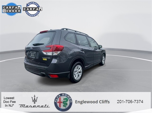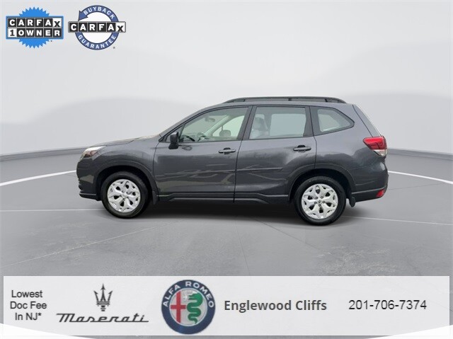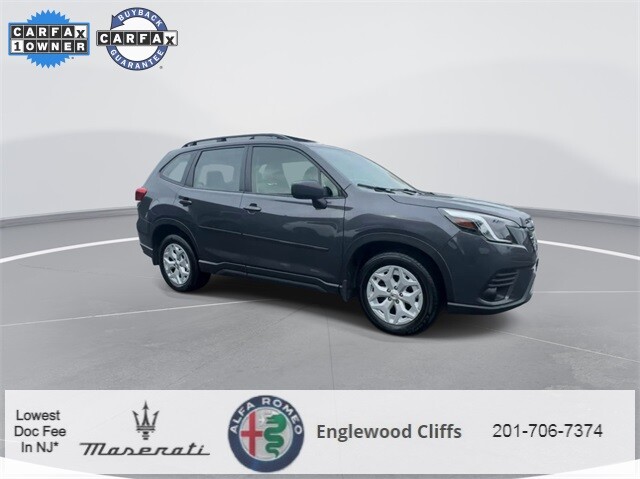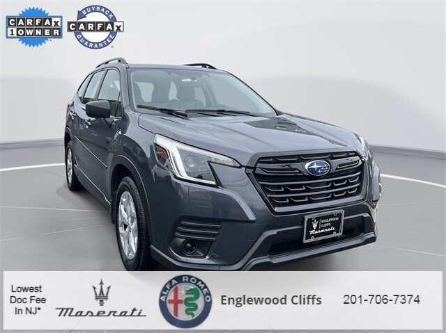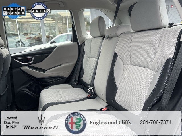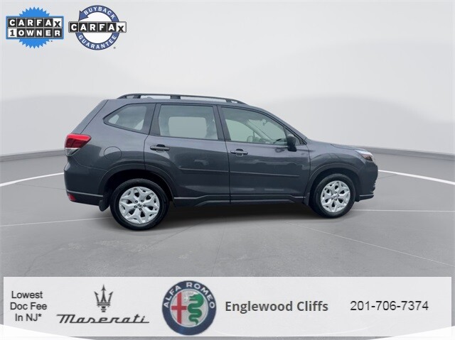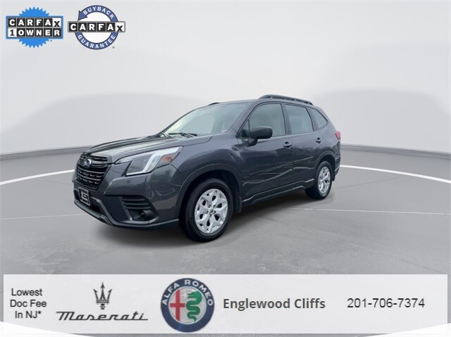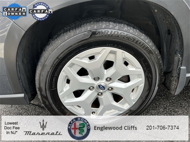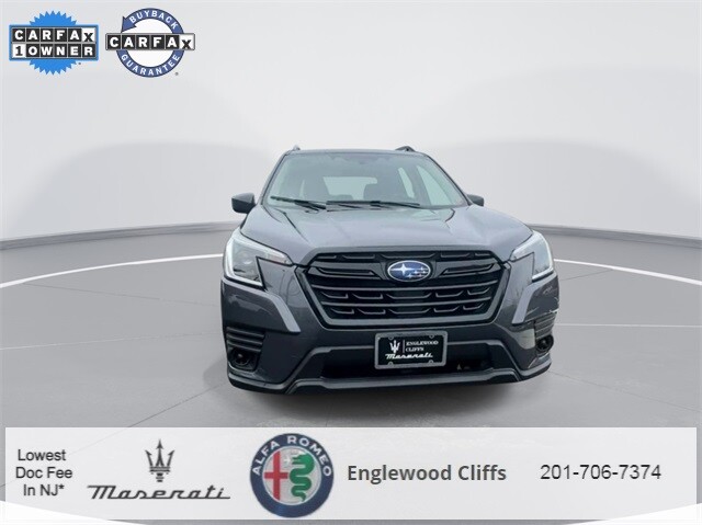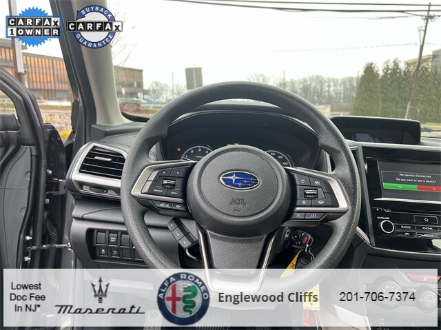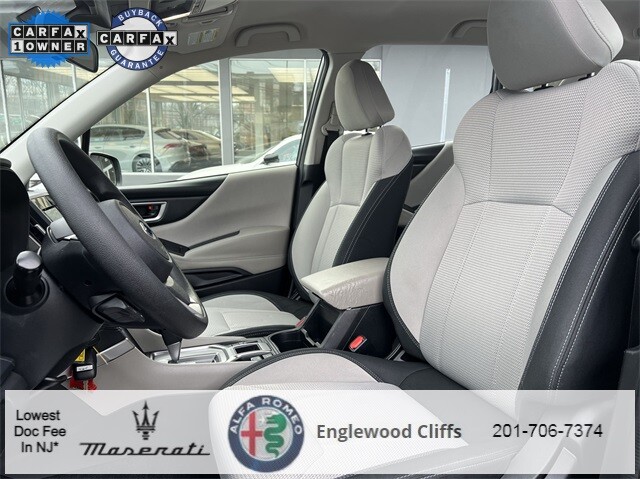 This Forester is nicely equipped with Alloy Wheel Package & Roof Rails (Black Finish Roof Rails and Wheels: 17 x 7.0J Silver Finish Aluminum Alloy), Auto High-beam Headlights, Automatic temperature control, Brake assist, Electronic Stability Control, Exterior Parking Camera Rear, Four wheel independent suspension, Fully automatic headlights, Illuminated entry, Outside temperature display, Power door mirrors, Power steering, Power windows, Radio: Subaru Starlink 6.5 Multimedia Plus System, Rear window defroster, Rear window wiper, Remote keyless entry, Security system, Speed control, Speed-sensing steering, STARLINK/Apple CarPlay/Android Auto, Steering wheel mounted audio controls, Traction control, 3.70 Axle Ratio, 4 Speakers, 4-Wheel Disc Brakes, ABS brakes, Air Conditioning, AM/FM radio: SiriusXM, Anti-whiplash front head restraints, Bumpers: body-color, Cargo Cover, Cargo Tray, CD player, Cloth Upholstery, Driver door bin, Driver vanity mirror, Dual front impact airbags, Dual front side impact airbags, Front anti-roll bar, Front Bucket Seats, Front Center Armrest, Front reading lights, Knee airbag, Low tire pressure warning, Magnetite Gray Metallic Body Side Molding, Occupant sensing airbag, Overhead airbag, Overhead console, Panic alarm, Passenger door bin, Passenger vanity mirror, Radio data system, Rear anti-roll bar, Remote Engine Starter - Key Start, Splash Guards, Split folding rear seat, Tachometer, Telescoping steering wheel, Tilt steering wheel, Trip computer, Variably intermittent wipers, and Wheels: 17 x 7.0J Steel w/Silver Full Wheel Cover.