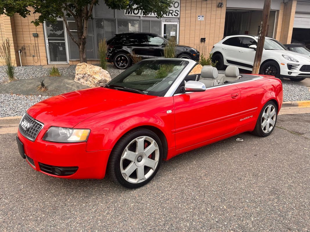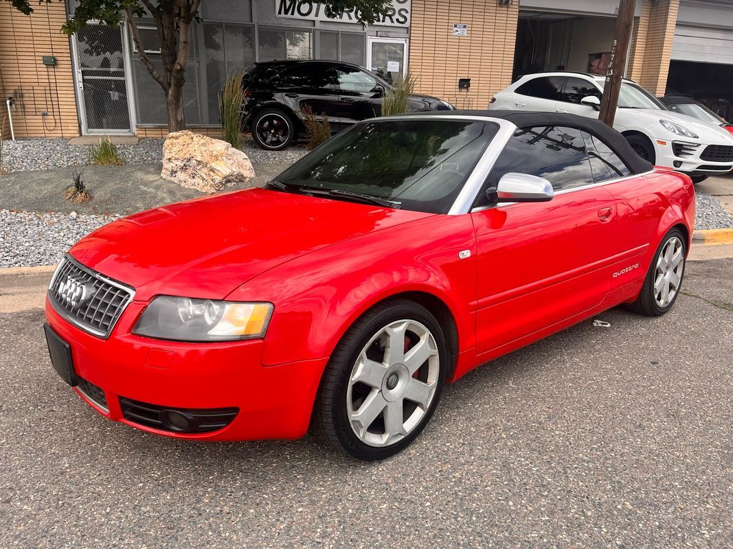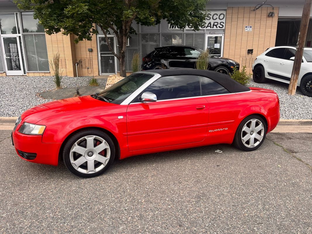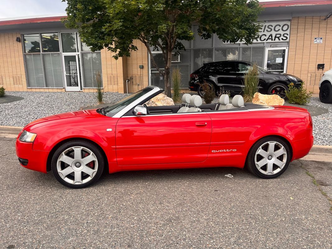 2005 Audi S4 convertible AWD V8 done in Red over Cream leather. The body and paint are in good shape with some small chips from use but over very clean. The inside is in good shape and has covers on the front seats due to sun damage. The S4 sounds so good and is a very fast AWD drop top for both summer or winter driving. Call Weisco Motorcars for more info or to set a time but it will sell fast so call today.