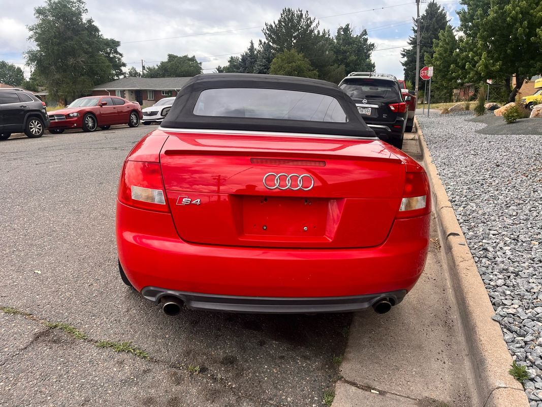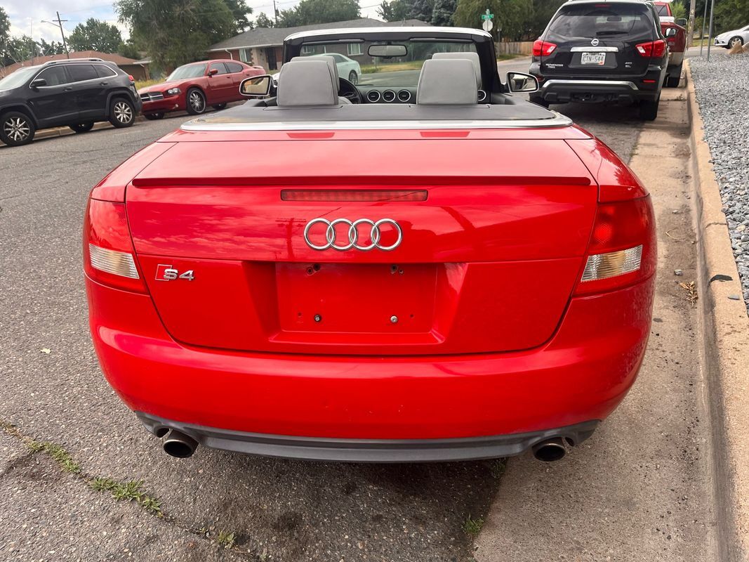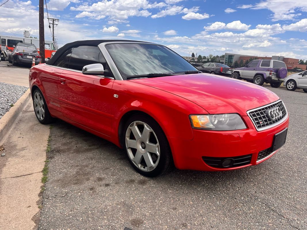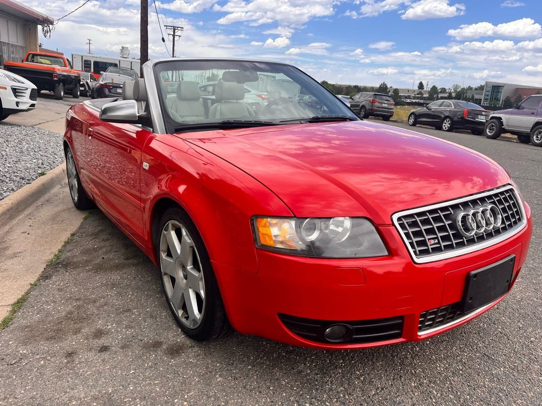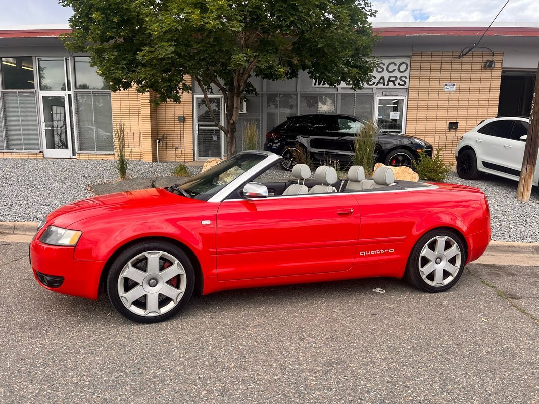 2005 Audi S4 convertible AWD V8 done in Red over Cream leather. The body and paint are in good shape with some small chips from use but over very clean. The inside is in good shape and has covers on the front seats due to sun damage. The S4 sounds so good and is a very fast AWD drop top for both summer or winter driving. Call Weisco Motorcars for more info or to set a time but it will sell fast so call today.