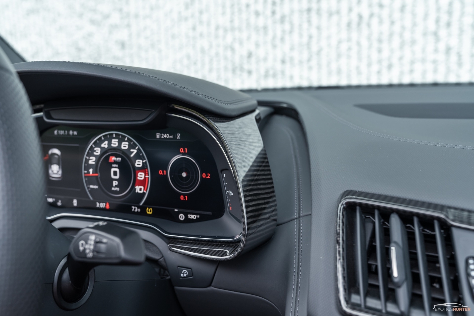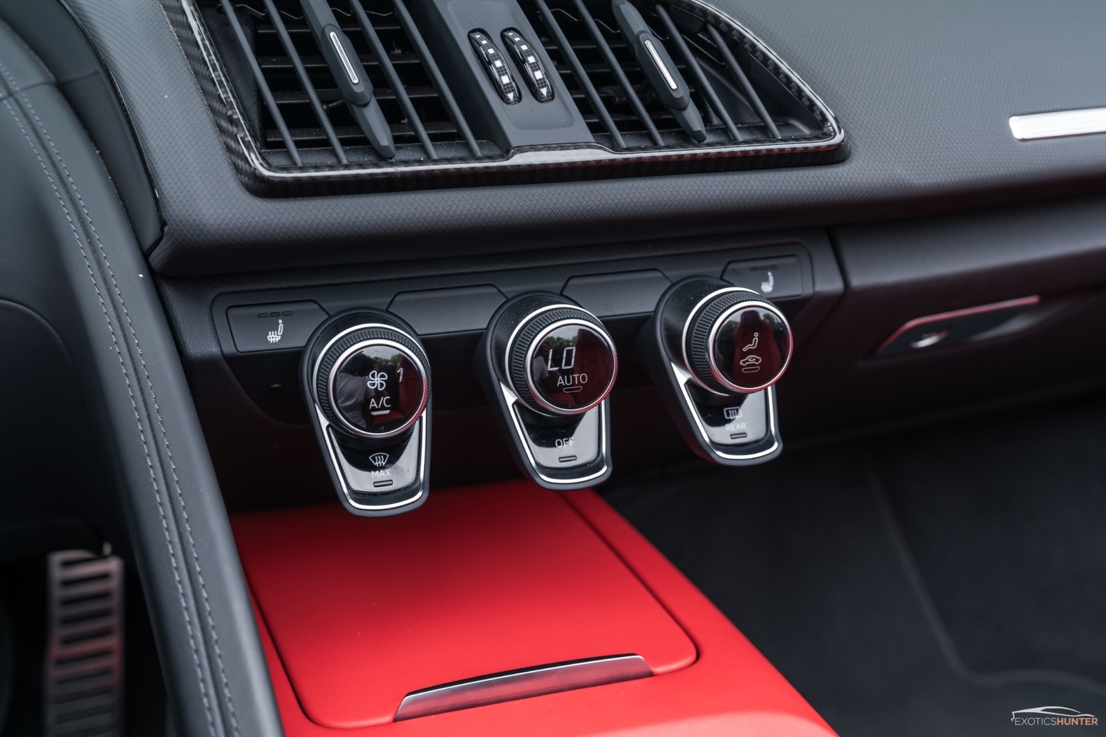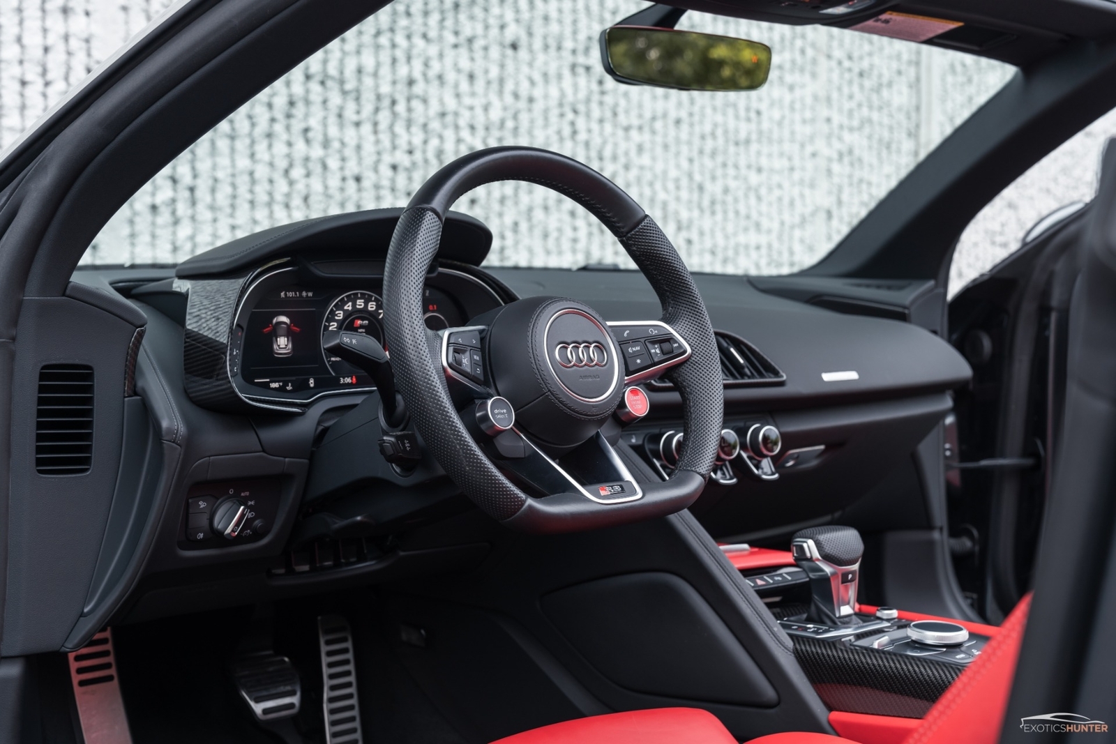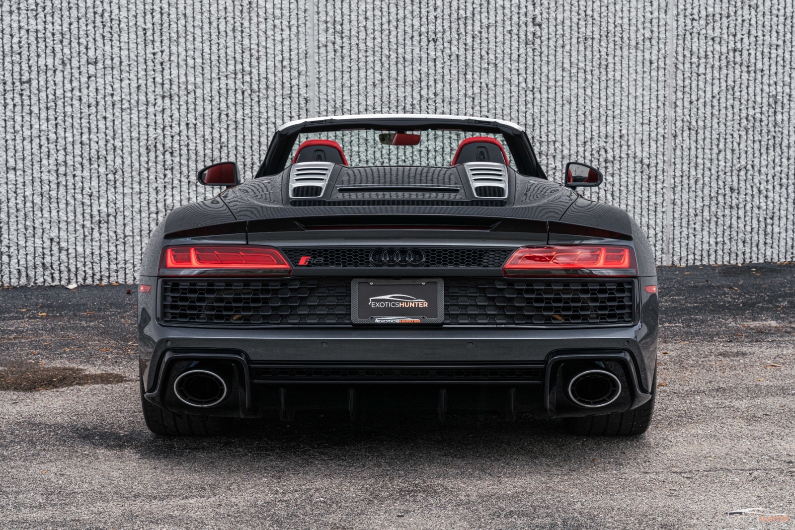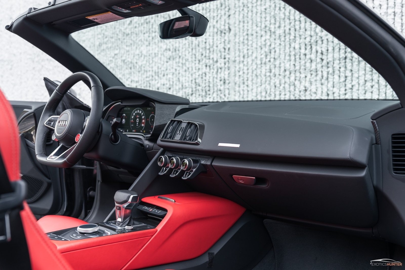 We are thrilled to offer this '21 R8 V10 Spyder in iconic Daytona Grey Pearl paint. This impeccable spec features the premium package including premium B&O sound, extended leather, illuminated door sills, and more. On top of the premium pack, the carbon interior package has also been commissioned onto this spec from the factory. Don't miss the opportunity to make this stunning spec your own.