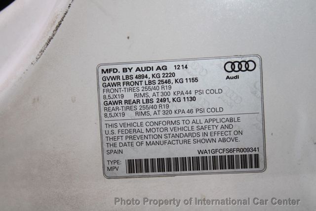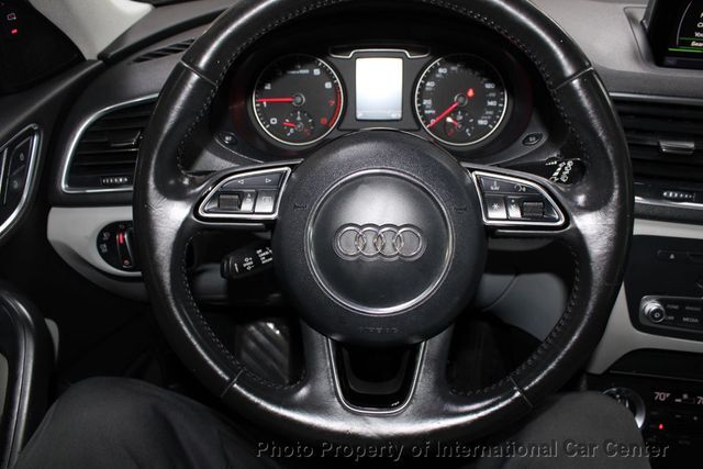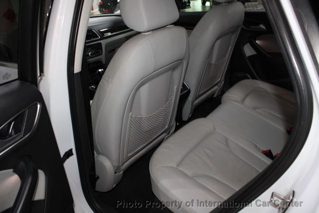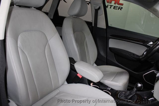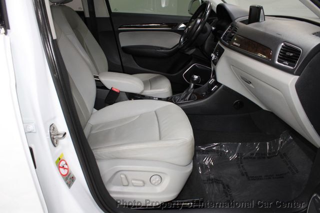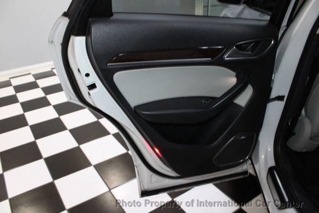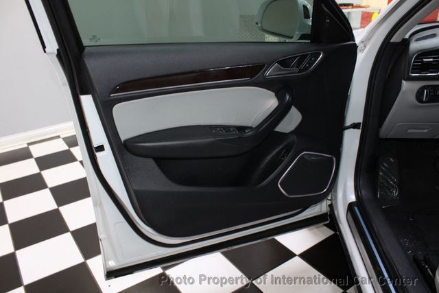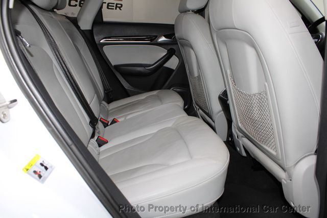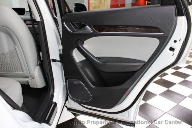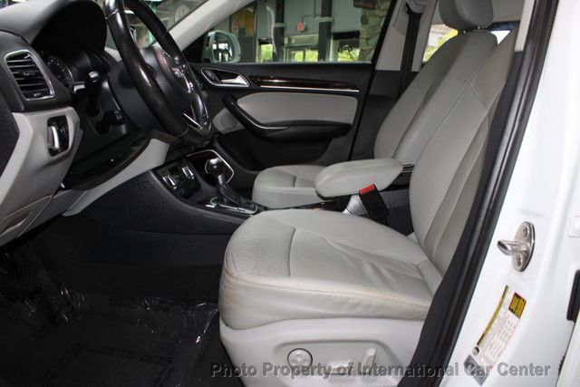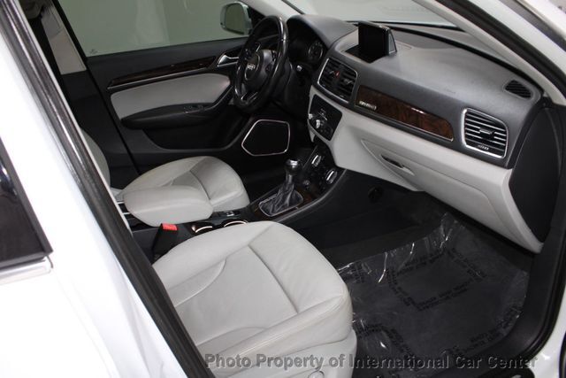 This 2015 Audi Q3 4dr quattro 4dr 2.0T Prestige features a 2.0L 4 Cylinder 4cyl Gasoline engine. It is equipped with a 6 Speed Automatic transmission. The vehicle is Glacier White Metallic with a Black, leather Leather interior. It is offered As-Is, extended warranty is available. - 2015 Audi Q3 quattro Prestige Quattro 2.0LI4 AWD with 73K MILES auto trans in Glacier White/Gray Leather! Clean car with good service history!! Loaded with *backup cam *panoramic sunroof *parking sensors *heated seats *bluetooth *aux *cd player *push button start *cruise control *steering wheel controls and more! Call us today855-373-0973! For complete interior and exterior pictures and further details along with the free Carfax report, visit our website at Advertised price is subject to change depending on buyers credit if financing with our lenders. Advertised price does not include sales tax and fees. - This Audi is in Good overall exterior condition, Good overall interior condition, Leather seats - Air Conditioning, Climate Control, Dual Zone Climate Control, Cruise Control, Tinted Windows, Power Steering, Power Windows, Power Mirrors, Leather Steering Wheel, Leather Shifter, Power Drivers Seat, Power Passenger Seat, Memory Seat Position, Heated Seat, Clock, Tachometer, Digital Info Center, Tilt Steering Wheel, Telescoping Steering Wheel, Steering Wheel Radio Controls, Sunroof, Moonroof, Driver Airbag, Passenger Airbag, Side Airbags, Security System, ABS Brakes, Traction Control, Dynamic Stability, Rear Defogger, Fog Lights, Intermittent Wipers, AM/FM, CD Player, Anti-Theft, Alloy Wheels, Leather Interior Surface, Child Safety Door Locks, Daytime Running Lights, Electrochromic Exterior Rearview Mirror, Electrochromic Interior Rearview Mirror, Electronic Brake Assistance, Electronic Parking Aid, First Aid Kit, Front Power Lumbar Support, High Intensity Discharge Headlights, Leather Seat, Load Bearing Exterior Rack, Navigation Aid, Power Adjustable Exterior Mirror, Rain Sensing Wipers, Rear Spoiler, Rear Wiper, Run Flat Tires, Second Row Folding Seat, Subwoofer, Telematics System, Tire Pressure Monitor Aux. Audio Input, Bluetooth, Carpeted Floor Mats, Center Arm Rest, Center Console, Child Proof Door Locks, Daytime Running Lights, Front Heated Seats, Heated Mirrors, HID Headlamps, Navigation System, Overhead Console, Parking Sensors, Power Lift Gate, Premium Sound, Rear Fog Lamps, Rear Spoiler, Rear Spoiler, Rear Wipers, Remote Trunk Lid, Roll Stability Control, Side Curtain Airbags, Sliding Rear Window, Tire Pressure Monitor, Vanity Mirrors - Contact Sales Department at855-373-0973 or for more information. -
