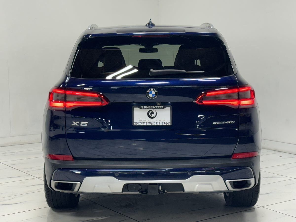 Our One Owner 2019 BMW X5 xDrive40i in Tanzanite Blue II Metallic will have you driving like a boss with performance and prestige! Powered by a TurboCharged 3.0 Liter TwinPower 6 Cylinder offering 335hp paired with an innovative 8 Speed Steptronic Automatic gearbox with Sport and Manual shift modes plus Adaptive Transmission Control. Soar to 60mph in 5.3 seconds in this All Wheel Drive SUV while scoring nearly 26mpg on the road in this beautiful Sport Activity Vehicle! Our xDrive40i shows its finesse with its confident stance - featuring LED fog lights - xenon adaptive headlights - a power tailgate - and a roof spoiler. Inside our X5 xDrive40i - find 16-way power heated/cooled SensaTec leatherette front seats - heated rears - an Advanced Vehicle Key - a panoramic sunroof - ambient lighting - and dual-zone automatic climate control. Check out our prominent 12.3-inch central screen with iDrive interface - voice-commanded full-color navigation - Bluetooth - BMW Assist - and an extraordinary HiFi 10-speaker sound system. BMW has a sterling reputation for quality - which is strong with our X5. Stability control - parking sensors - lane departure warning - blind spot detection - brake drying/standby features - and a rollover sensor add to your peace of mind. Pushing the limits with brilliant design and seemingly infinite capacity - our X5 xDrive40i is an outstanding choice! Save this Page and Call for Availability. We Know You Will Enjoy Your Test Drive Towards Ownership!