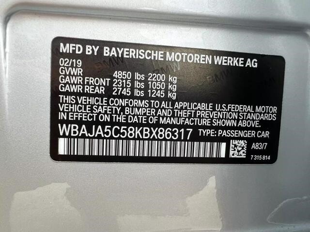 2019 BMW 5 Series 530i Silver Bluish with 53,000 Miles