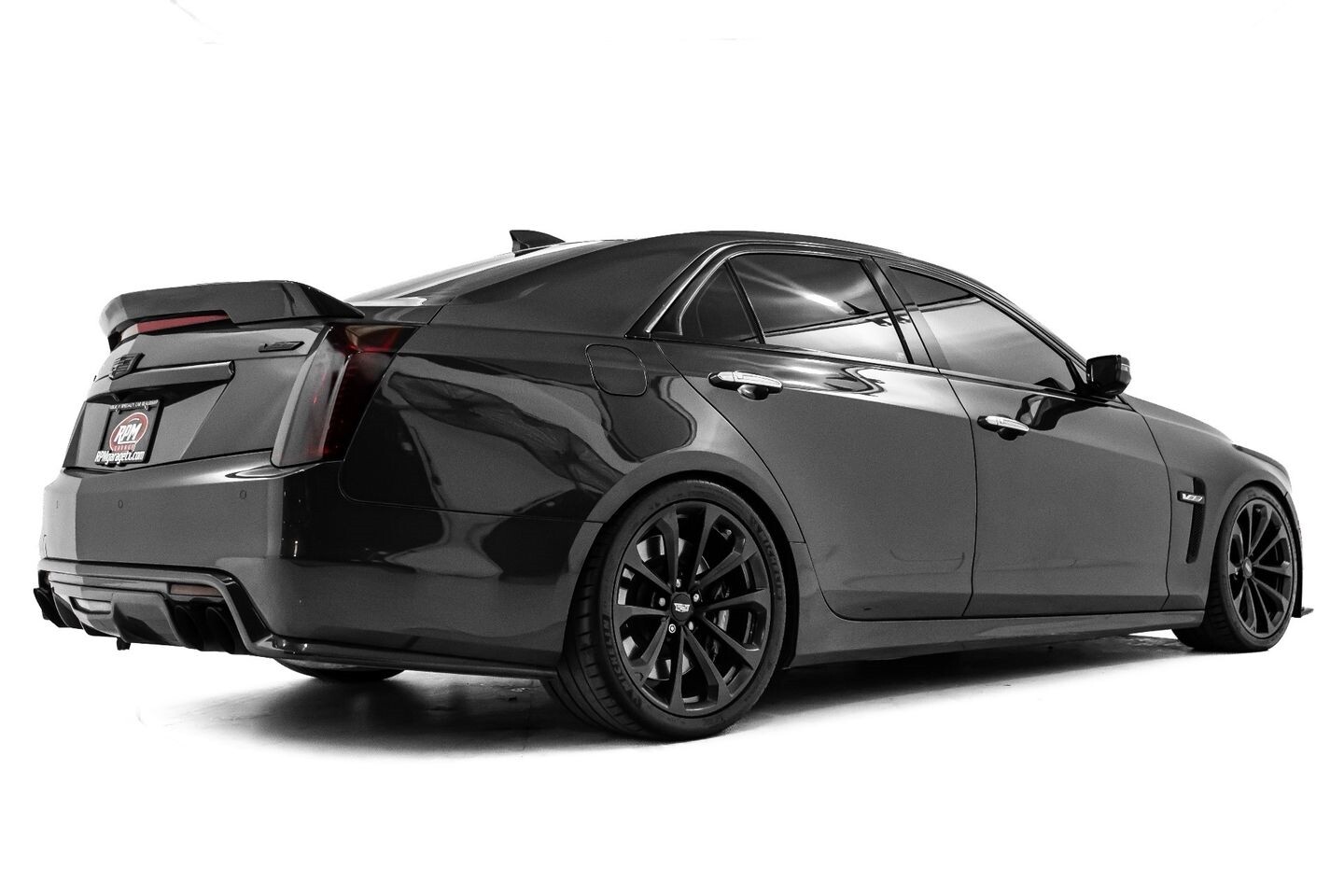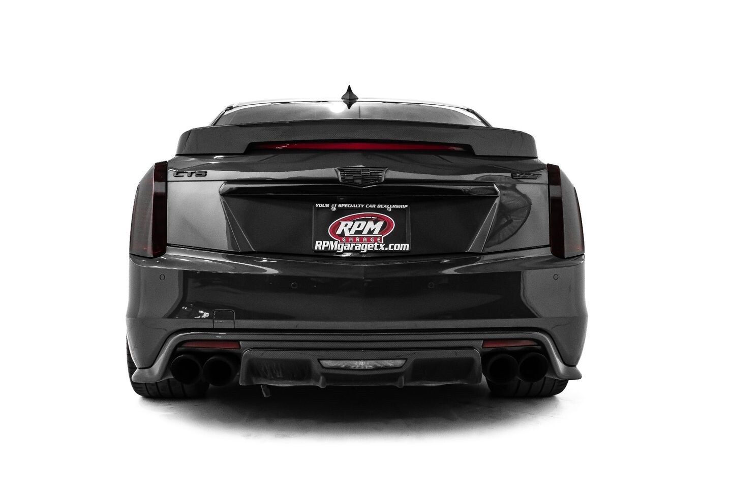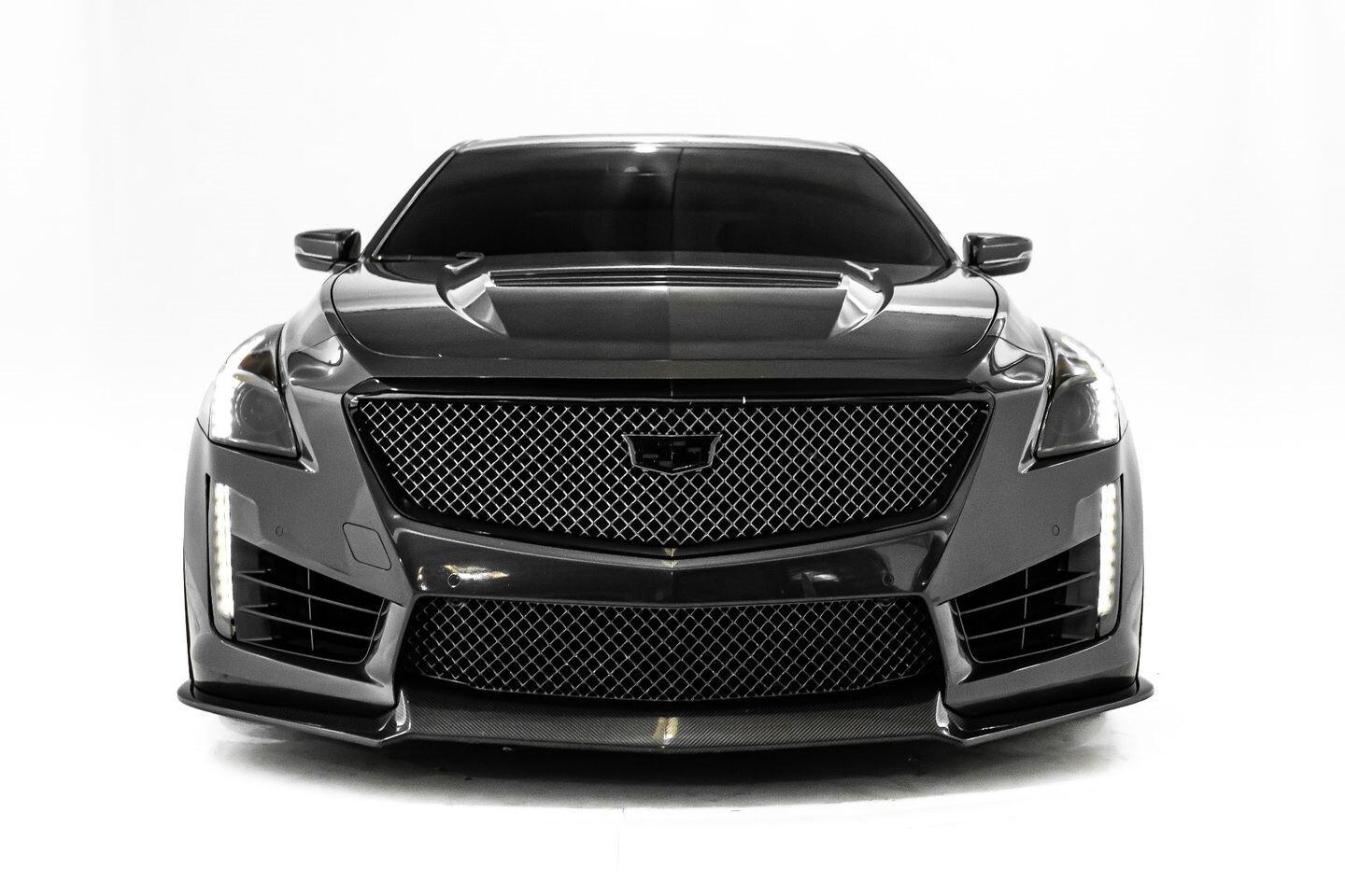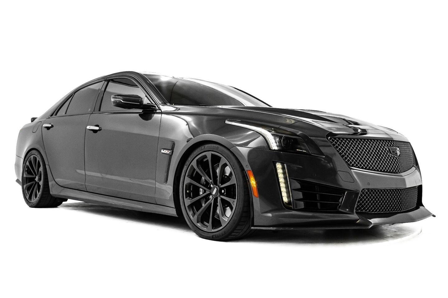 This 2016 Cadillac CTS-V is a luxurious muscle car that has received several modifications. Under the hood, a supercharged 6.2-liter V8 engine produces 640 horsepower and 630 lb-ft of torque, all of which is sent through a eight-speed automatic transmission to the rear wheels. The engine is not stock, however, having received an aftermarket camshaft kit, a Roto-Fab cold-air intake, a ZPE 2.3" supercharger pulley, and long-tube headers, among other modifications. This aggressive beast comes equipped with OEM 19" "V" wheels and is finished in Phantom Gray Metallic, a subtle color that makes this car look even more menacing. The exterior of this Cadillac has been made even more unique with the addition of some cosmetic modifications, which include a carbon fiber diffuser, a carbon fiber ducktail spoiler, a carbon fiber front lip, tinted headlights and taillights, and blacked-out exterior trim pieces. In the interior, this CTS-V offers heated and ventilated leather bucket seats, a leather steering wheel, multi-zone A/C, a heads-up display, selectable drive modes, carbon fiber interior trim, and an infotainment system with Bluetooth, navigation, apps, climate controls, AUX, and a backup camera, truly making this car the complete package.