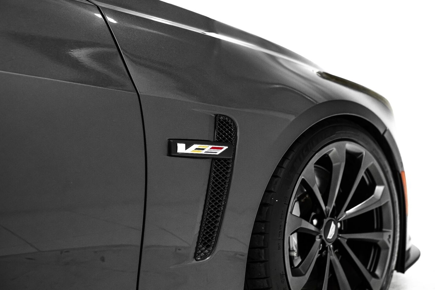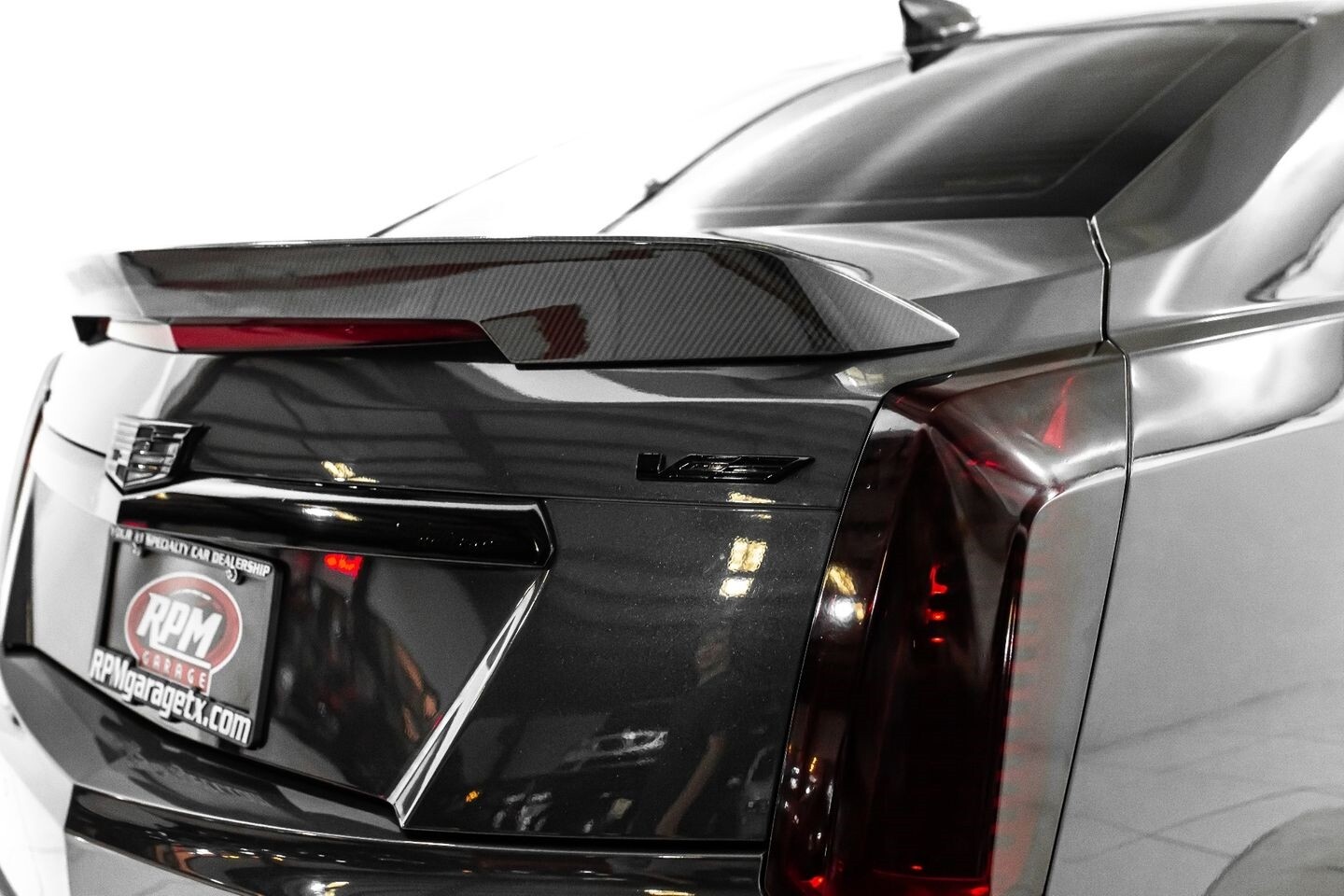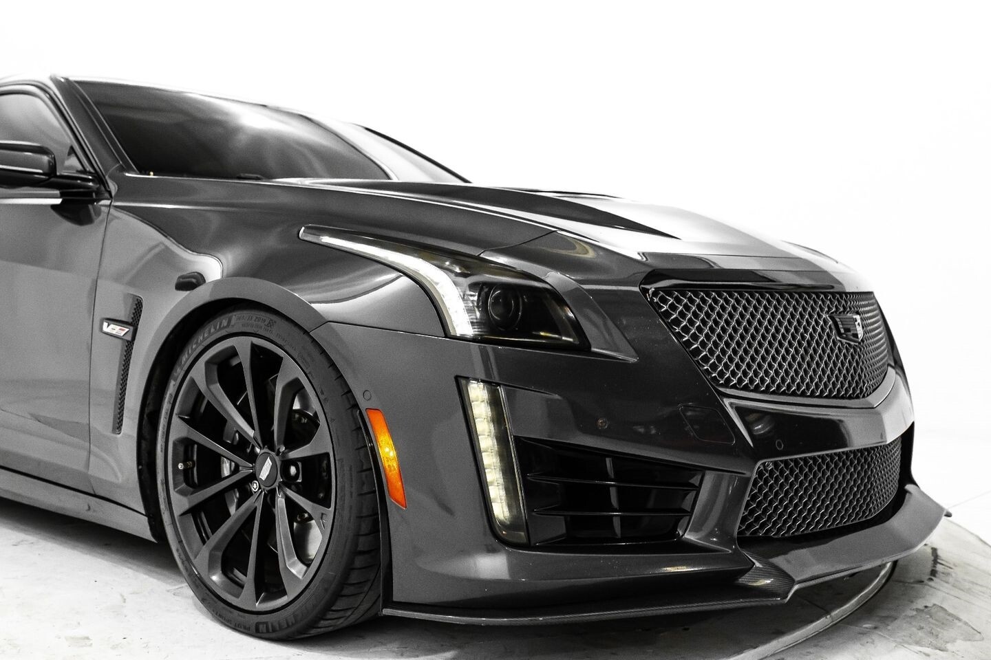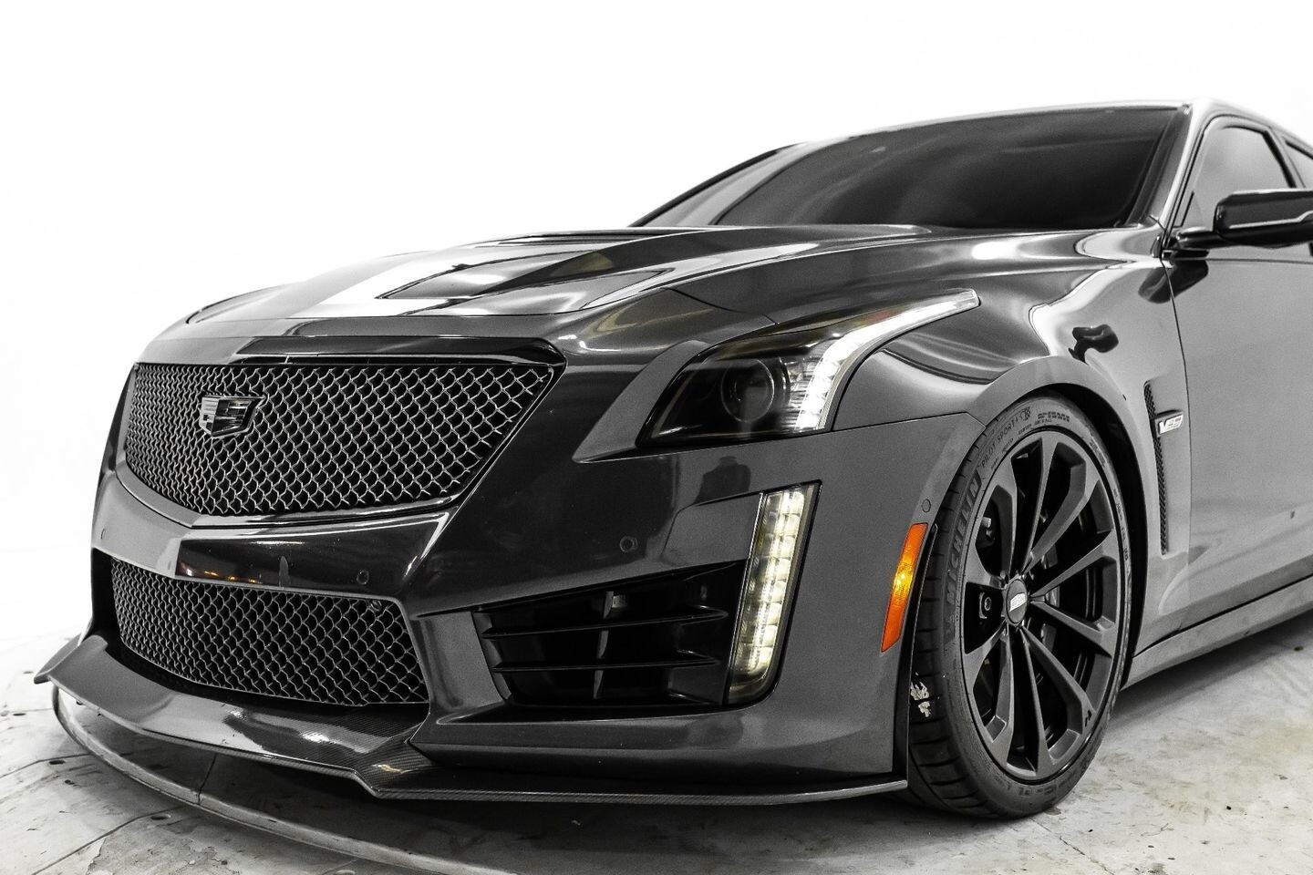 This 2016 Cadillac CTS-V is a luxurious muscle car that has received several modifications. Under the hood, a supercharged 6.2-liter V8 engine produces 640 horsepower and 630 lb-ft of torque, all of which is sent through a eight-speed automatic transmission to the rear wheels. The engine is not stock, however, having received an aftermarket camshaft kit, a Roto-Fab cold-air intake, a ZPE 2.3" supercharger pulley, and long-tube headers, among other modifications. This aggressive beast comes equipped with OEM 19" "V" wheels and is finished in Phantom Gray Metallic, a subtle color that makes this car look even more menacing. The exterior of this Cadillac has been made even more unique with the addition of some cosmetic modifications, which include a carbon fiber diffuser, a carbon fiber ducktail spoiler, a carbon fiber front lip, tinted headlights and taillights, and blacked-out exterior trim pieces. In the interior, this CTS-V offers heated and ventilated leather bucket seats, a leather steering wheel, multi-zone A/C, a heads-up display, selectable drive modes, carbon fiber interior trim, and an infotainment system with Bluetooth, navigation, apps, climate controls, AUX, and a backup camera, truly making this car the complete package.