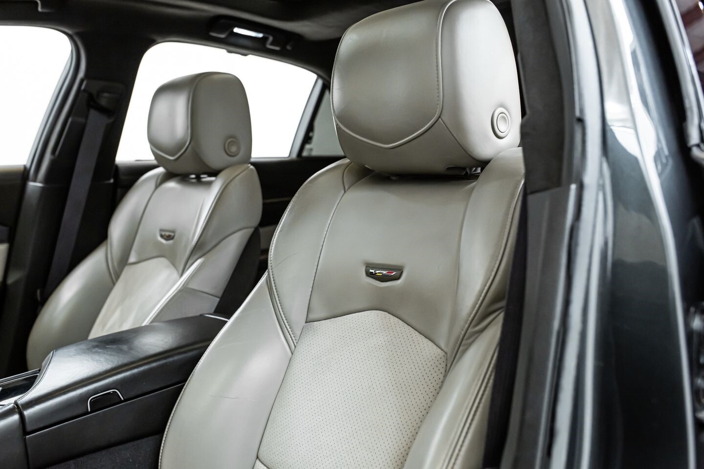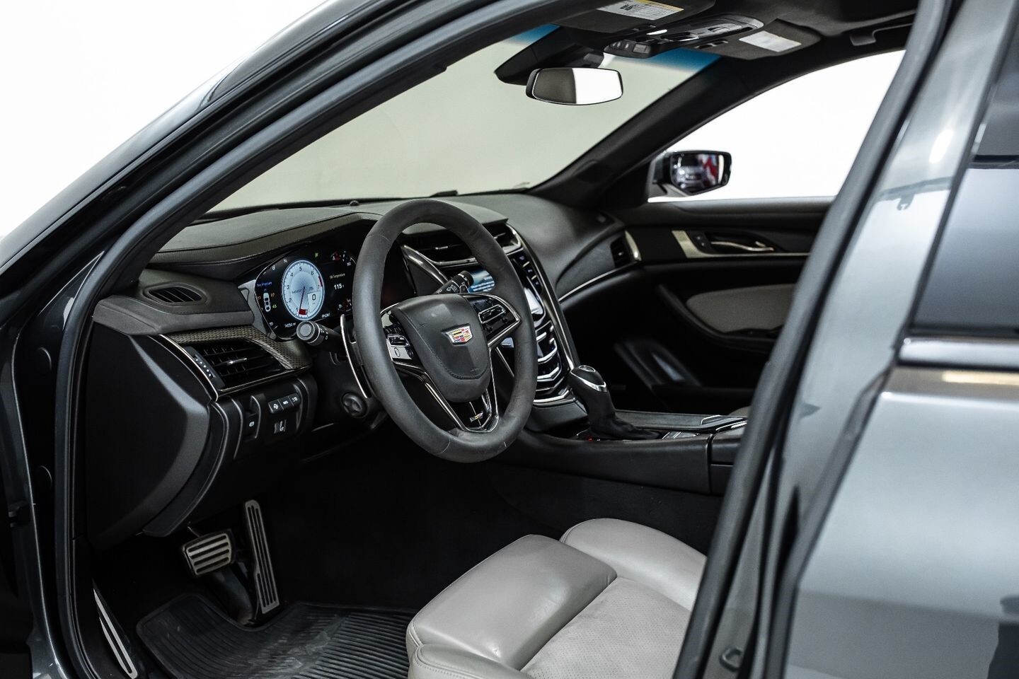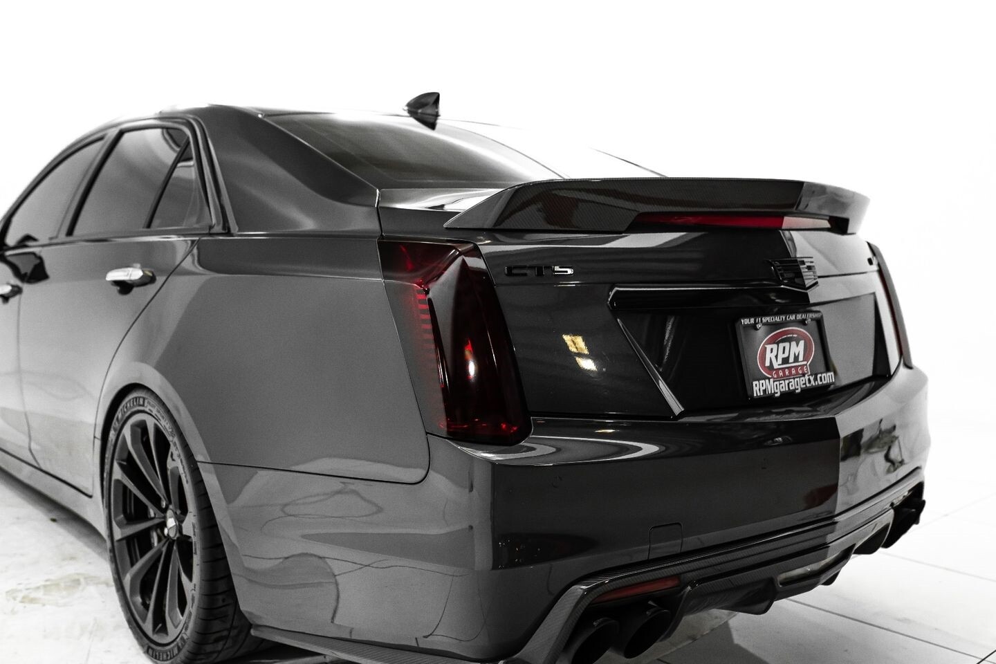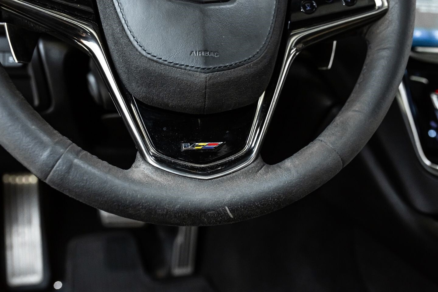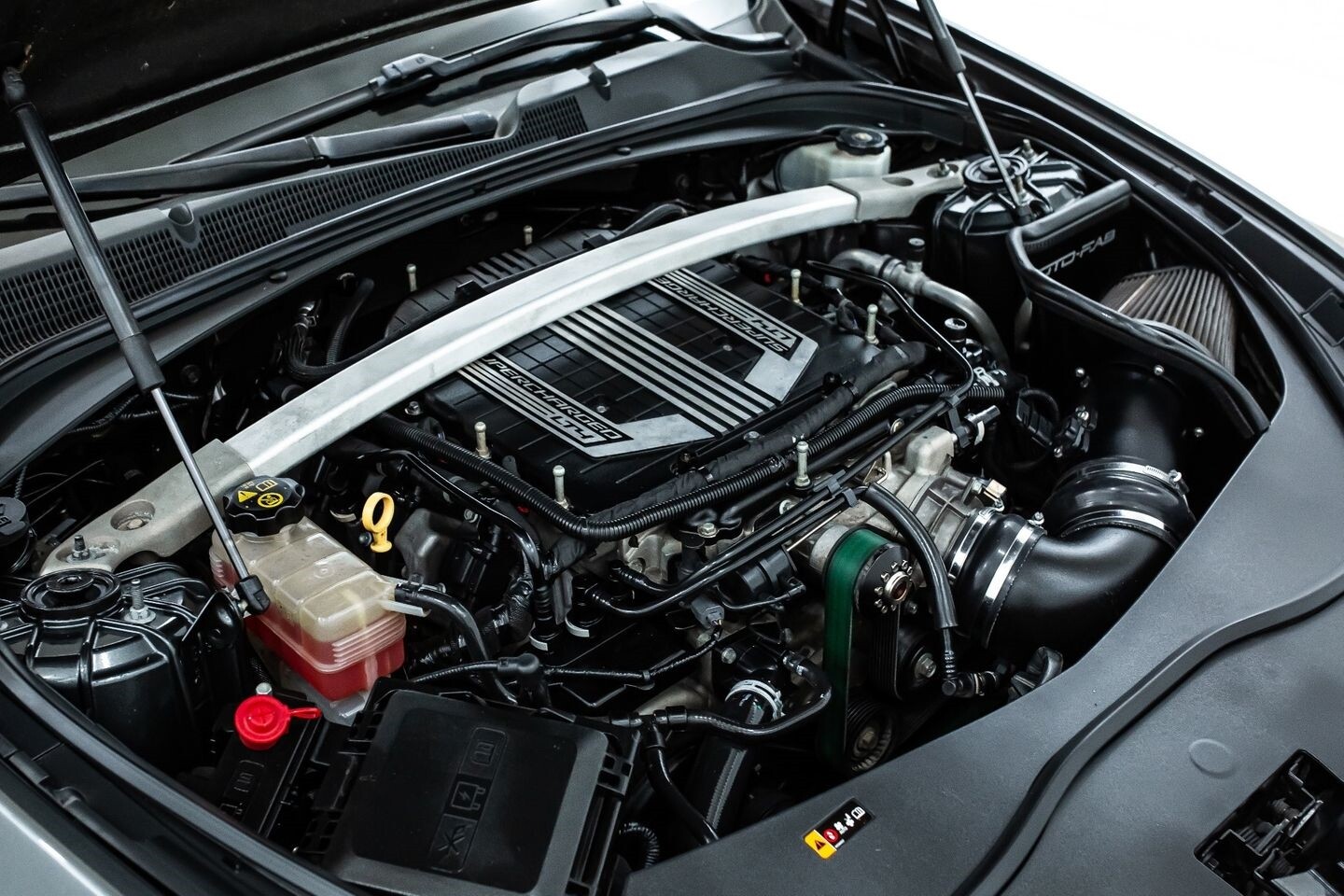This 2016 Cadillac CTS-V is a luxurious muscle car that has received several modifications. Under the hood, a supercharged 6.2-liter V8 engine produces 640 horsepower and 630 lb-ft of torque, all of which is sent through a eight-speed automatic transmission to the rear wheels. The engine is not stock, however, having received an aftermarket camshaft kit, a Roto-Fab cold-air intake, a ZPE 2.3" supercharger pulley, and long-tube headers, among other modifications. This aggressive beast comes equipped with OEM 19" "V" wheels and is finished in Phantom Gray Metallic, a subtle color that makes this car look even more menacing. The exterior of this Cadillac has been made even more unique with the addition of some cosmetic modifications, which include a carbon fiber diffuser, a carbon fiber ducktail spoiler, a carbon fiber front lip, tinted headlights and taillights, and blacked-out exterior trim pieces. In the interior, this CTS-V offers heated and ventilated leather bucket seats, a leather steering wheel, multi-zone A/C, a heads-up display, selectable drive modes, carbon fiber interior trim, and an infotainment system with Bluetooth, navigation, apps, climate controls, AUX, and a backup camera, truly making this car the complete package.