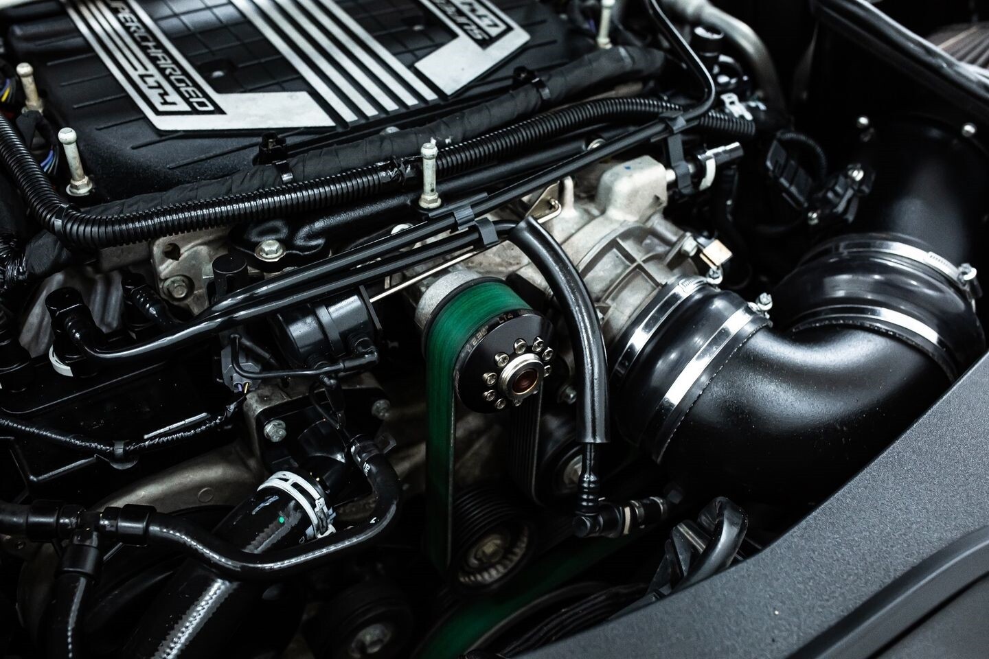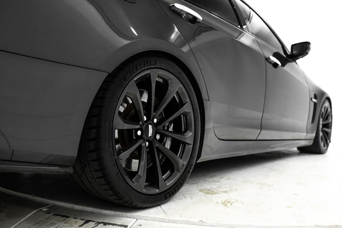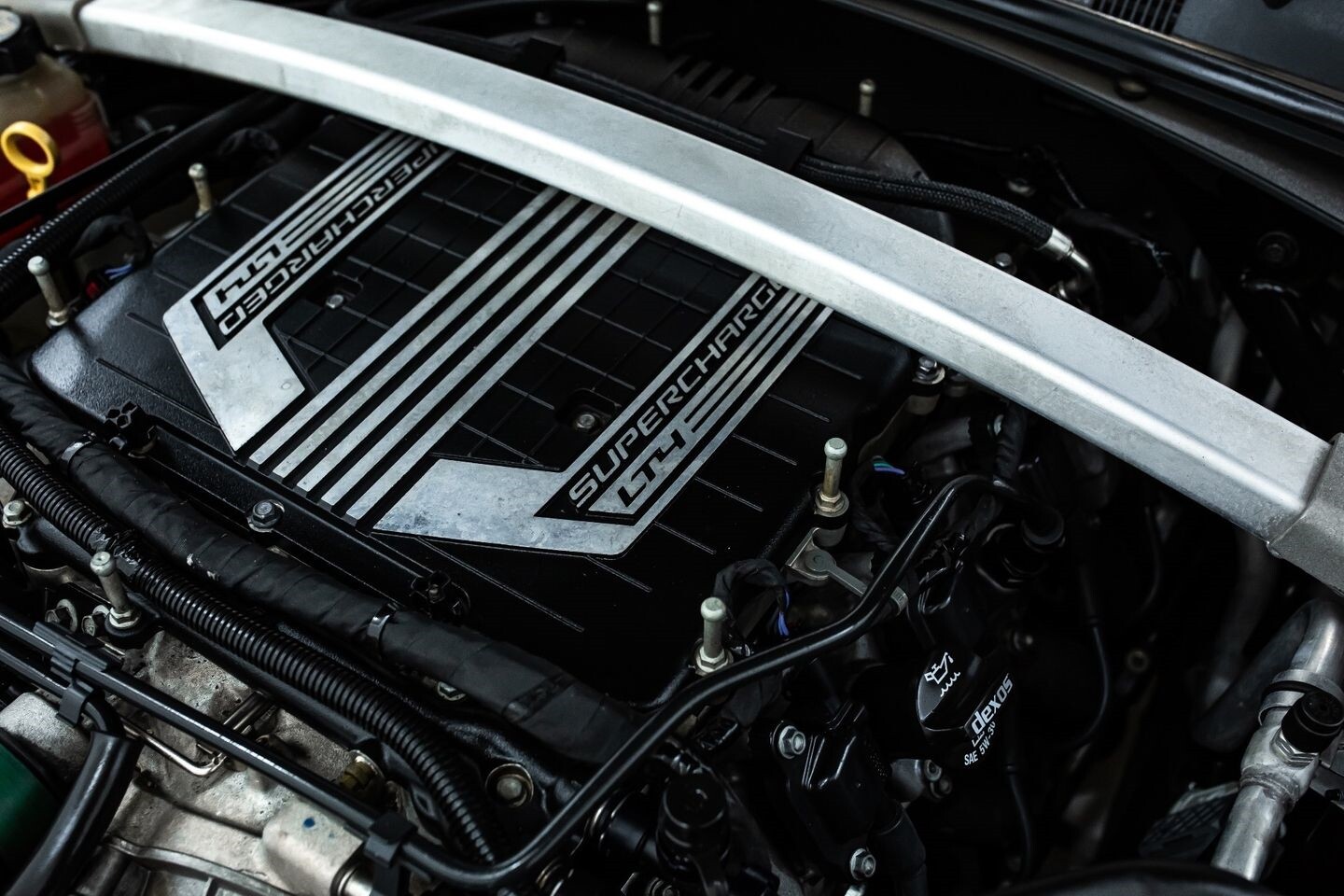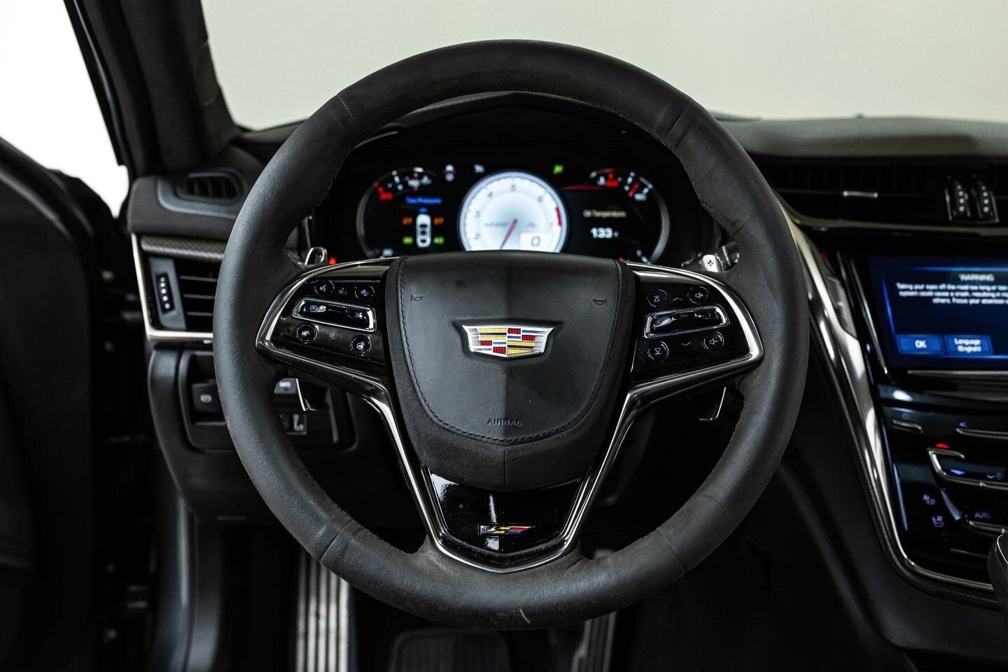 This 2016 Cadillac CTS-V is a luxurious muscle car that has received several modifications. Under the hood, a supercharged 6.2-liter V8 engine produces 640 horsepower and 630 lb-ft of torque, all of which is sent through a eight-speed automatic transmission to the rear wheels. The engine is not stock, however, having received an aftermarket camshaft kit, a Roto-Fab cold-air intake, a ZPE 2.3" supercharger pulley, and long-tube headers, among other modifications. This aggressive beast comes equipped with OEM 19" "V" wheels and is finished in Phantom Gray Metallic, a subtle color that makes this car look even more menacing. The exterior of this Cadillac has been made even more unique with the addition of some cosmetic modifications, which include a carbon fiber diffuser, a carbon fiber ducktail spoiler, a carbon fiber front lip, tinted headlights and taillights, and blacked-out exterior trim pieces. In the interior, this CTS-V offers heated and ventilated leather bucket seats, a leather steering wheel, multi-zone A/C, a heads-up display, selectable drive modes, carbon fiber interior trim, and an infotainment system with Bluetooth, navigation, apps, climate controls, AUX, and a backup camera, truly making this car the complete package.