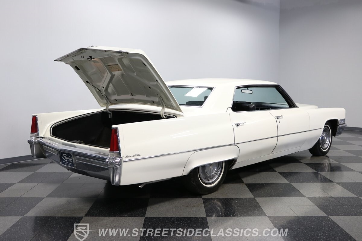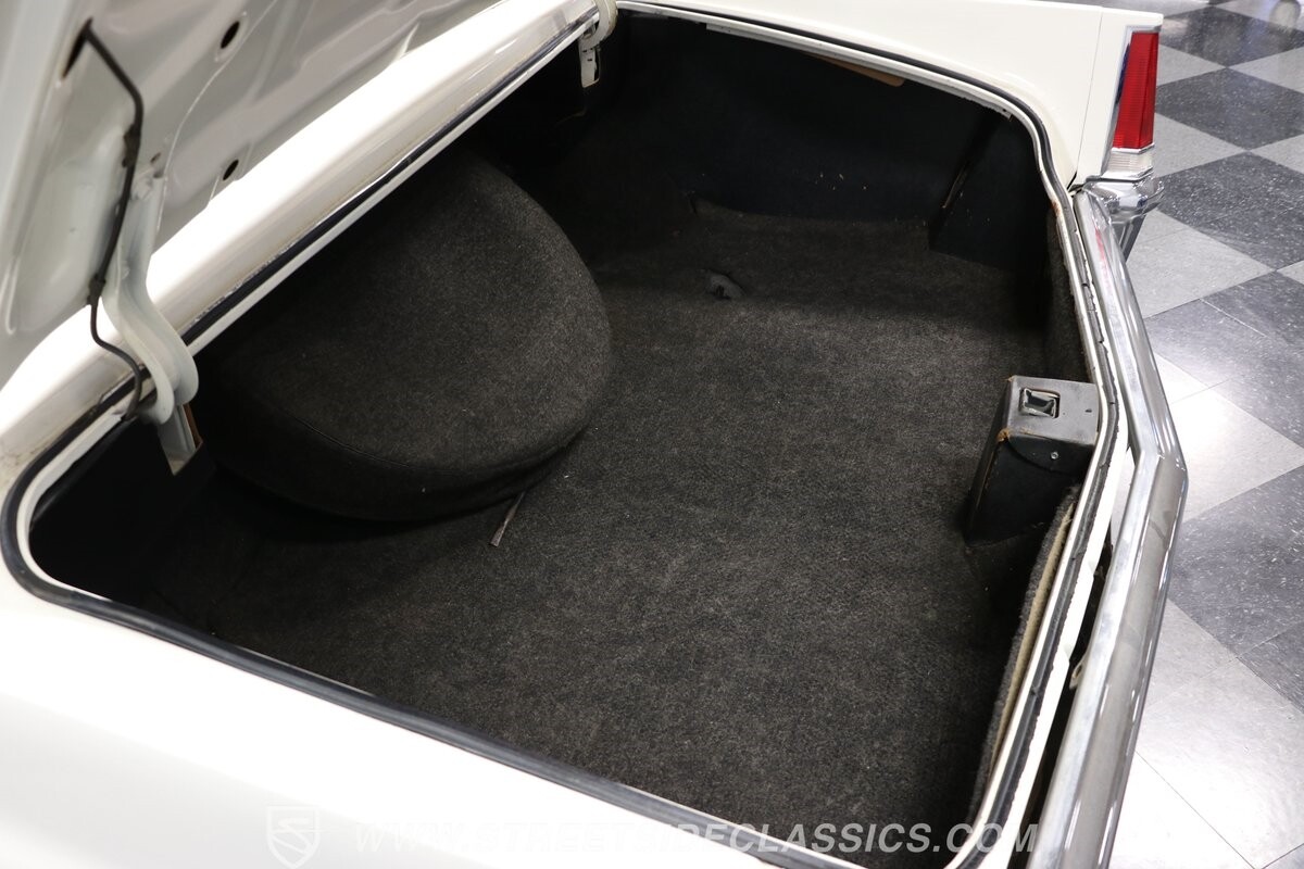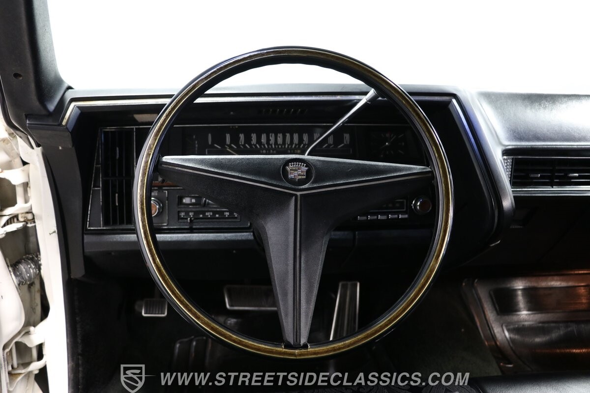 Under the hood is possibly the numbers-matching 472 cubic-inch V8. With a four-barrel carburetor on top, this is known for locomotive-like torque. So this DeVille knows how to smoothly and effortlessly pull away at the stoplights. But where it's really at home is boulevard cruising. That's where features like the three-speed automatic transmission, power steering, and front disc brakes come into play. Plus, the suspension has that feeling of floating down the road that only a cool classic Caddy can deliver.
