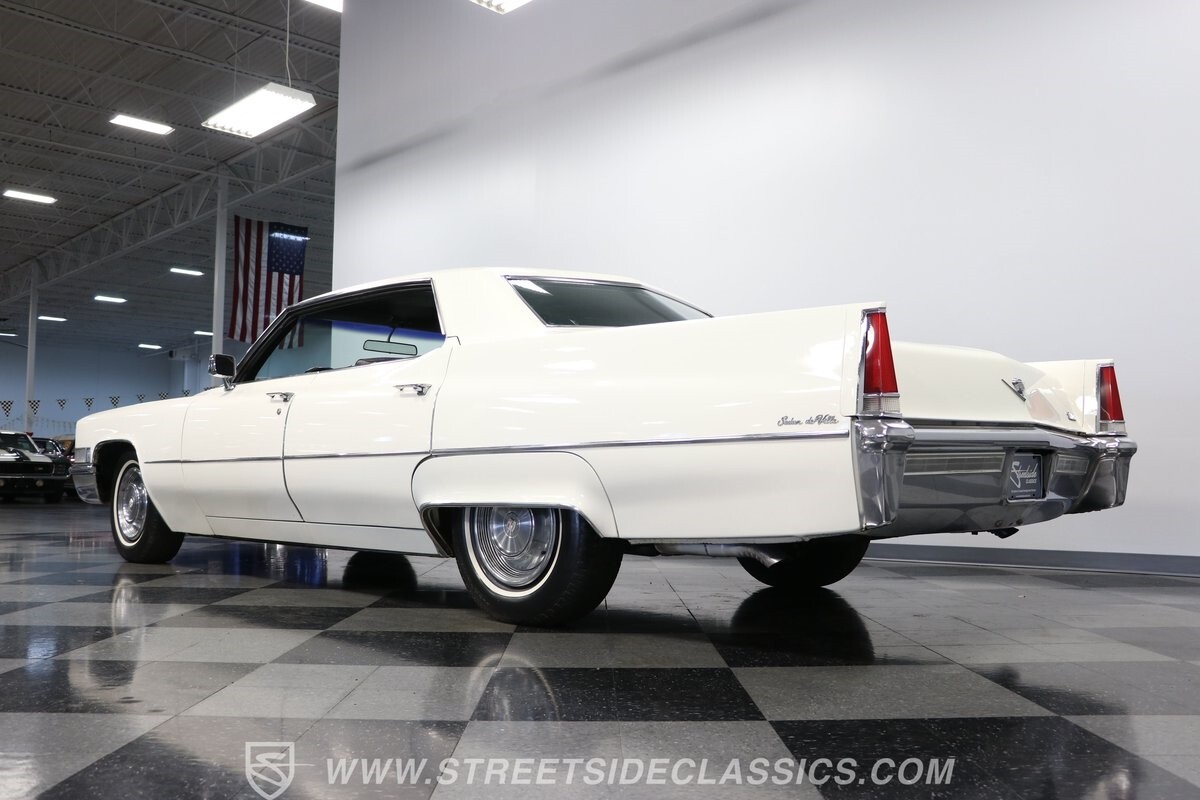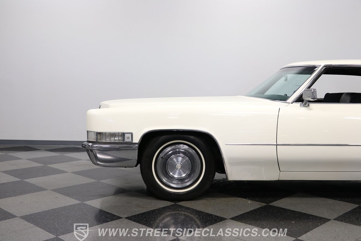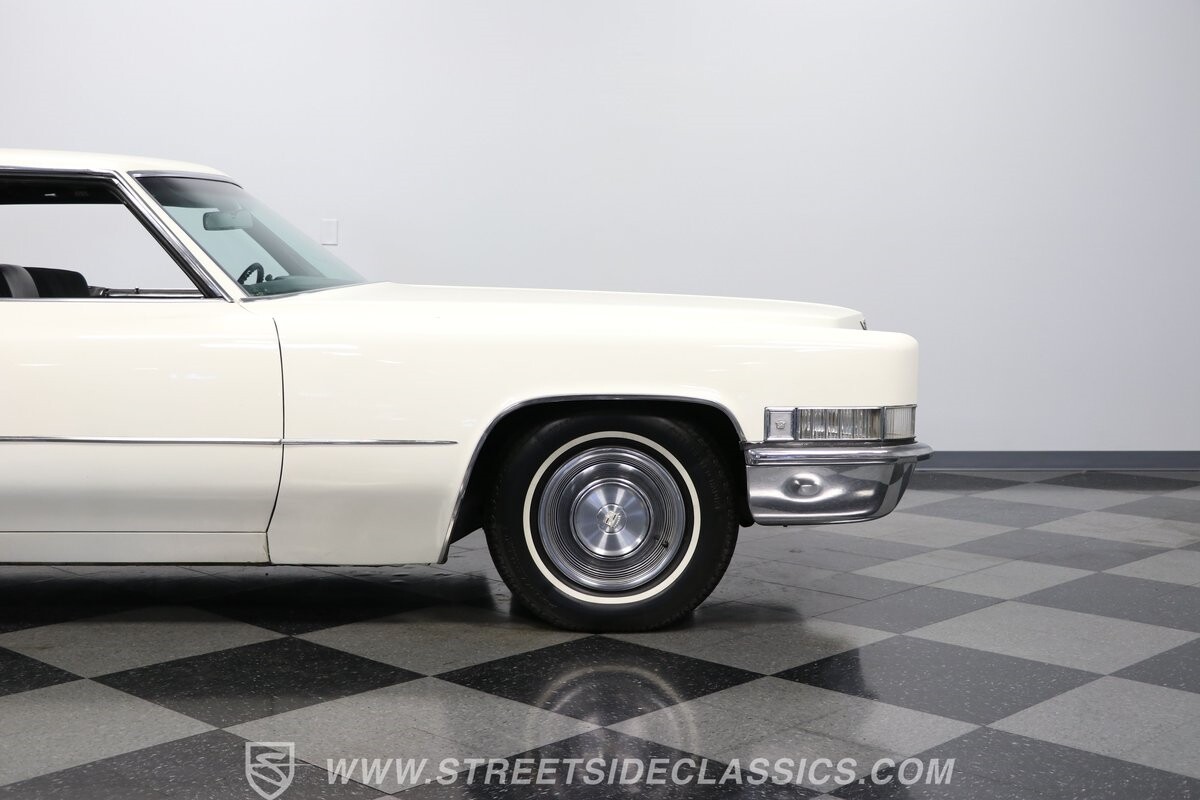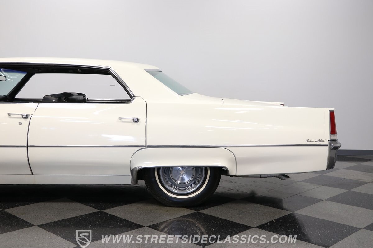 Under the hood is possibly the numbers-matching 472 cubic-inch V8. With a four-barrel carburetor on top, this is known for locomotive-like torque. So this DeVille knows how to smoothly and effortlessly pull away at the stoplights. But where it's really at home is boulevard cruising. That's where features like the three-speed automatic transmission, power steering, and front disc brakes come into play. Plus, the suspension has that feeling of floating down the road that only a cool classic Caddy can deliver.