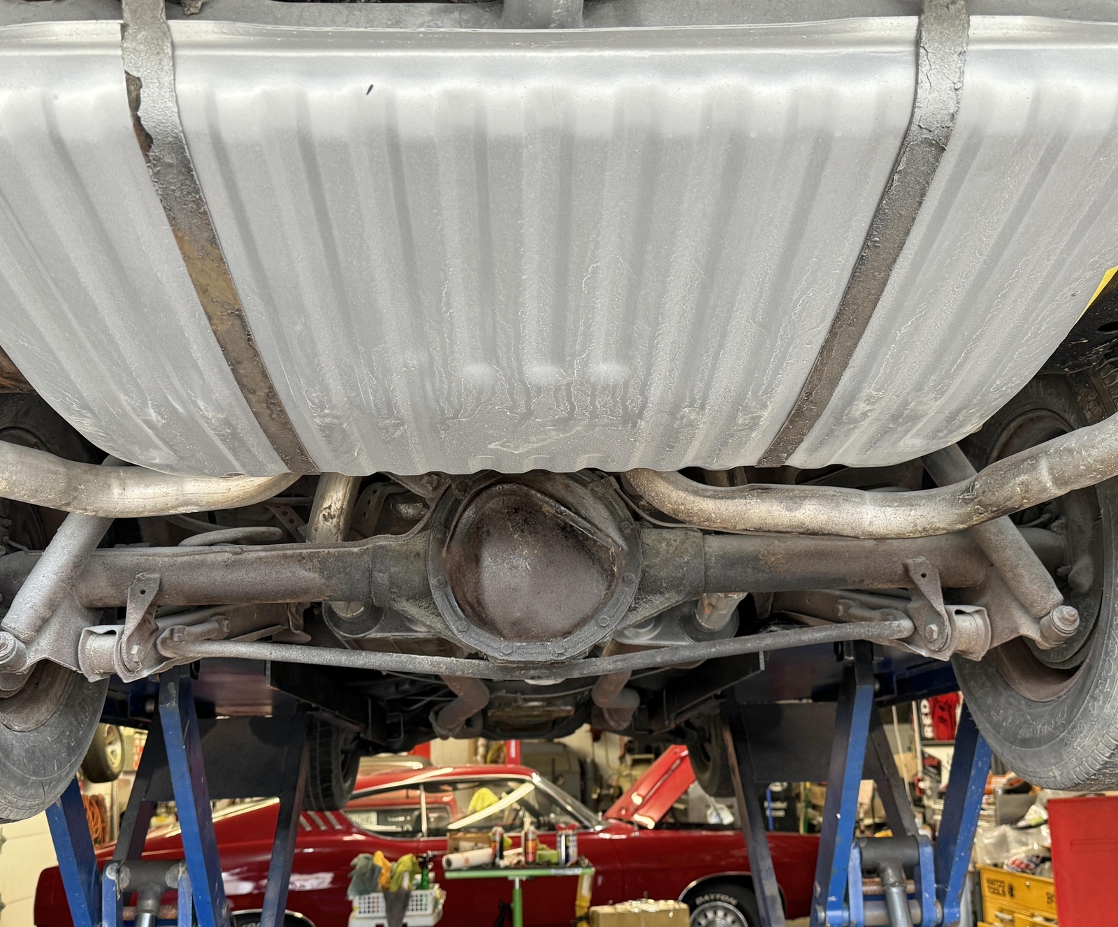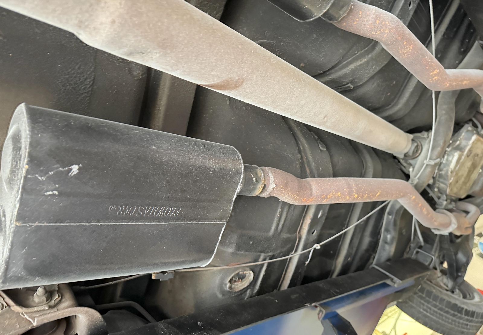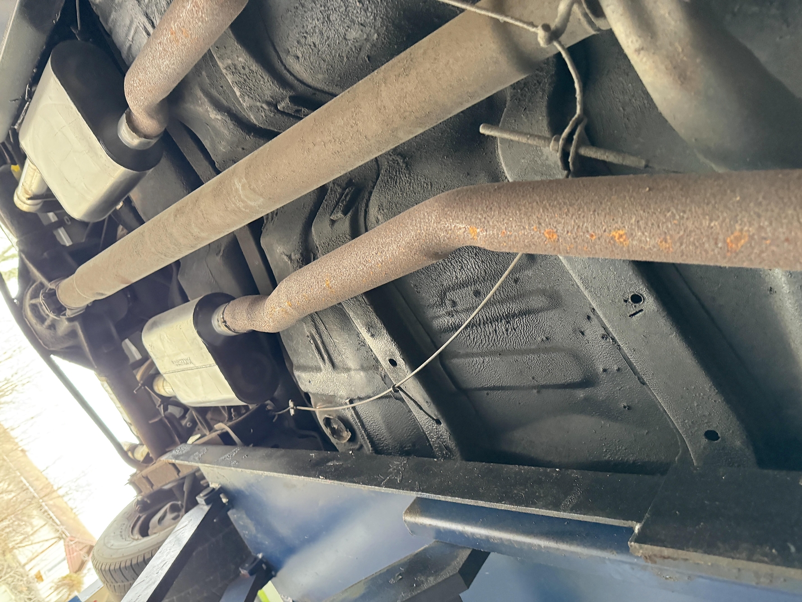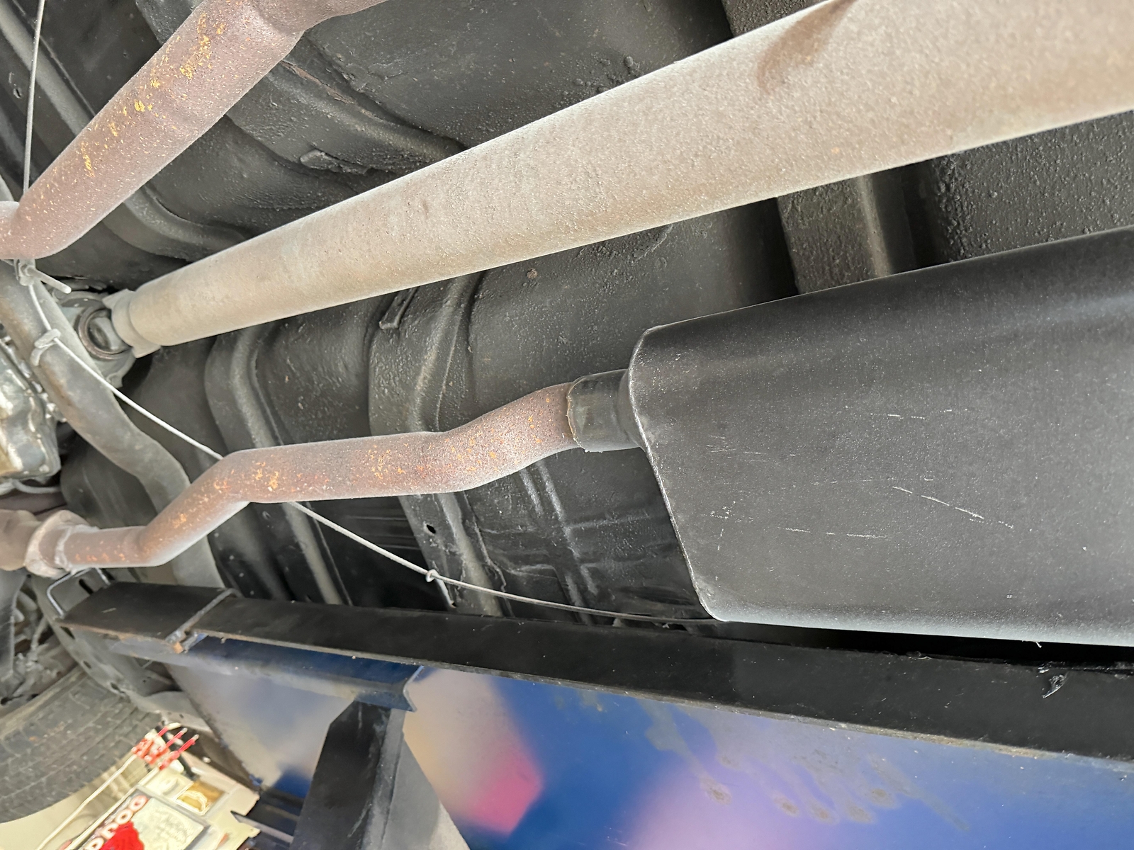 DUAL EXHAUST WITH FLOWMASTER MUFFLERS …..ALL WAY OUT BACK WITH CORRECT CHROME TIPS……SOUNDS AWESOME!