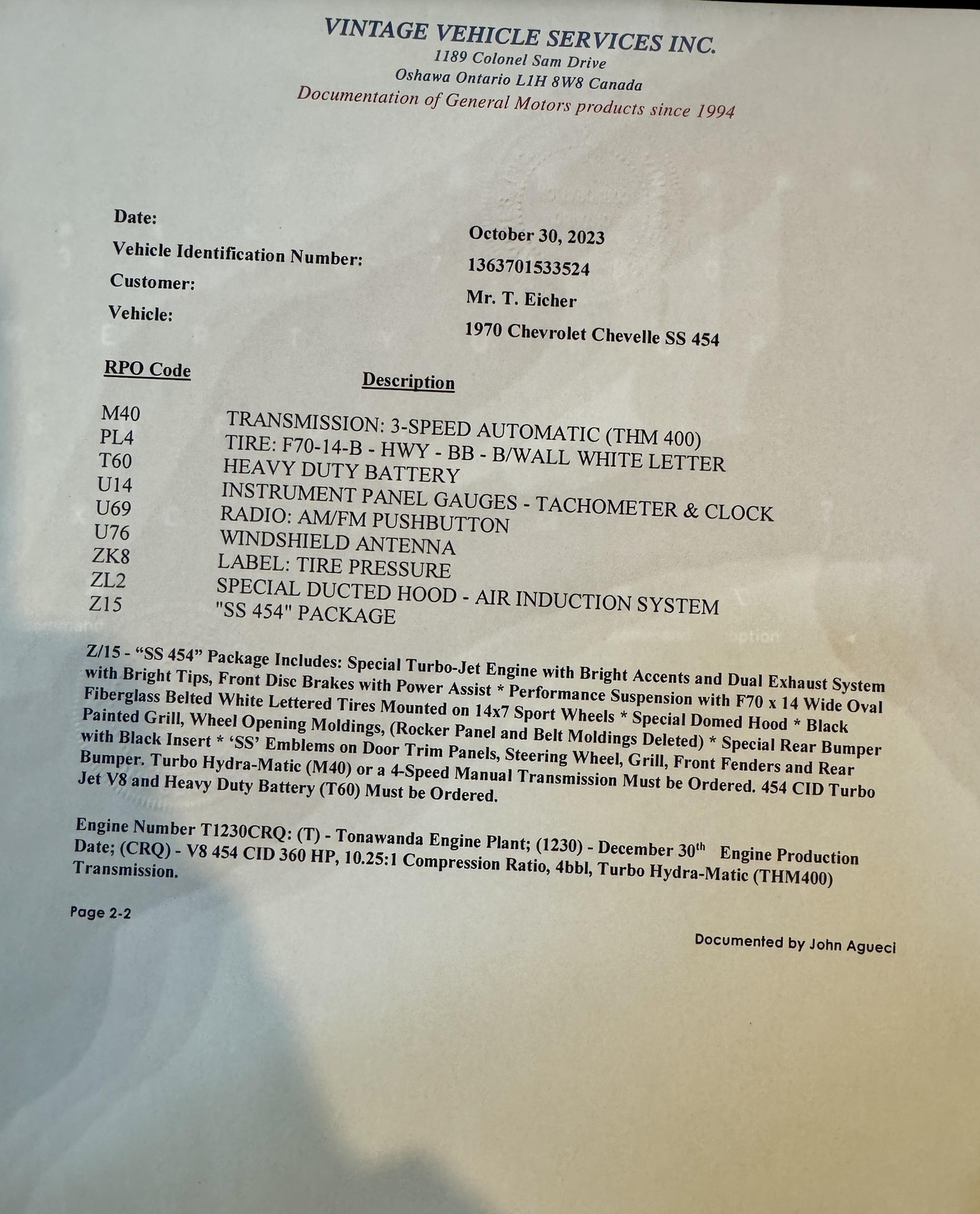 FULLY DOCUMENTED FACTORY SUPER SPORT WELL OPTIONED 1970 CHEVELLE SS 454/360HP LS5 CAR