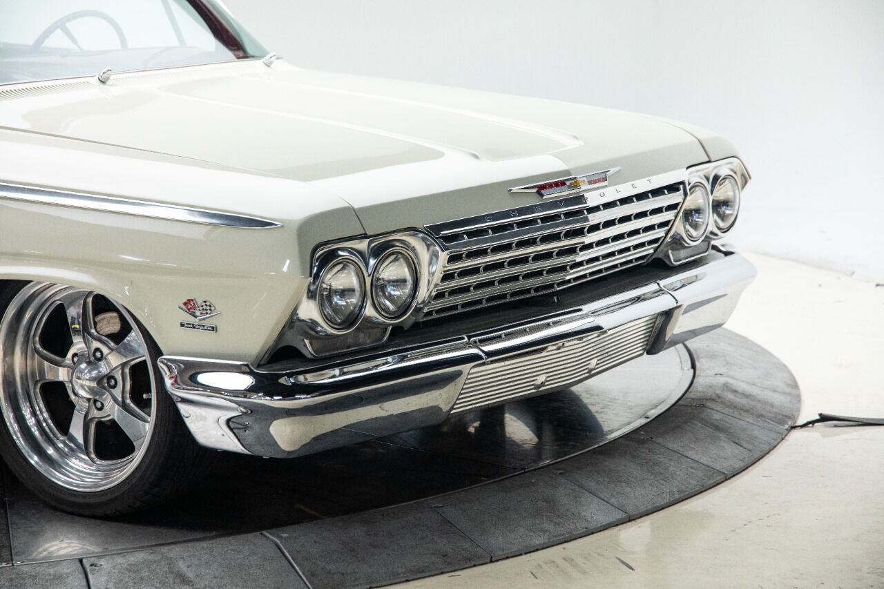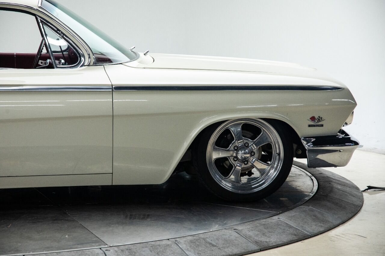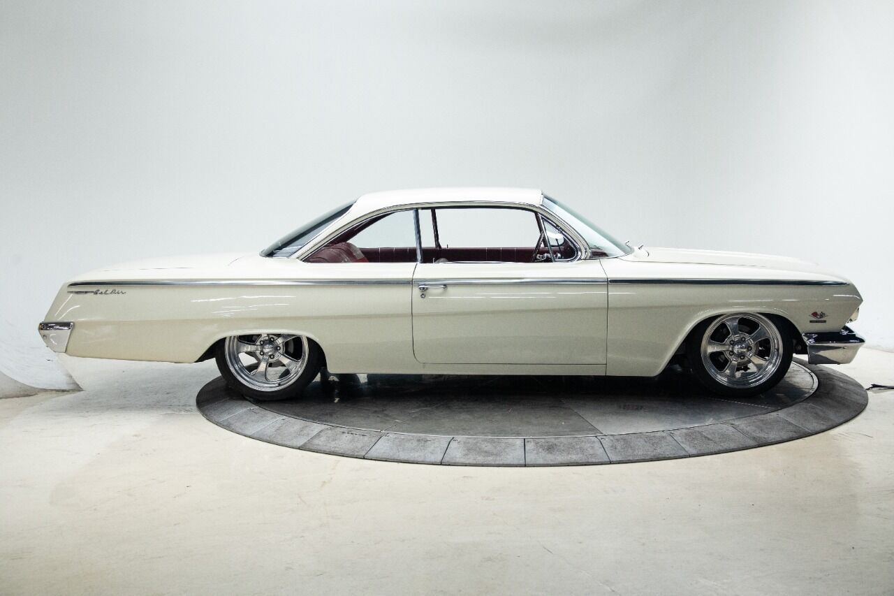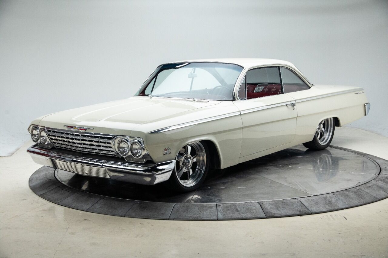 1962 Chevrolet Belair Bubbletop Crate 5.7 Chevy Ramjet fuel injection 4L60E 4 speed Overdrive transmission Full Frame Off restoration Power 4 wheel disc brakes, power steering Lowered QA1 coilovers with front and rear sway bars 18inch front and 20 inch Billet Specialties polished aluminum wheels Tubbed rear end This frame off restored 1962 Chevrolet Bel Air resto-mod bubbletop is powered by a GM crate 350ci Ram Jet fuel-injection engine, serpentine belt system with aluminum pulleys, mated to a 4L60E 4-speed overdrive automatic transmission with GM Connect & Cruise control. It is equipped with a new aluminum radiator, new GM wiring and a rebuilt rear end. This Bel Air has QA1 coilovers up front with trailing arms in the rear, with front and rear sway bars. It rolls on 18-inch front and 20-inch rear Billet Specialties wheels, body has been tubbed for the large rear wheels. Stopping has been supplied by four wheel CCP power disc brakes with chrome master cylinder. The driveline has less than 5,000 miles since completion. The interior is the original Bel Air style, with the bench seat replaced by 1962 SS bucket seats. Ciadella Interiors created the custom covers to maintain the classic '62 feel. Lots of minor little custom touches in the interior like custom rear package tray, full length console with cup holders and built in radio remote, hidden radio in glove box, custom gauges in the dash, cool vintage tachometer(works but inaccurate). Two spoke chevy steering wheel rounds out the package. Wipers delete package. Beautiful Mirror Gloss Pepper White from a 2004 BMW 850 finish the exterior sex appeal with all the chrome polished or replaced. Lowered cars many times ride rough and bottom out but this car rides great!. A great cruiser ready to gather awards!! As always, we will consider all types of trades. Financing and transportation are available. Why buy from us? We are one of the oldest and largest midwest dealers who specializes in collector cars, modern muscle cars and imports. We normally have 40-90 collector cars in stock. All of our cars are handpicked purchases, not consignments, that have been evaluated for quality, value and checked over in our shop to assure drivability. These cars are available to look over, test drive and evaluate at our location, by appointment only, due to the extensive amount of travel it takes to find these vehicles. People frequently buy collector cars at auctions and have no idea what they are getting, often regretting the purchase due to issues of condition, driveability, paperwork, etc . We have 40+ year's experience in the automotive industry and can guide our customers through the complete purchase experience including shipping if needed. We will happily consider all types of trades including multiple trades of different types if necessary. We also will purchase restored cars and restored collections of cars. No projects wanted. Please do not hesitate to contact us with any questions regarding a vehicle we have for sale or a vehicle you have for sale.319-462-1129