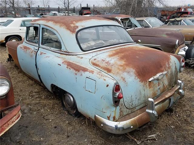 1953 Chevy 2 Door Sedan. Has original engine and transmission. Motor is incomplete and probably stuck from sitting for many years. Body is in decent shape. Mostly complete. No front drums or tires. Transport will need to know this. Car needs total restoration. Clean title. Asking $2000. Located in Thief River Falls, Minnesota.