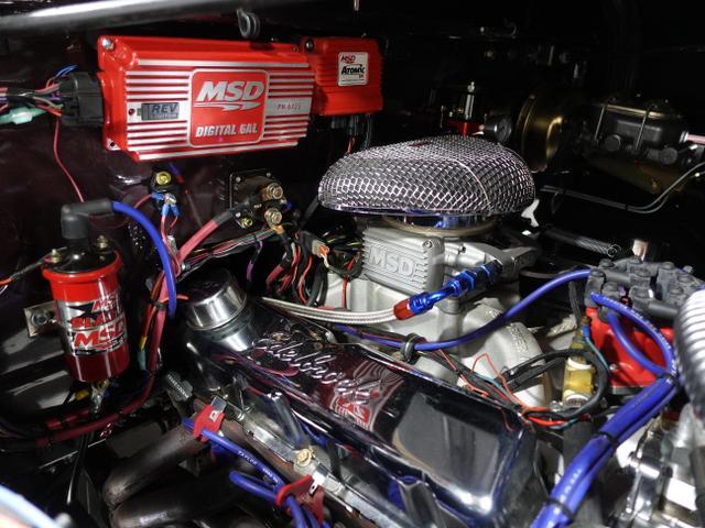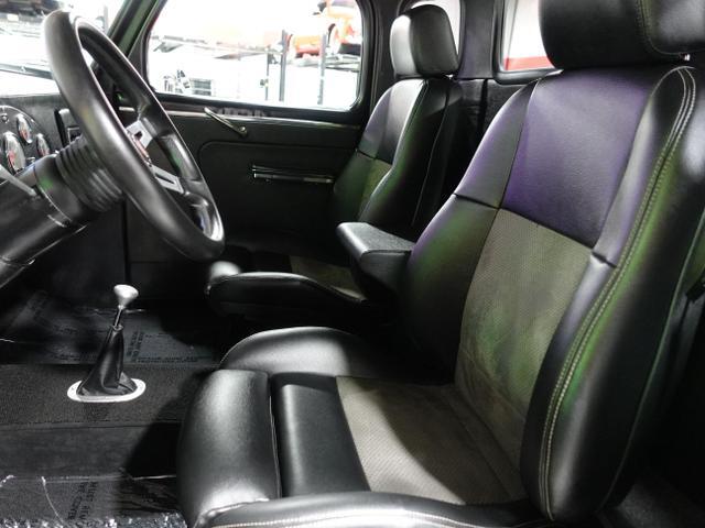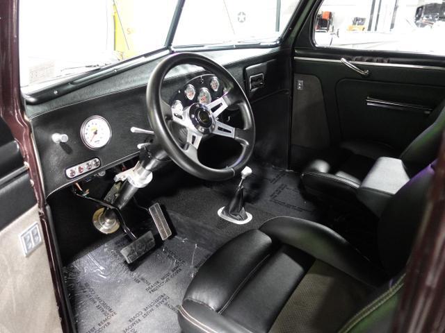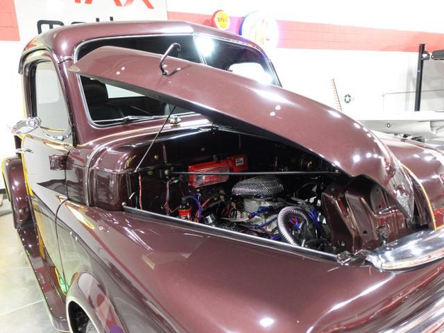 It’s based on a seasoned and fully machined 351W Ford Roller block and the Performance Unlimited crew has tuned it to easily generate more than 450 reliable horsepower. A complete spec sheet includes such goodies as an MSD Atomic EFI and a Comp Cams custom-ground hydraulic roller cam. The power is sent through a C4 automatic to a 9-bolt rear. The smooth sheetmetal (and yes, it’s all metal including cab, doors, fenders, hood, bed, and tailgate) is covered in a beautiful shade of Black Cherry Pearl with subtle gold flames and gold striping. The chassis is up to the task as well with coil over suspension and a Mustang II front end with rack & pinion steering. Inside are black leather bucket seats with Alcantara suede inserts, a Grant GT steering wheel, and white face Auto Meter gauges and a Jeg’s tach. It features air conditioning by Vintage Air, power windows, and a tilt steering column. The truck rides on multi-spoke chrome wheels with spinners wrapped in high performance radial tires. This 1950 Dodge Truck Custom is a high quality build and the good news is it’s ready to drive. Please be sure to see the detailed photos at