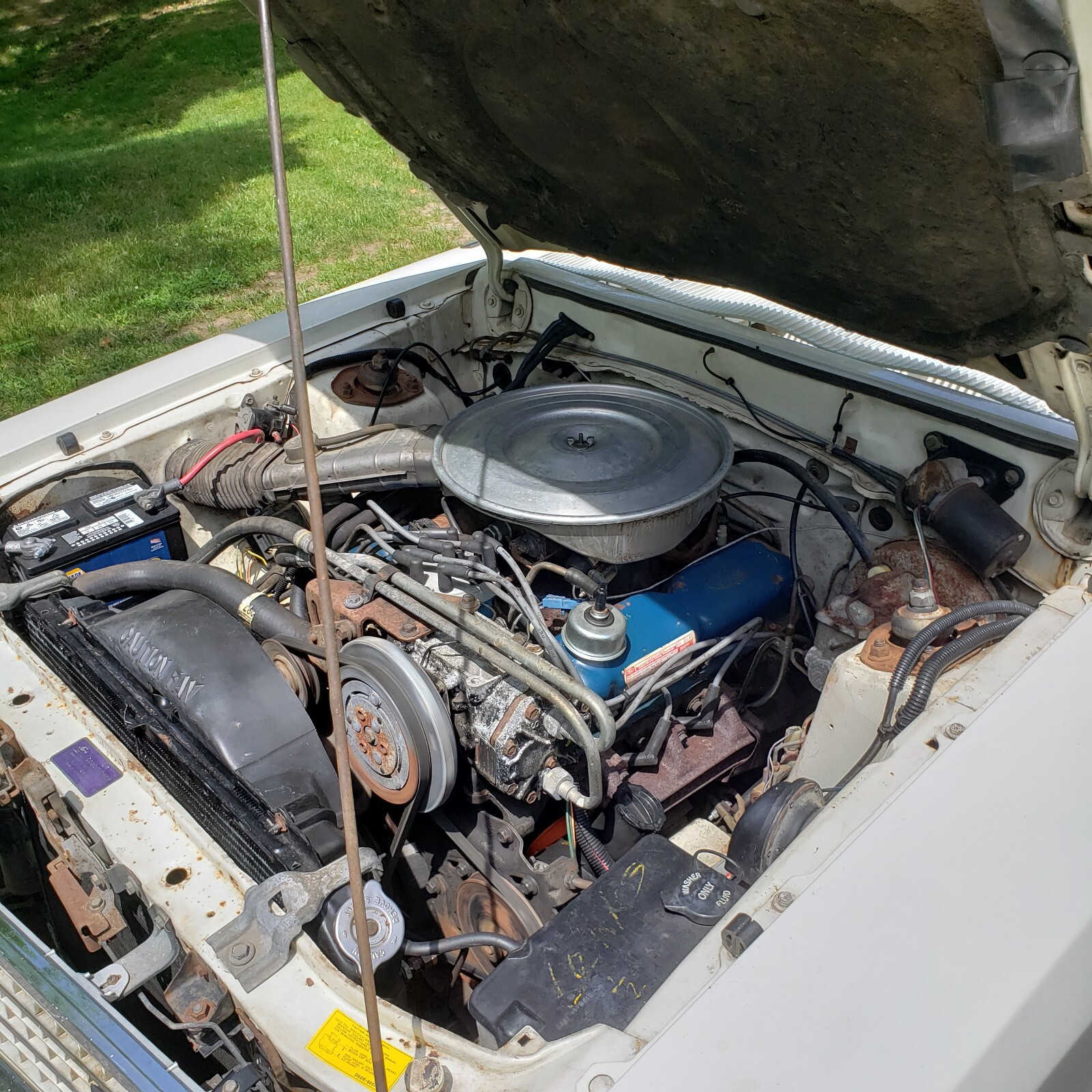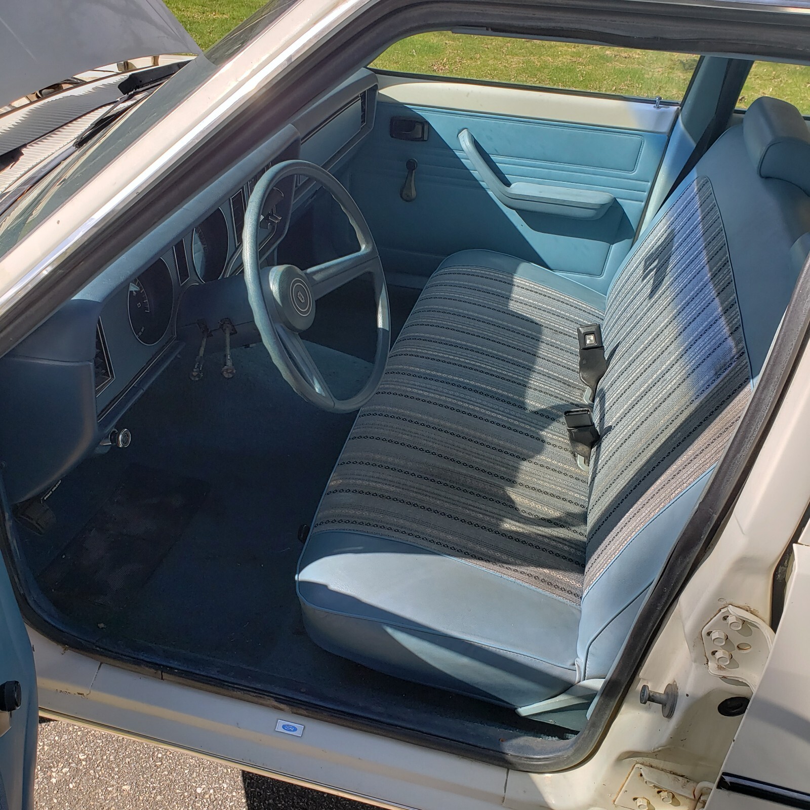 All original barn find survivor car with factory 302 V8. Odometer shows 40,734 miles. Unkown if original, as there are only five digits. Car starts, runs, and drives well, however, the engine leaks oil, I believe from both the front and rear main seals. Car has new tires, battery, plugs, wires, fuel sending unit, and rebuilt carb. Body is very straight and solid. Paint has chips, scratches, and cracking. Some minor surface rust showing through in places. Interior in great shape with near perfect dash cover and original radio-delete cover still in place. This would make a great sleeper. As the original Fox chassis vehicle, the possibilities are almost limitless! I purchased it from Iowa two years ago, but it has mostly been sitting in my garage ever since. I just never found the time or money to do what I wanted with it. Time to find it a new home! No reserve!