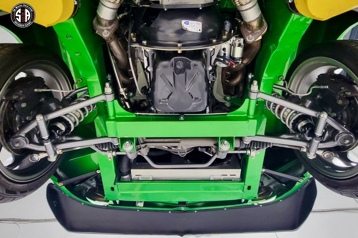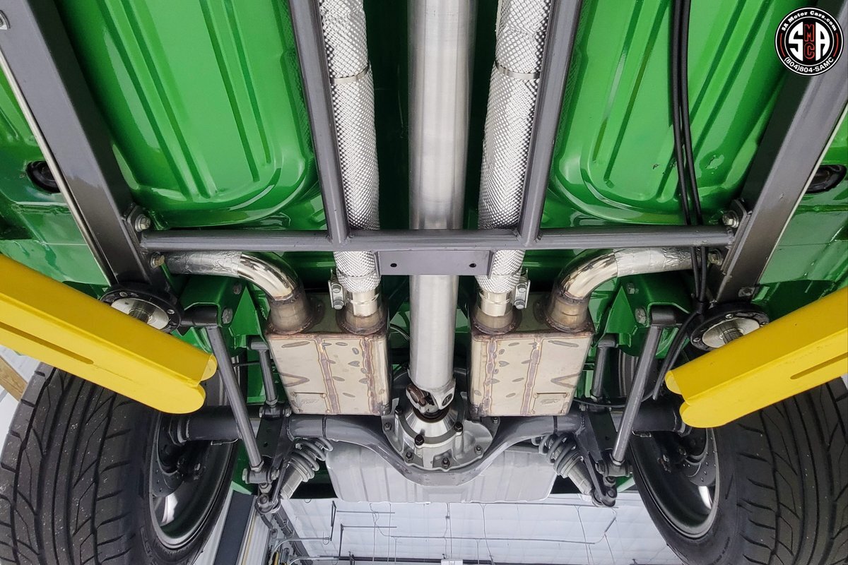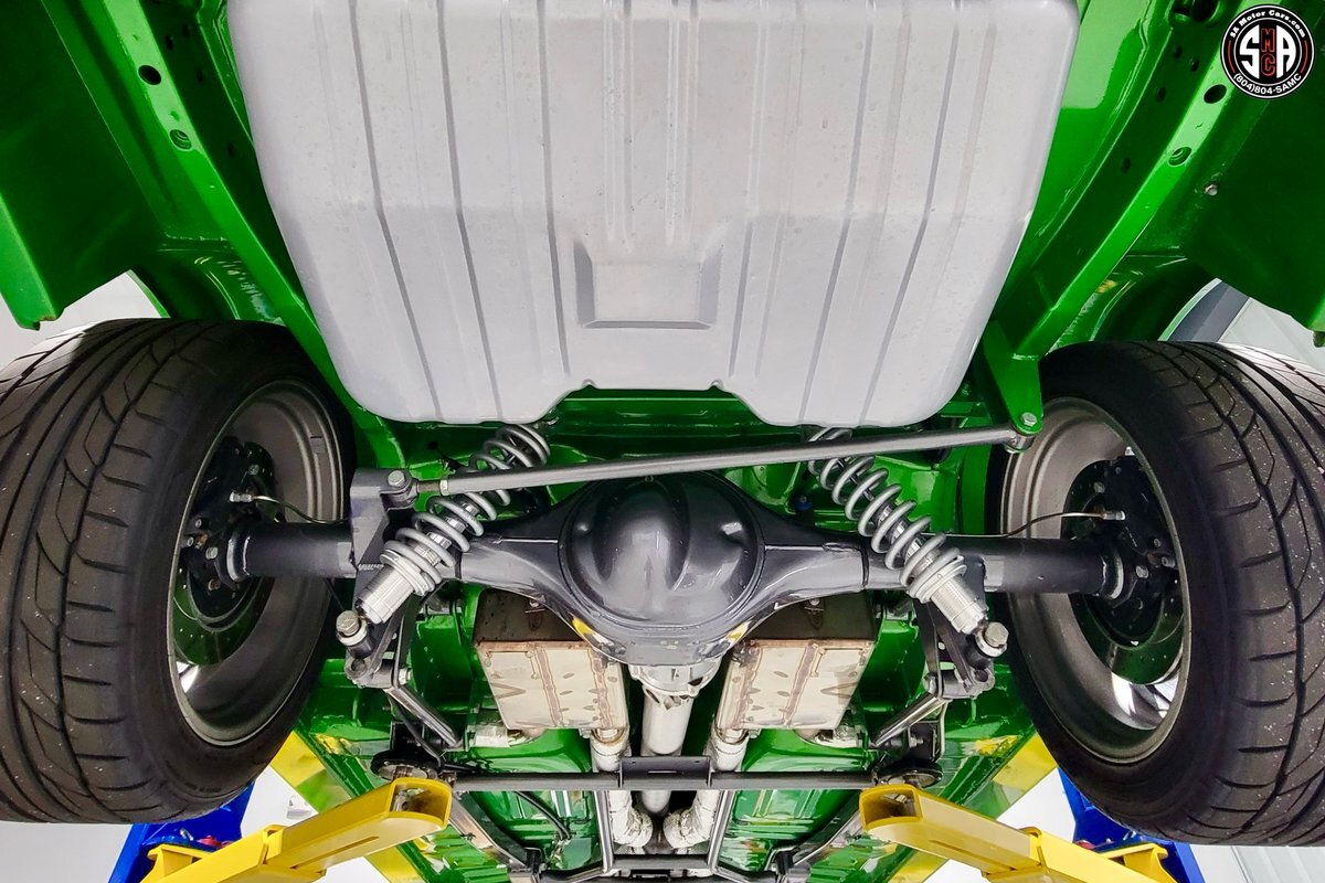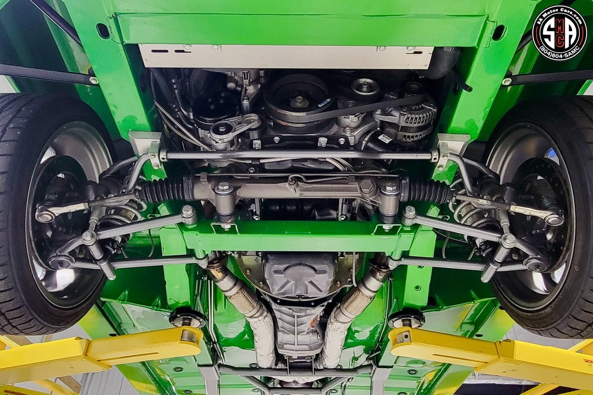 Powering this Ford is an Electrically Fuel Injected Ford 5.0L Gen 2 Coyote V8 Engine with a Cold Air Intake and Stainless-Steel Exhaust Headers! The engine bay of this Mustang is completely customized! An Aluminum Radiator that's paired with Dual Electric Cooling Fans keeps this powerplant running nice and cool. Coyote power is sent to the rear tires through a Tremec T56 6-Speed Manual Transmission, an Aluminum Driveshaft, and a Moser 9'' Posi Rear End with approximately 3.55:1 Gears! This Mustang is loaded with Air Conditioning, Power Rack and Pinion Steering, and Wilwood 4-Wheel Power Disc Brakes with Drilled and Slotted Rotors! The underside of this '70 features Body Color Painted Floorboards along with a multitude of custom components! You won't hesitate to place a set of mirrors underneath this Ford any day of the week to display the nice condition of the Frame Members with Frame Ties and Custom Bracing, Painted Fuel Tank, Heidts Independent Front Suspension with Tubular Upper and Lower Control Arms, 4-Link Rear Suspension, Coilover Shocks Front and Rear, along with the Stainless Steel Dual Exhaust System that's fitted with an X-Pipe, SpinTech Mufflers, and Thermal Insulation!