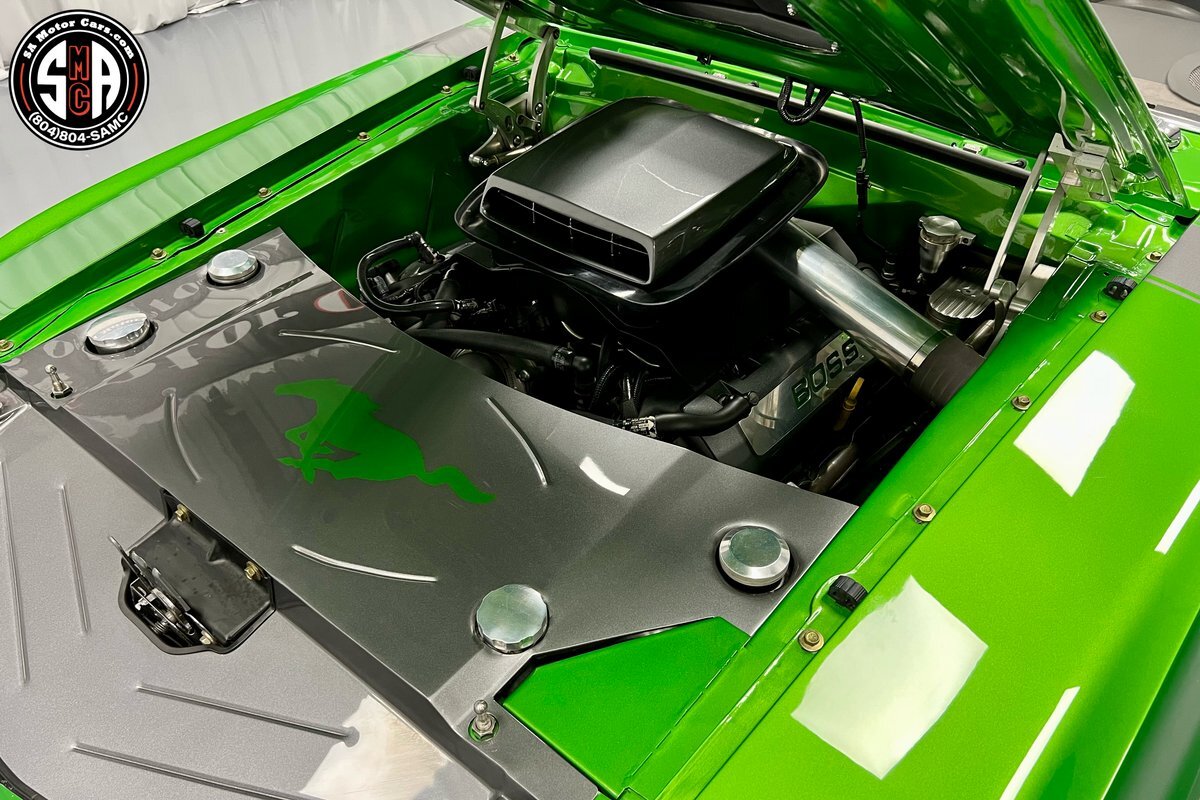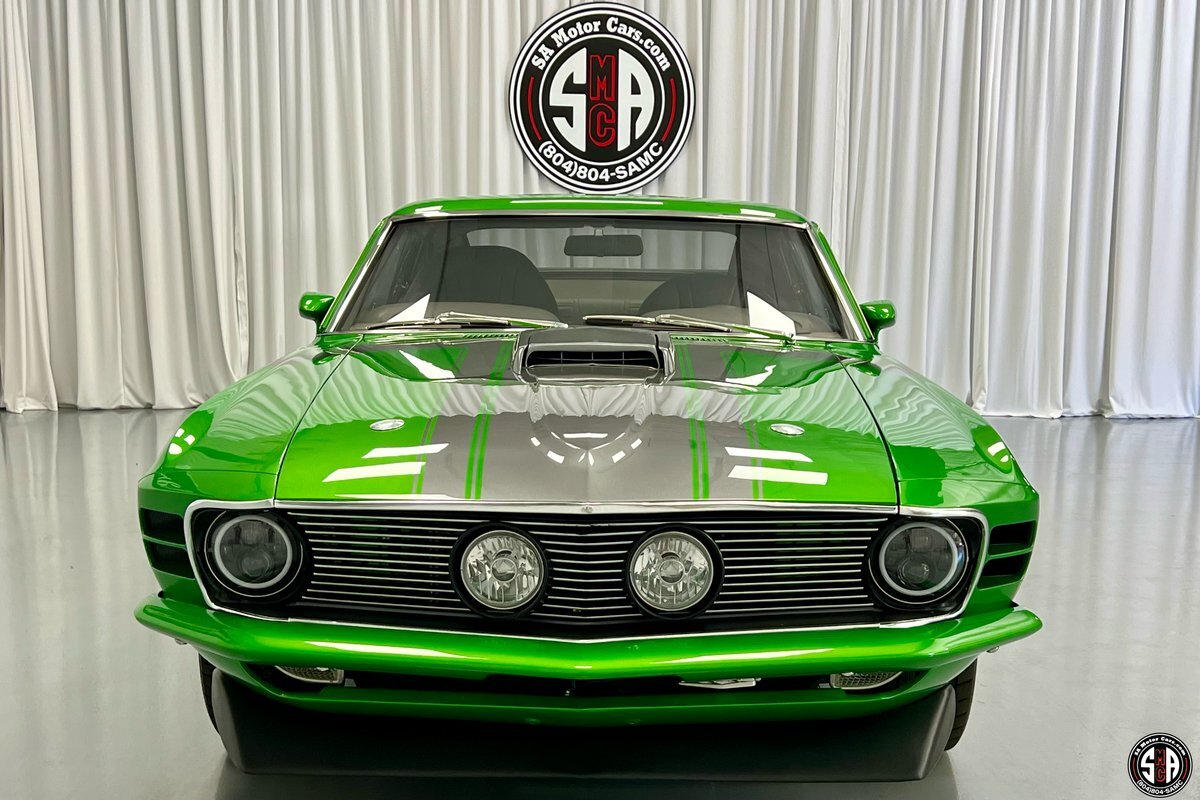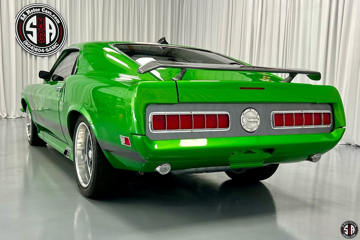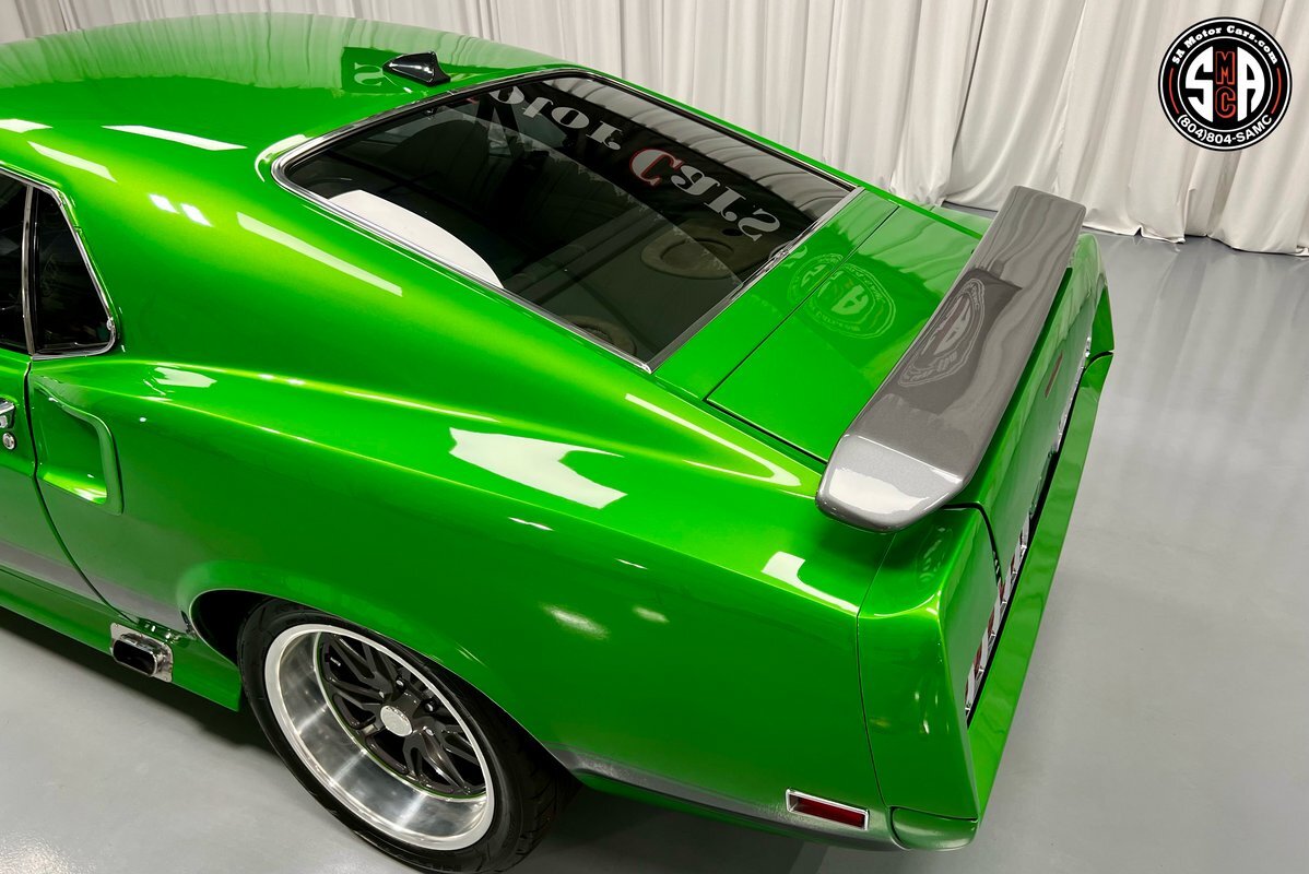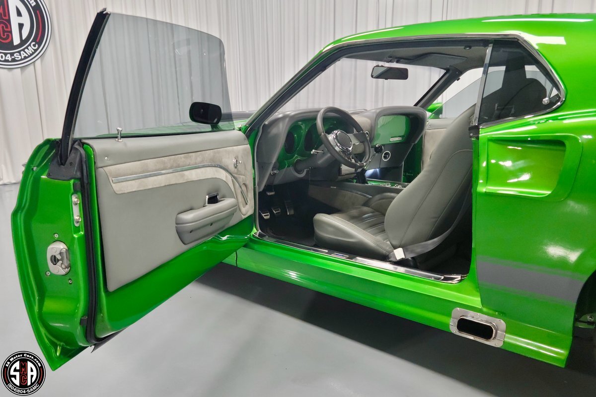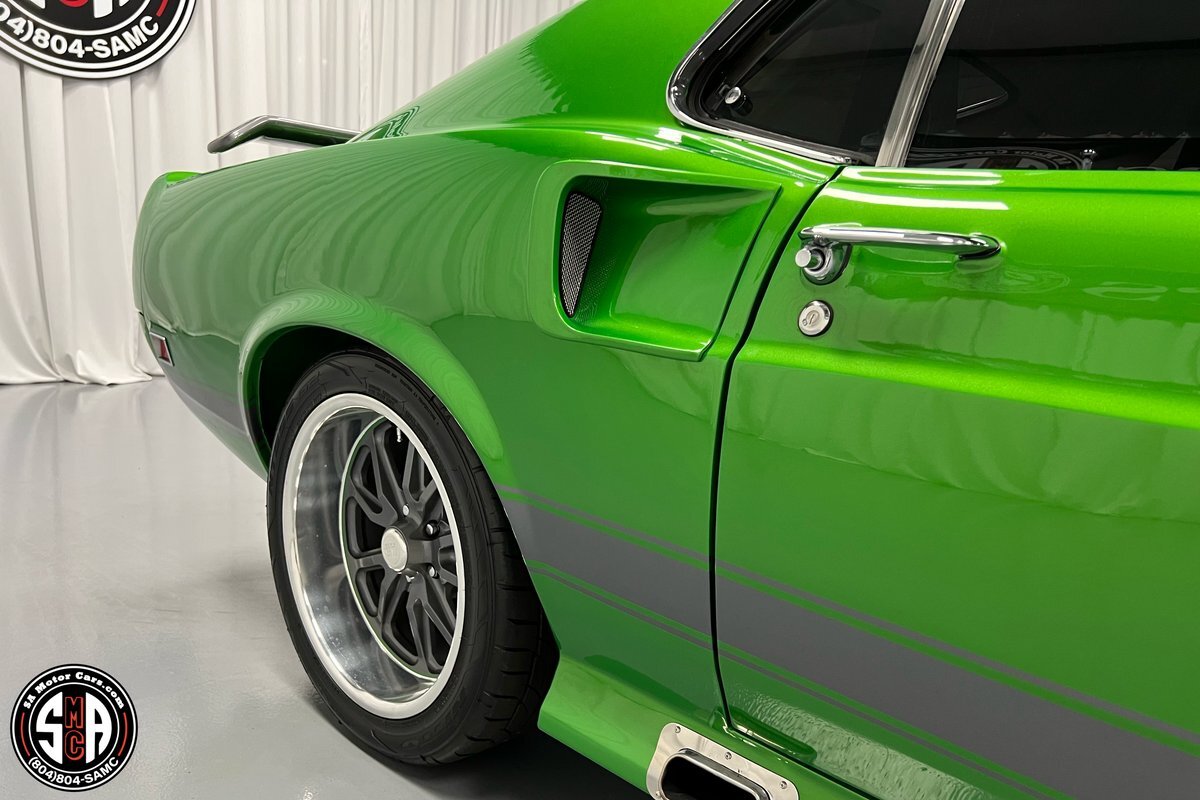 Check out this stunning 1970 Ford Mustang Fastback Restomod! This Mustang has undergone a complete Rotisserie Build and lots of customizations and performance upgrades that have been added! Take a look at these sweeping body lines, Green Exterior Paint with Painted Boss 302 Stripes, Custom Shaker Hood with a Hood Scoop and Hood Pins, Custom Metal Ground Effects, Front and Rear spoilers, Back Up Camera, 18'' U.S. Mags Aluminum Wheels with Polished Lips, LED Halo Headlights, Custom Grille with Front Fog Lights, Shelby Style LED Taillights, Custom 3rd Brake Light, Painted Bumpers with a Tucked and Smoothed Rear bumper, along with the Side-Exit Exhaust Tips! Inside, this Ford is sporting Power Windows, Tilt Steering Column, Custom 4-Spoke Steering Wheel, TMI Front Bucket Seating, Rear Bench Seating, Gray Leather and Suede Upholstery throughout, Gray Carpeting with Embroidered Floor Mats, Dakota Digital Dashboard Gauges, Custom Center Console with Cup Holders with an USB Input, Custom Shifter, Machined Air Vents, Custom Audio System with a Pioneer Bluetooth Capable Head Unit, Rockford Fosgate and Kicker Audio Components, along with a Spare Tire that's located in the Custom Upholstered Trunk!