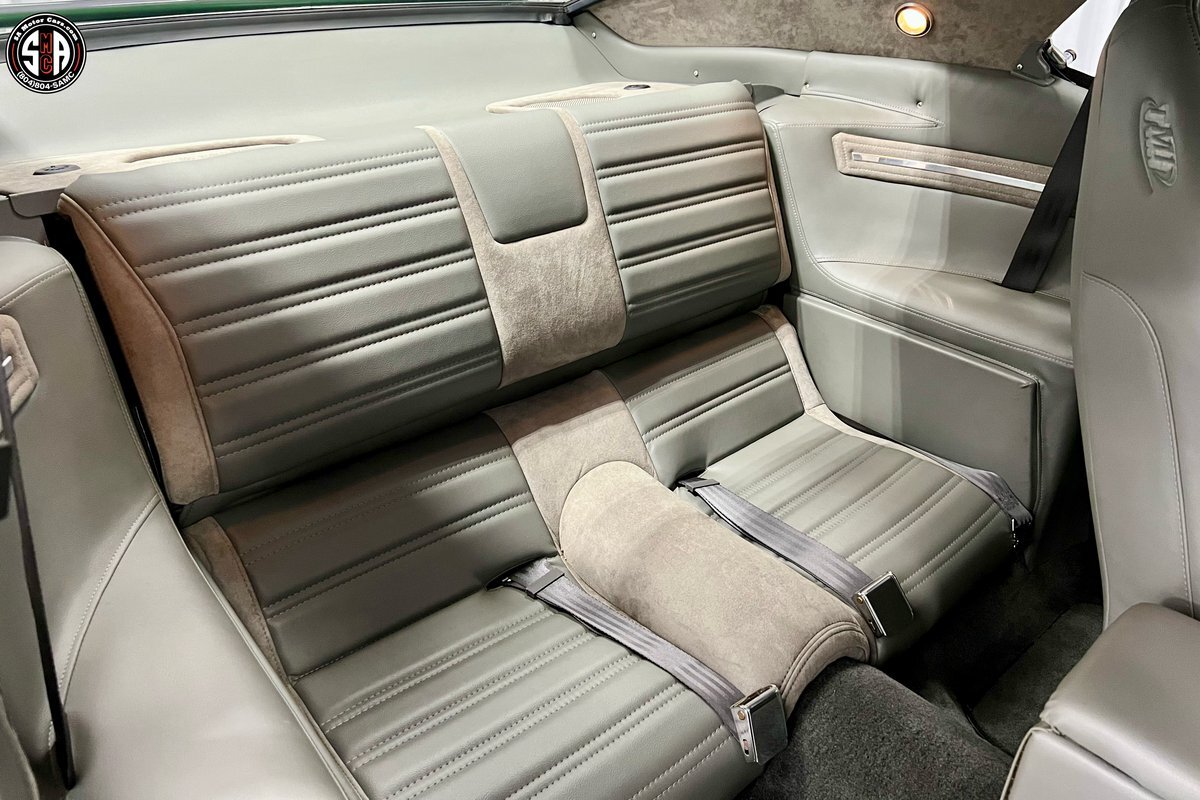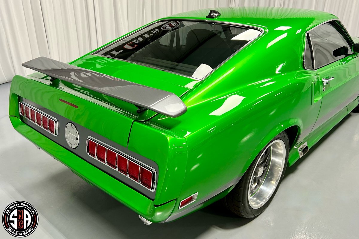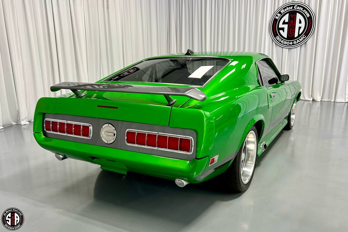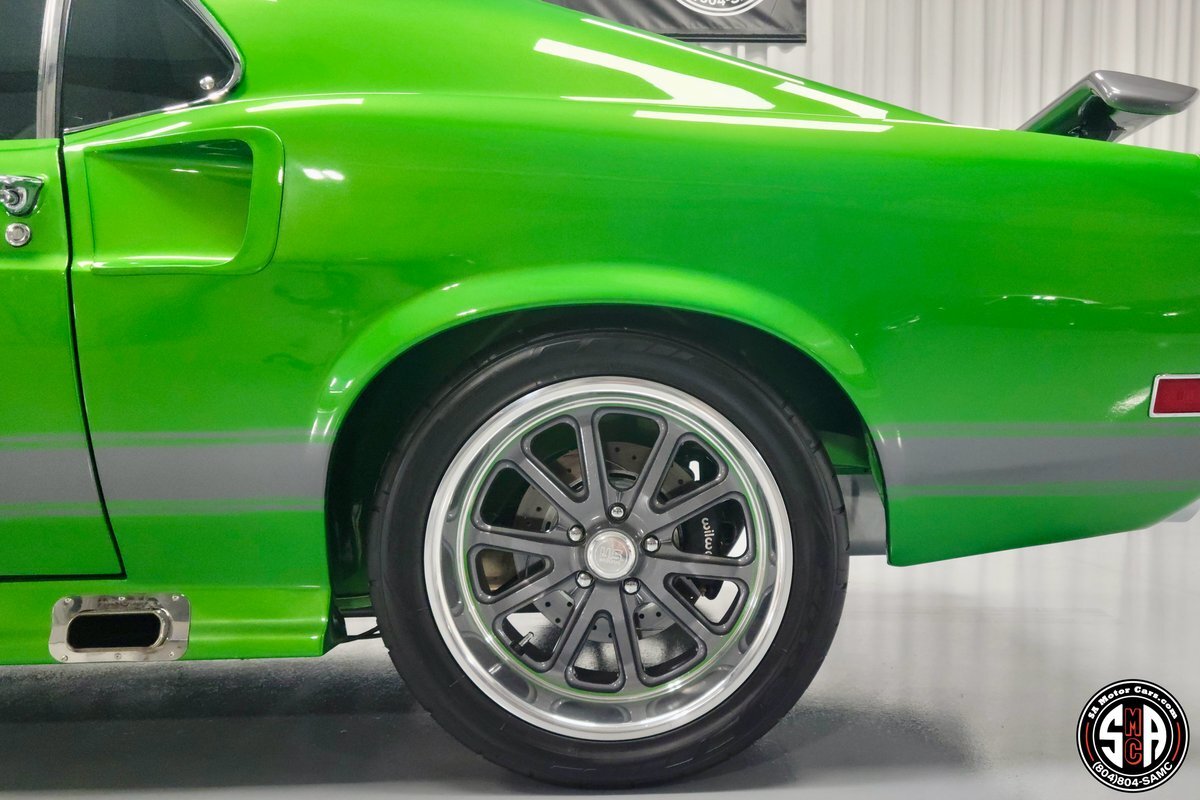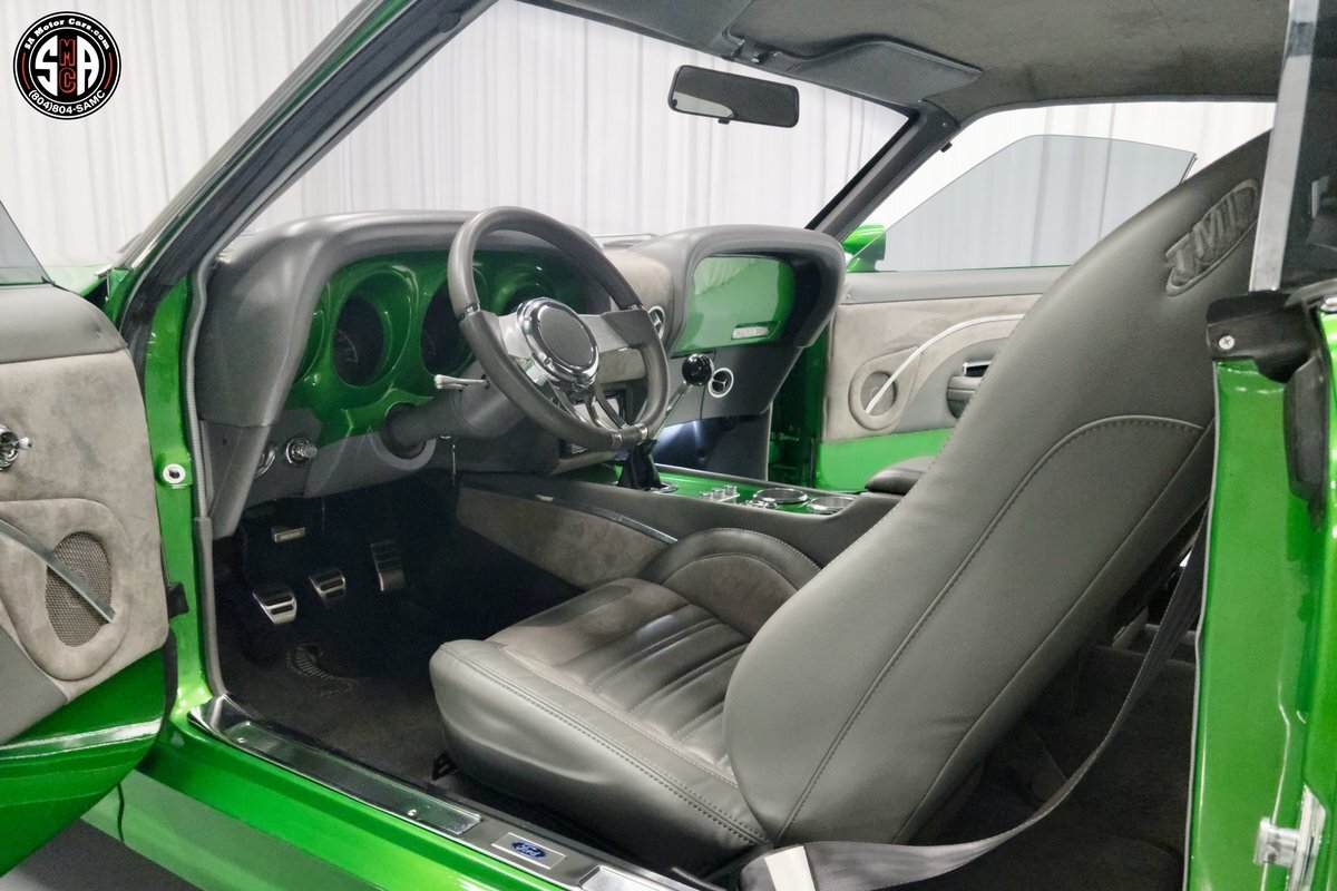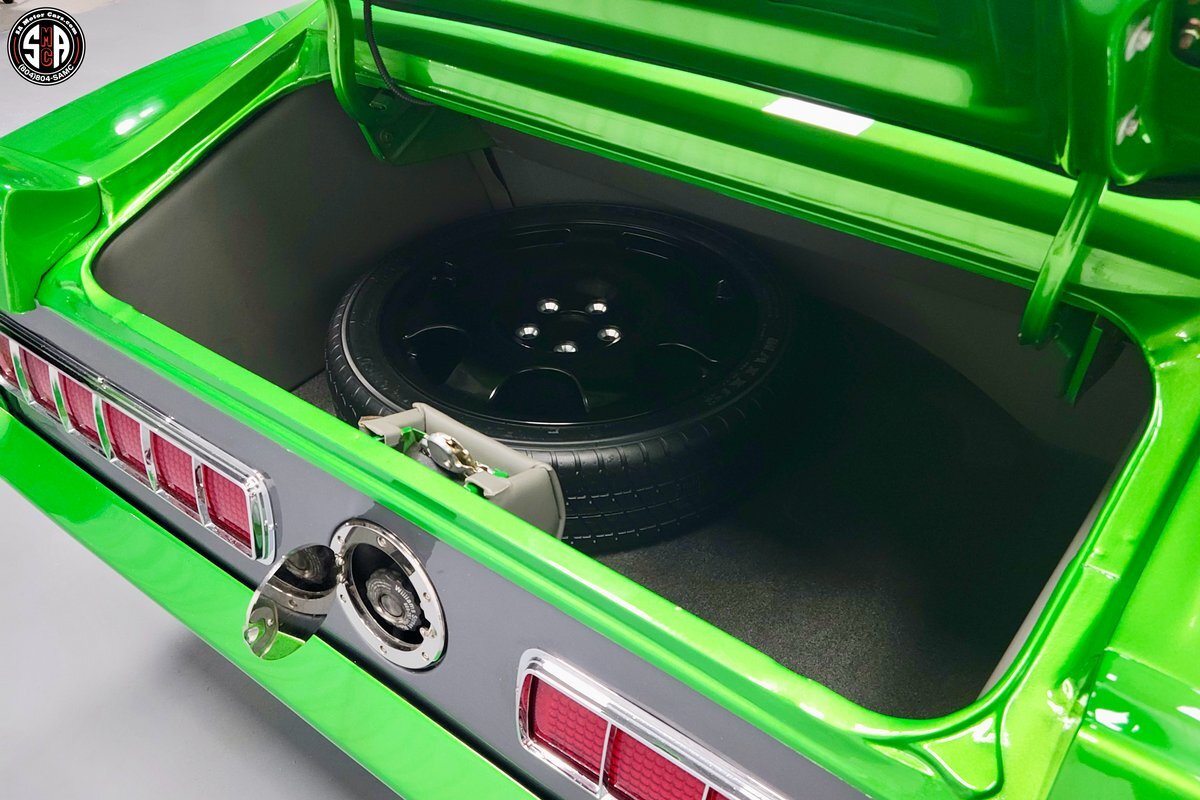 Check out this stunning 1970 Ford Mustang Fastback Restomod! This Mustang has undergone a complete Rotisserie Build and lots of customizations and performance upgrades that have been added! Take a look at these sweeping body lines, Green Exterior Paint with Painted Boss 302 Stripes, Custom Shaker Hood with a Hood Scoop and Hood Pins, Custom Metal Ground Effects, Front and Rear spoilers, Back Up Camera, 18'' U.S. Mags Aluminum Wheels with Polished Lips, LED Halo Headlights, Custom Grille with Front Fog Lights, Shelby Style LED Taillights, Custom 3rd Brake Light, Painted Bumpers with a Tucked and Smoothed Rear bumper, along with the Side-Exit Exhaust Tips! Inside, this Ford is sporting Power Windows, Tilt Steering Column, Custom 4-Spoke Steering Wheel, TMI Front Bucket Seating, Rear Bench Seating, Gray Leather and Suede Upholstery throughout, Gray Carpeting with Embroidered Floor Mats, Dakota Digital Dashboard Gauges, Custom Center Console with Cup Holders with an USB Input, Custom Shifter, Machined Air Vents, Custom Audio System with a Pioneer Bluetooth Capable Head Unit, Rockford Fosgate and Kicker Audio Components, along with a Spare Tire that's located in the Custom Upholstered Trunk!