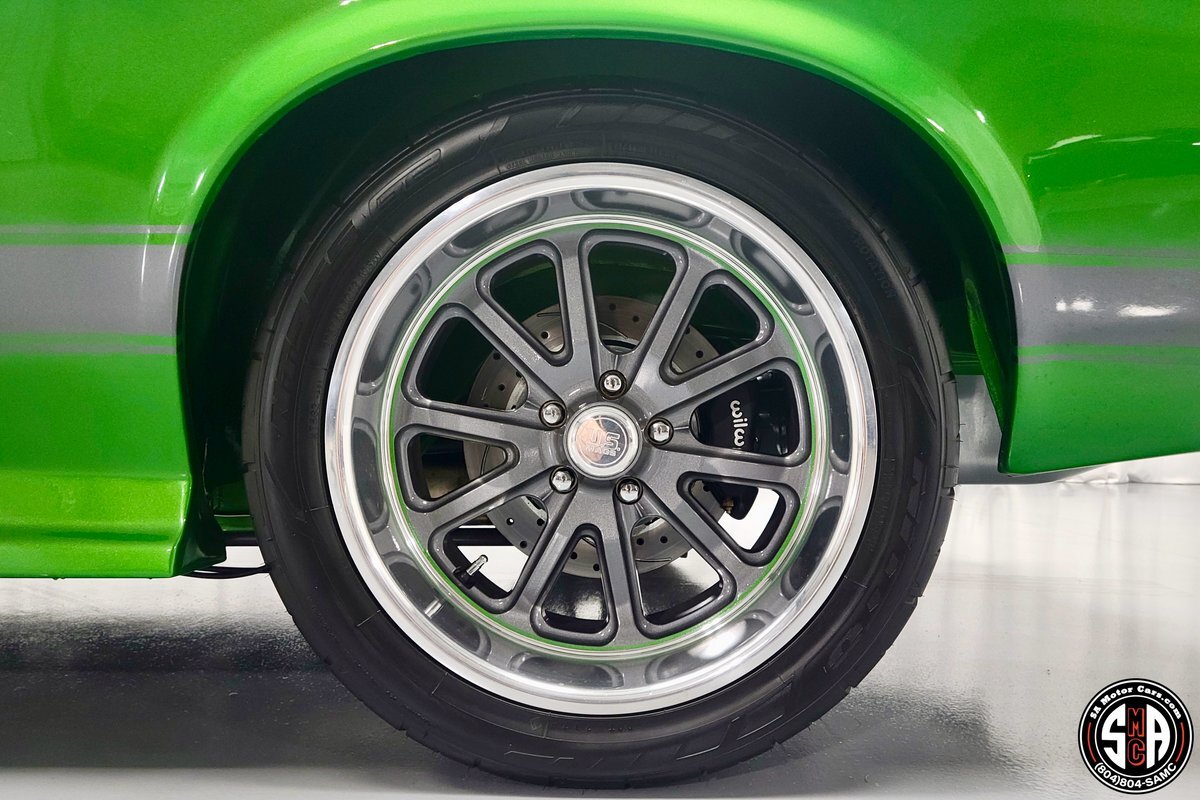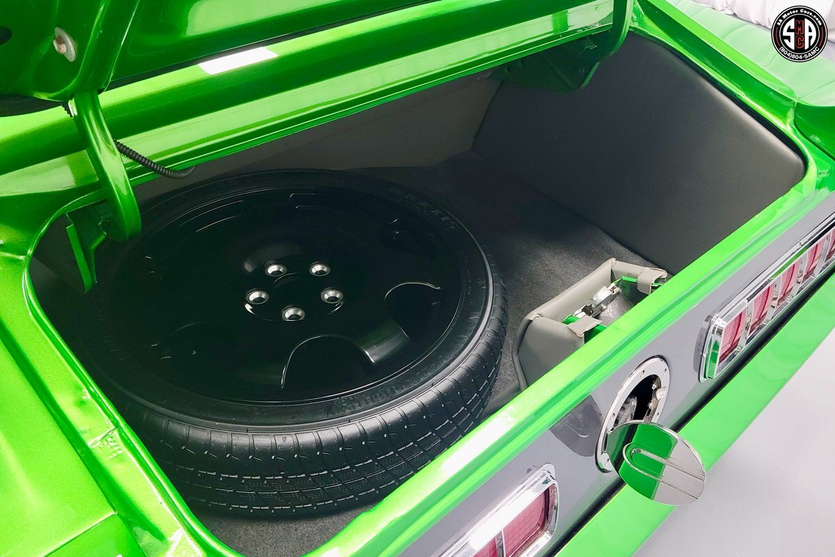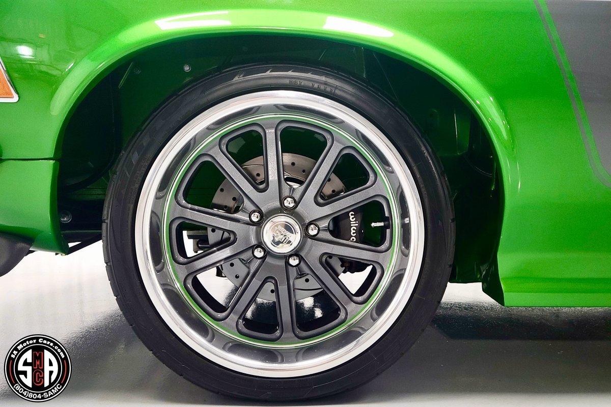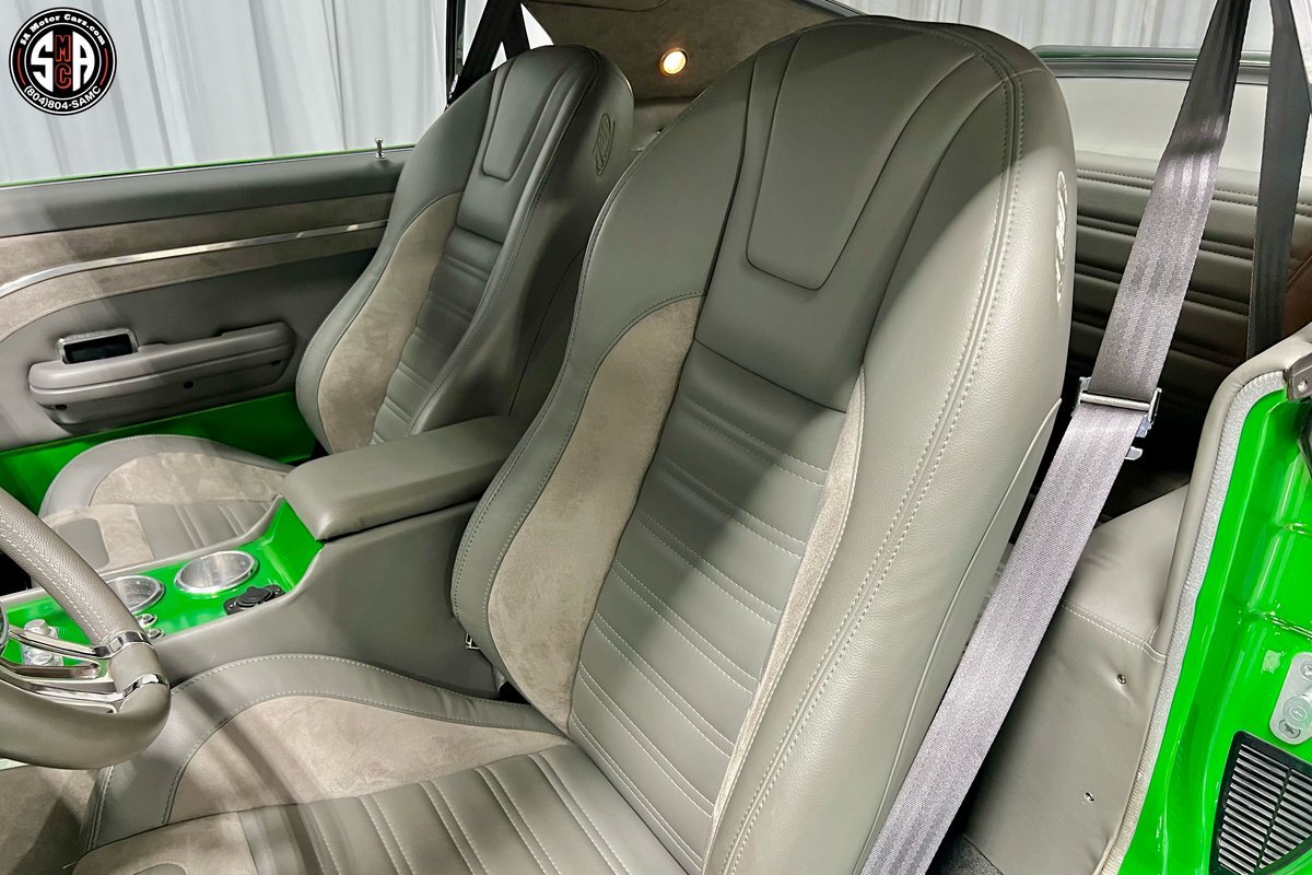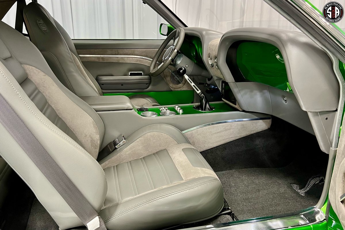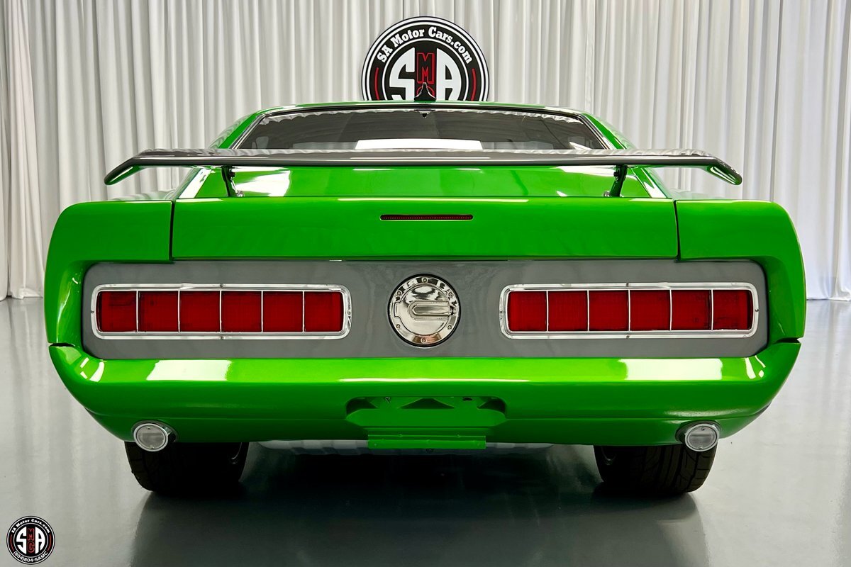 Check out this stunning 1970 Ford Mustang Fastback Restomod! This Mustang has undergone a complete Rotisserie Build and lots of customizations and performance upgrades that have been added! Take a look at these sweeping body lines, Green Exterior Paint with Painted Boss 302 Stripes, Custom Shaker Hood with a Hood Scoop and Hood Pins, Custom Metal Ground Effects, Front and Rear spoilers, Back Up Camera, 18'' U.S. Mags Aluminum Wheels with Polished Lips, LED Halo Headlights, Custom Grille with Front Fog Lights, Shelby Style LED Taillights, Custom 3rd Brake Light, Painted Bumpers with a Tucked and Smoothed Rear bumper, along with the Side-Exit Exhaust Tips! Inside, this Ford is sporting Power Windows, Tilt Steering Column, Custom 4-Spoke Steering Wheel, TMI Front Bucket Seating, Rear Bench Seating, Gray Leather and Suede Upholstery throughout, Gray Carpeting with Embroidered Floor Mats, Dakota Digital Dashboard Gauges, Custom Center Console with Cup Holders with an USB Input, Custom Shifter, Machined Air Vents, Custom Audio System with a Pioneer Bluetooth Capable Head Unit, Rockford Fosgate and Kicker Audio Components, along with a Spare Tire that's located in the Custom Upholstered Trunk!