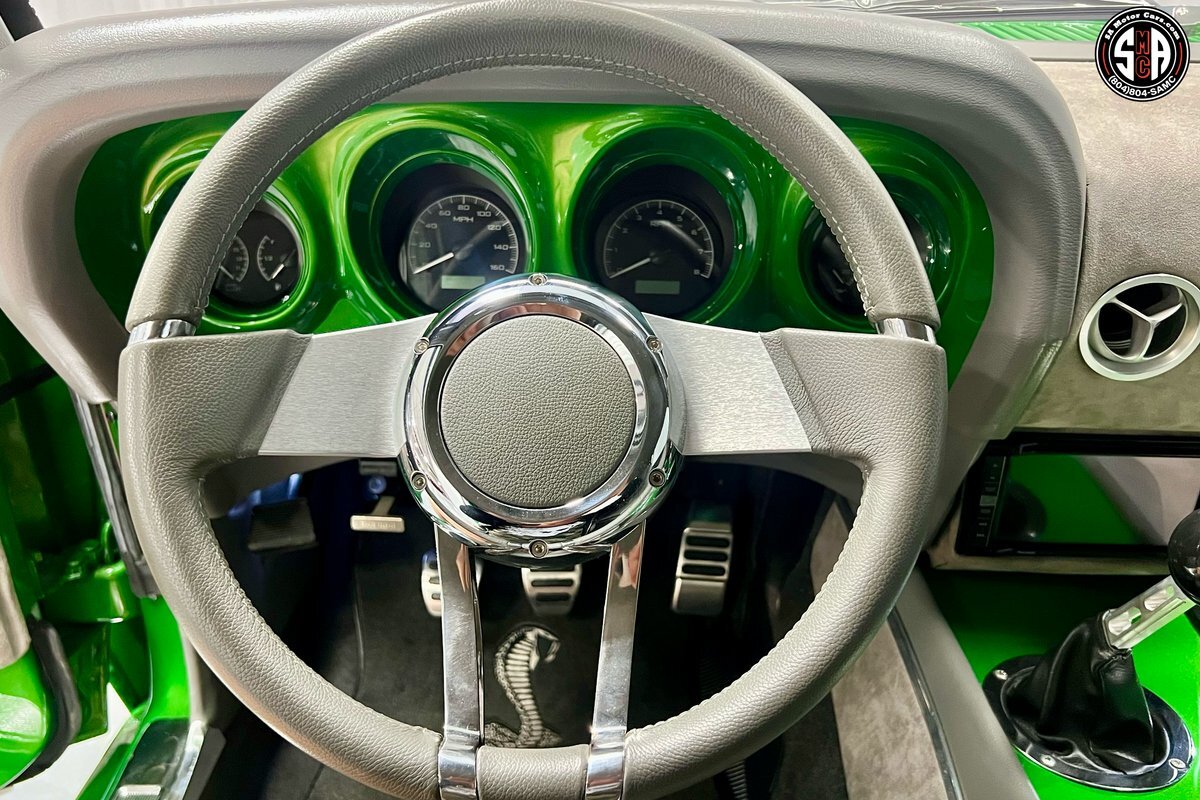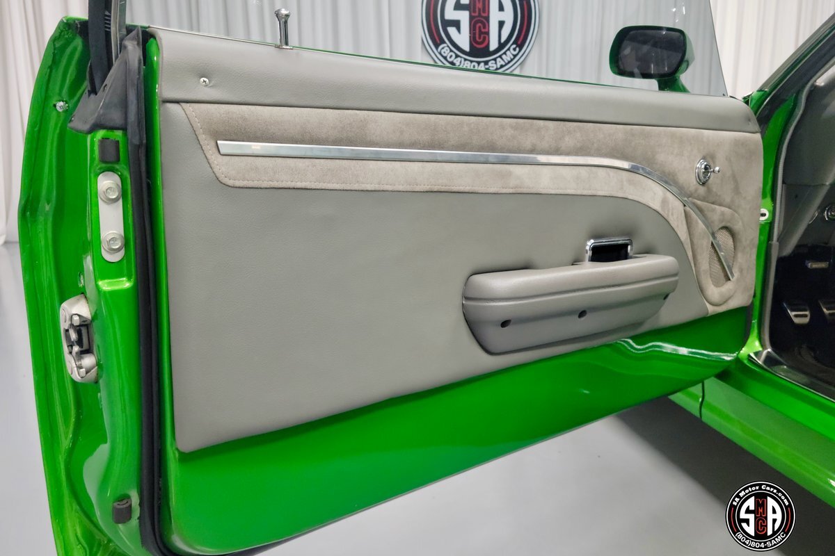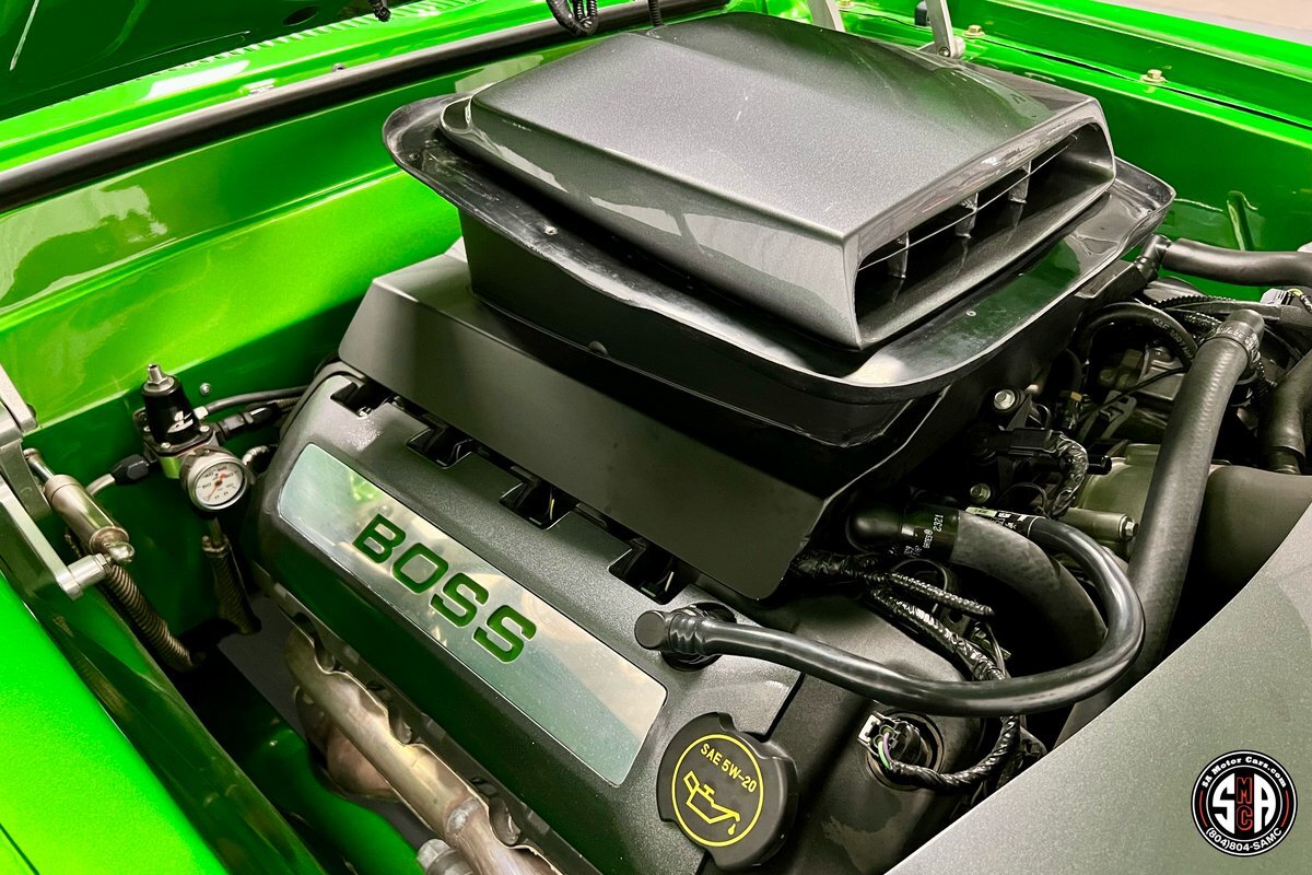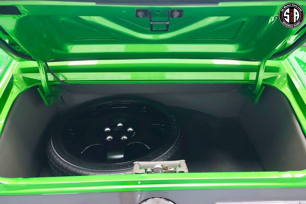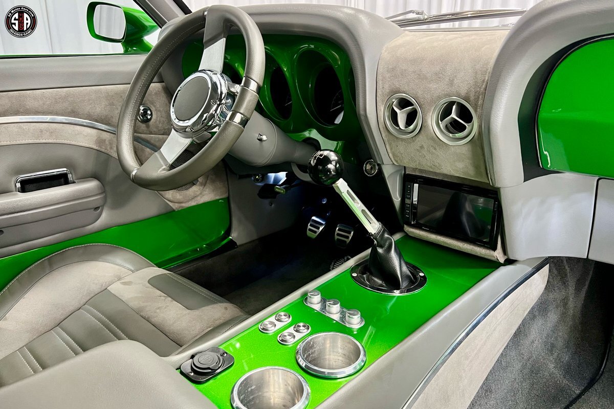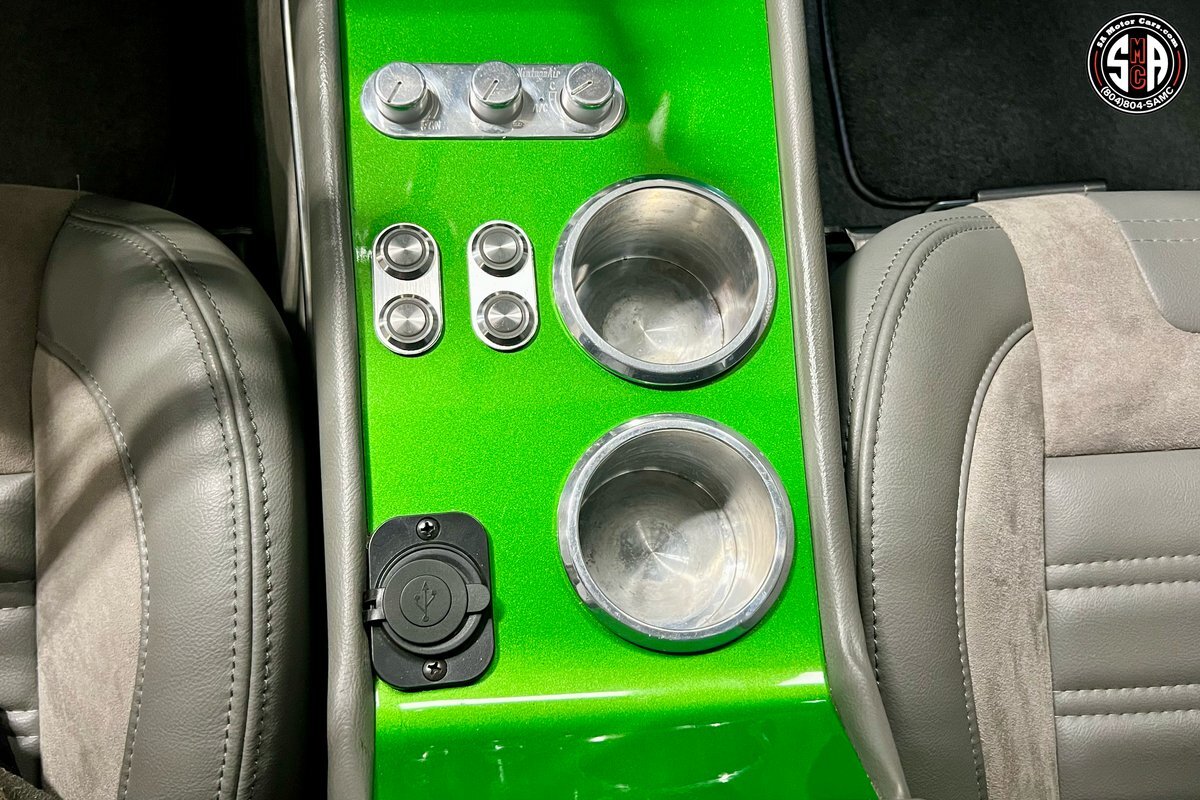 Check out this stunning 1970 Ford Mustang Fastback Restomod! This Mustang has undergone a complete Rotisserie Build and lots of customizations and performance upgrades that have been added! Take a look at these sweeping body lines, Green Exterior Paint with Painted Boss 302 Stripes, Custom Shaker Hood with a Hood Scoop and Hood Pins, Custom Metal Ground Effects, Front and Rear spoilers, Back Up Camera, 18'' U.S. Mags Aluminum Wheels with Polished Lips, LED Halo Headlights, Custom Grille with Front Fog Lights, Shelby Style LED Taillights, Custom 3rd Brake Light, Painted Bumpers with a Tucked and Smoothed Rear bumper, along with the Side-Exit Exhaust Tips! Inside, this Ford is sporting Power Windows, Tilt Steering Column, Custom 4-Spoke Steering Wheel, TMI Front Bucket Seating, Rear Bench Seating, Gray Leather and Suede Upholstery throughout, Gray Carpeting with Embroidered Floor Mats, Dakota Digital Dashboard Gauges, Custom Center Console with Cup Holders with an USB Input, Custom Shifter, Machined Air Vents, Custom Audio System with a Pioneer Bluetooth Capable Head Unit, Rockford Fosgate and Kicker Audio Components, along with a Spare Tire that's located in the Custom Upholstered Trunk!