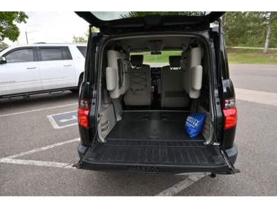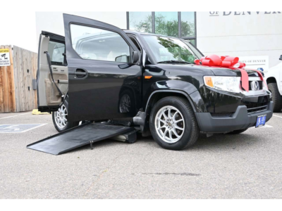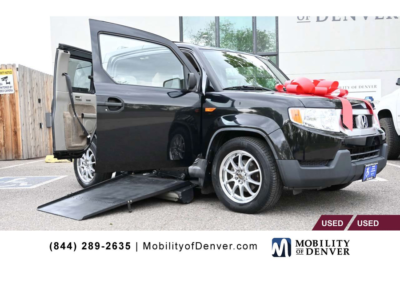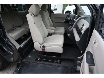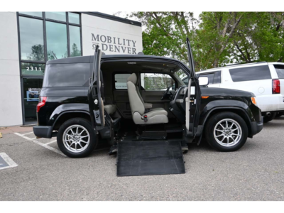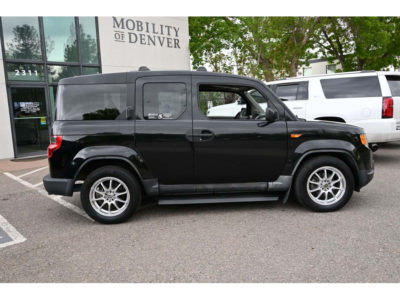 Door Opening Height: 56" and width: 29". 2010 Honda Element EX Freedom Motors xWav Power Side Entry SUV for sale. This unique vehicle converted by Freedom Motors is a driver capable wheelchair accessible SUV. It is well designed and offers an alternative to the traditional minivan conversions. The floor has been lowered and the doors modified so that a side ramp comes out to offer access for a full-sized wheelchair on the Passenger side with removable front seats. This low mileage well maintained SUV features; beautiful black exterior, tan cloth interior, 15in alloy wheels, 60% tire tread life, lowered rubberized floor, power side load, wide bi-fold ramp, L-Channel restraint system rails, manual Q'Straint wheelchair restraint straps, AM/FM/CD player sound system, key-less remote with power windows, locks, and mirrors, rear privacy glass, hot Heat and cold AC, cruise control, quick and efficient 2.4L Honda 4-Cylinder motor with front wheel drive, and much more. This vehicle is currently available for sale at Mobility of Denver, located at: 2311 S Platte River Drive, Denver CO 80223. We don't charge a Dealer Handling Fee and are now your mobility one-stop-shop. Just give us a call as we offer it all: sales, service, parts, and rentals. Open M-F 9am - 6pm. Sat by appt. Call 303-351-7904.