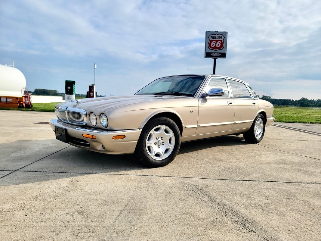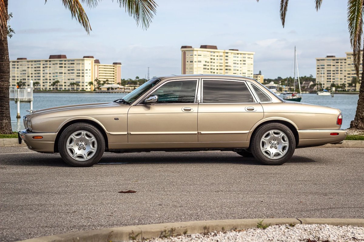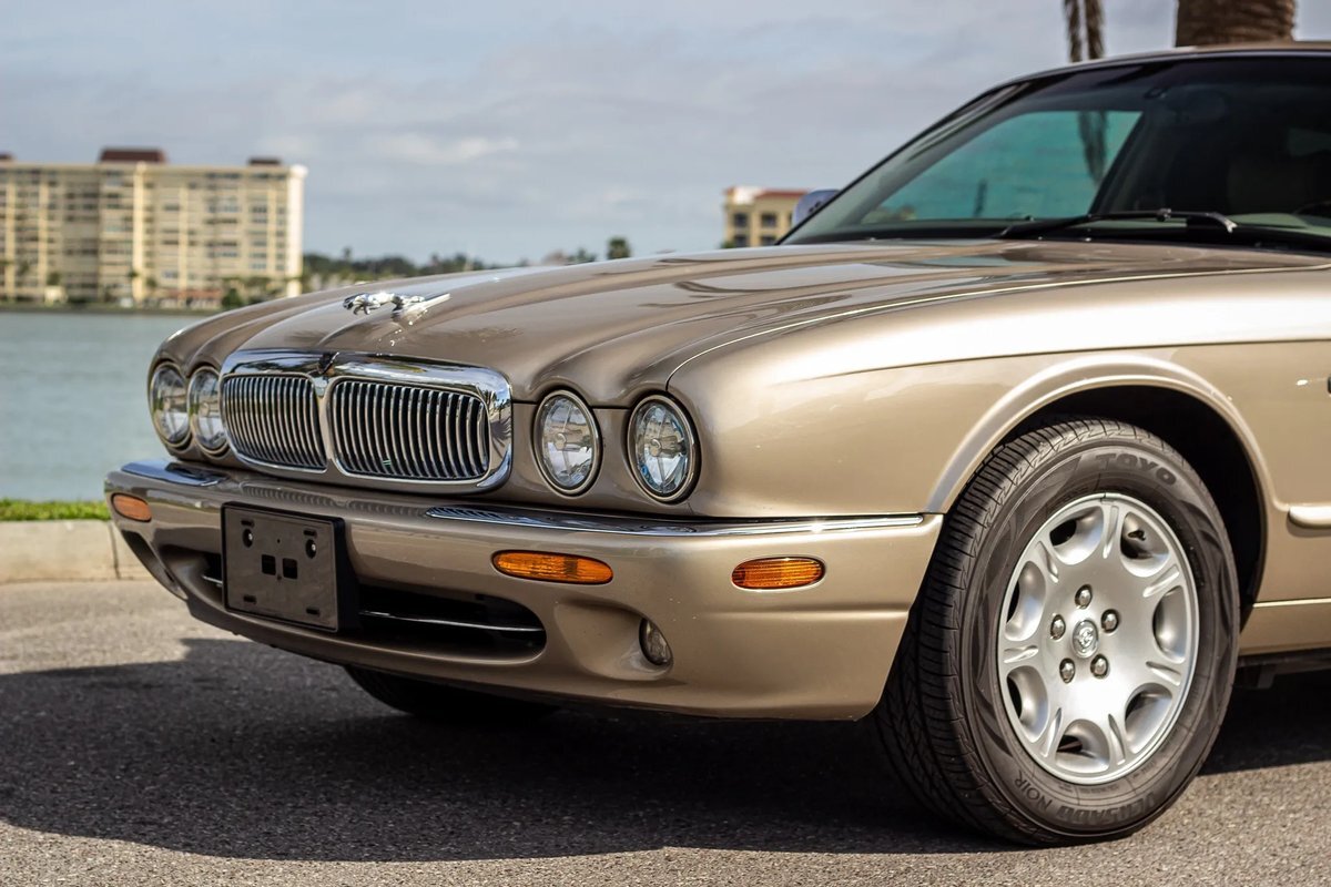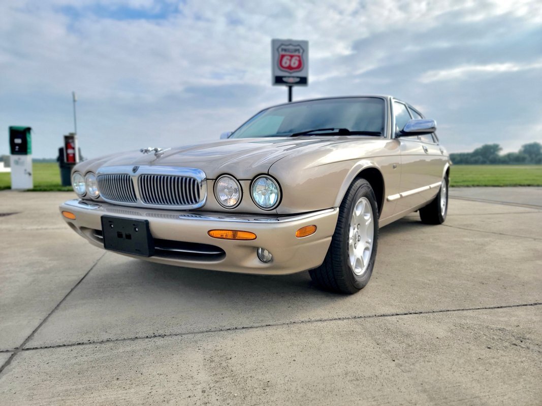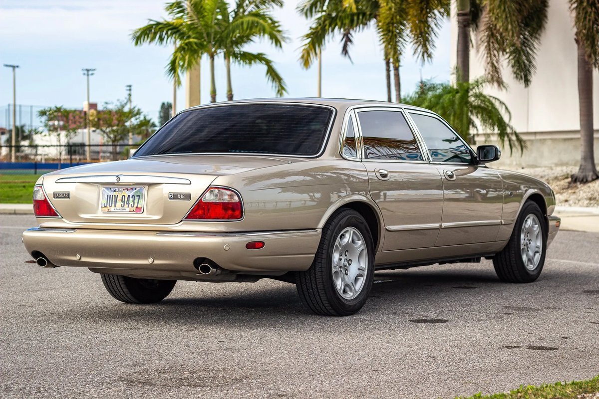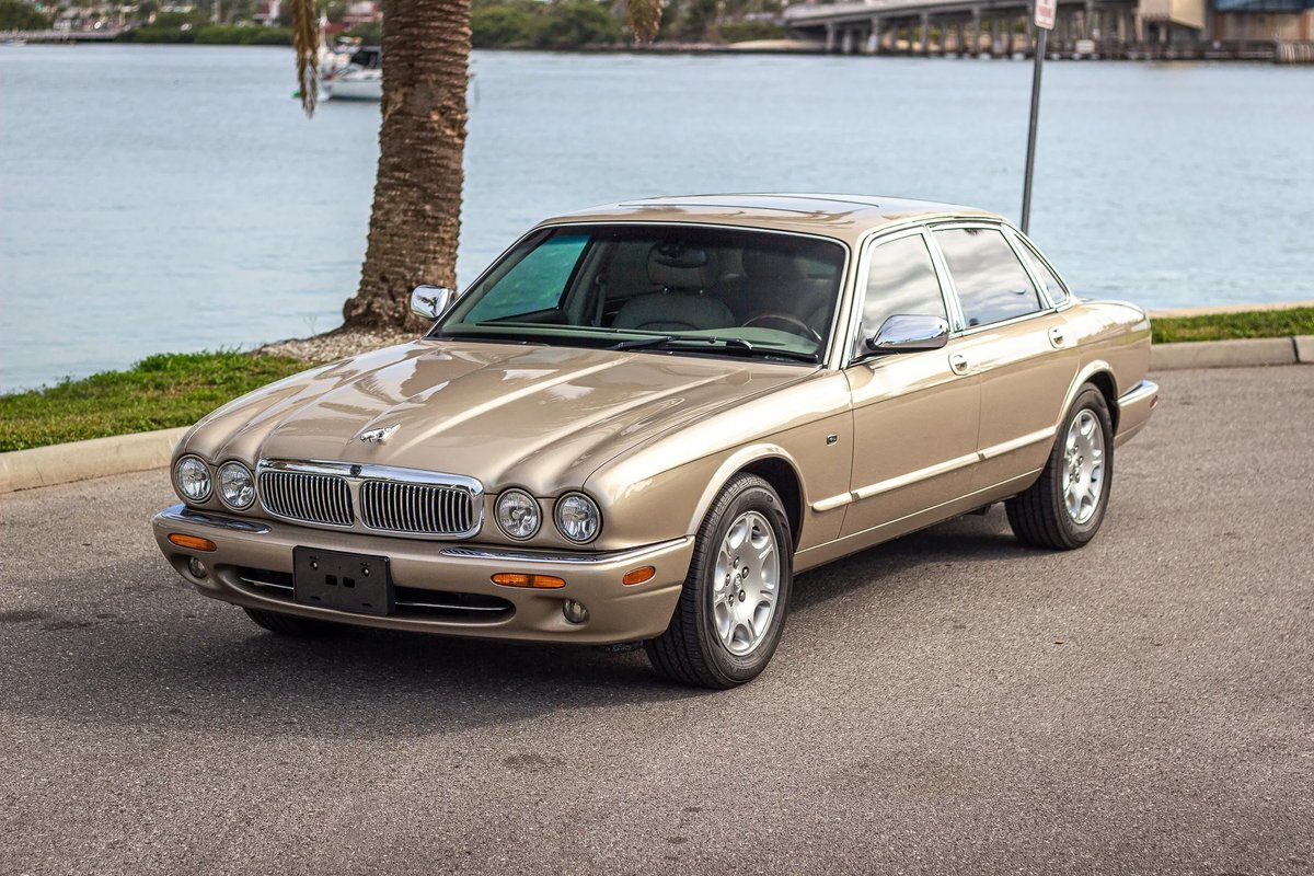 his 2003 Jaguar XJ8 is said to have remained within a single family in California from new until 2022. It is finished in Topaz over Oatmeal leather and is powered by a 4.0-liter V8 paired with a five-speed automatic transmission. Equipment includes a power-operated sunroof, heated power-adjustable front seats, automatic climate control, cruise control, rear parking sensors, heated rear seats, and auto-dimming mirrors. This XJ8 has 64k miles and is now offered with two keys with fobs, and a clean Carfax report.