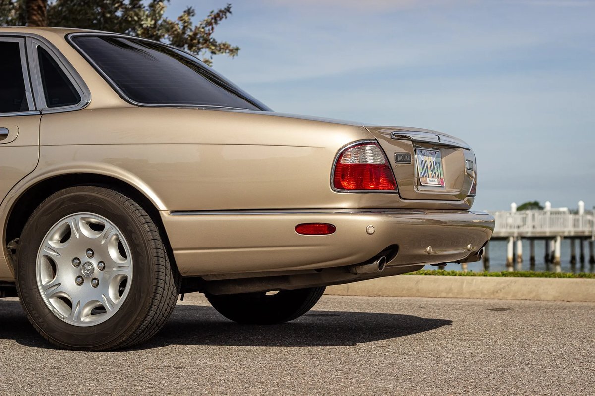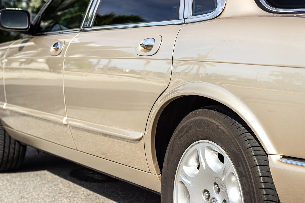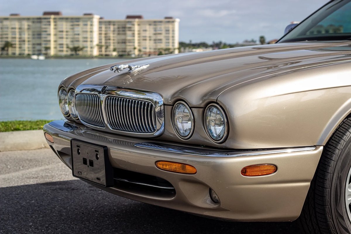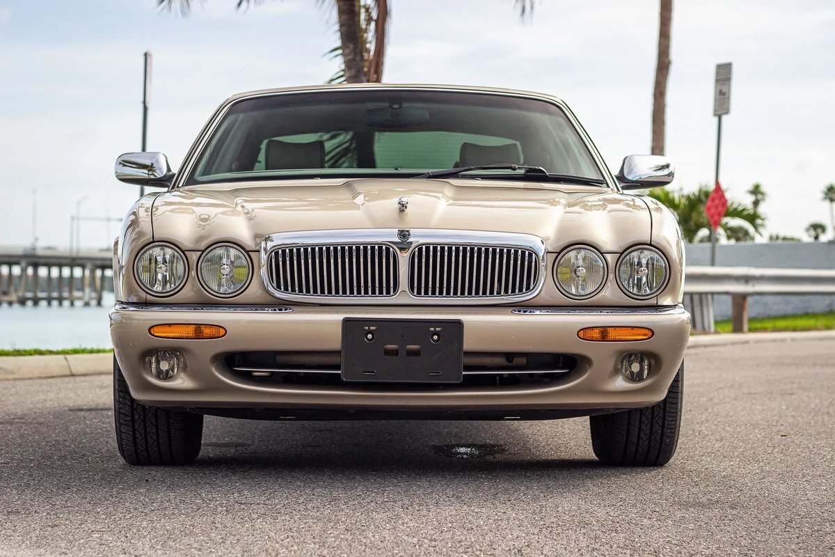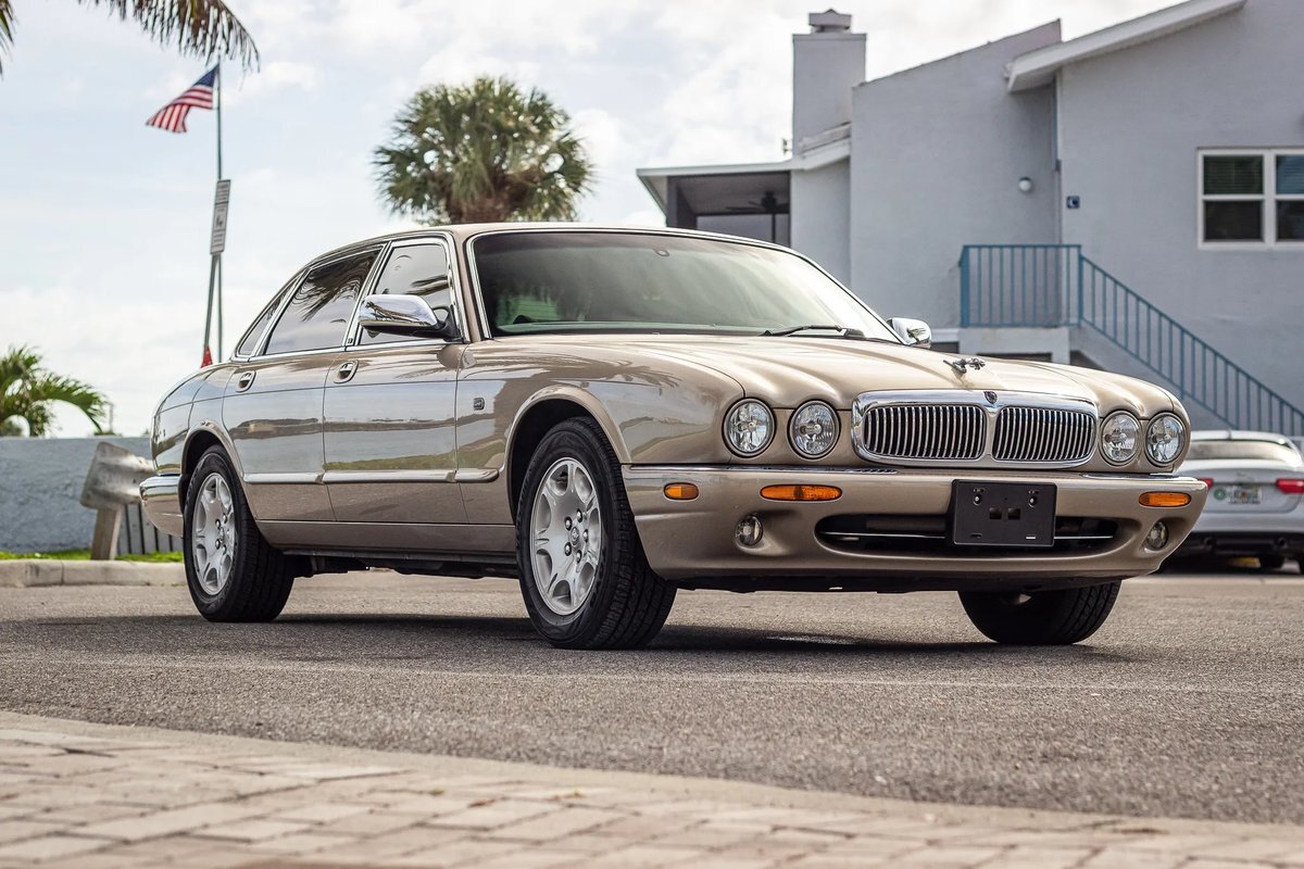 his 2003 Jaguar XJ8 is said to have remained within a single family in California from new until 2022. It is finished in Topaz over Oatmeal leather and is powered by a 4.0-liter V8 paired with a five-speed automatic transmission. Equipment includes a power-operated sunroof, heated power-adjustable front seats, automatic climate control, cruise control, rear parking sensors, heated rear seats, and auto-dimming mirrors. This XJ8 has 64k miles and is now offered with two keys with fobs, and a clean Carfax report.