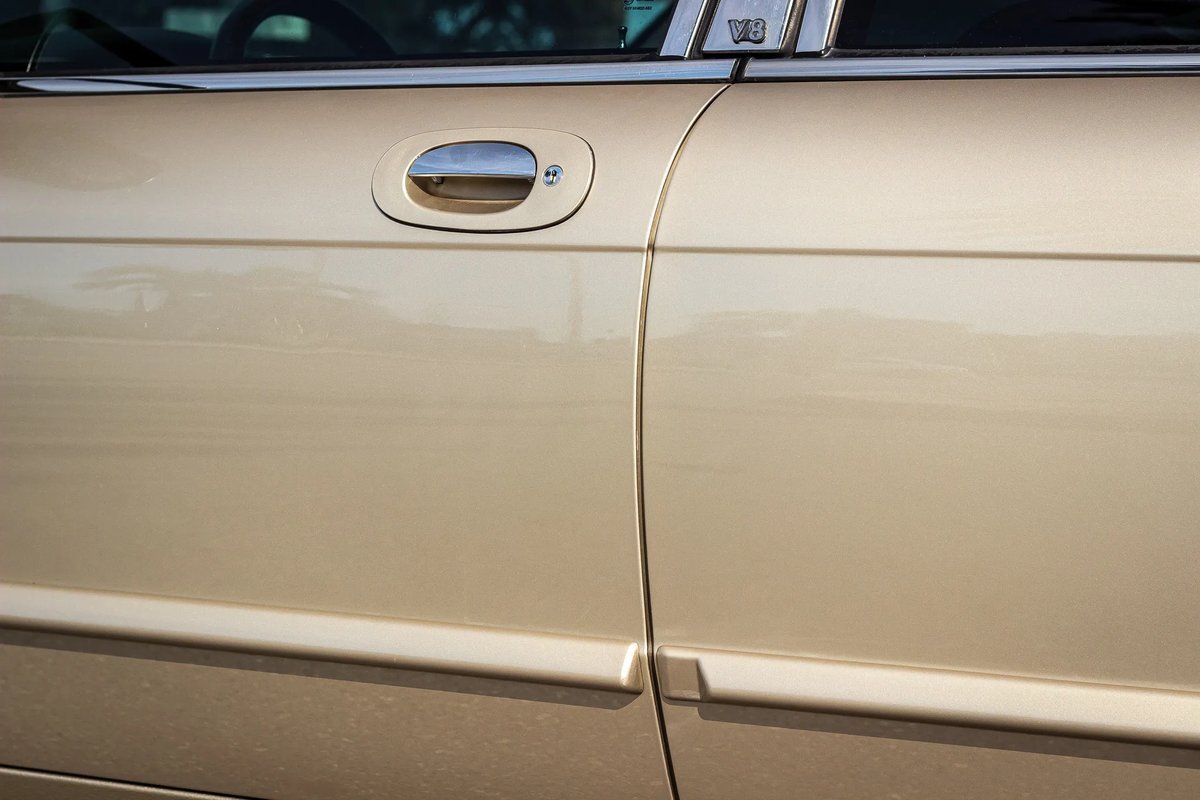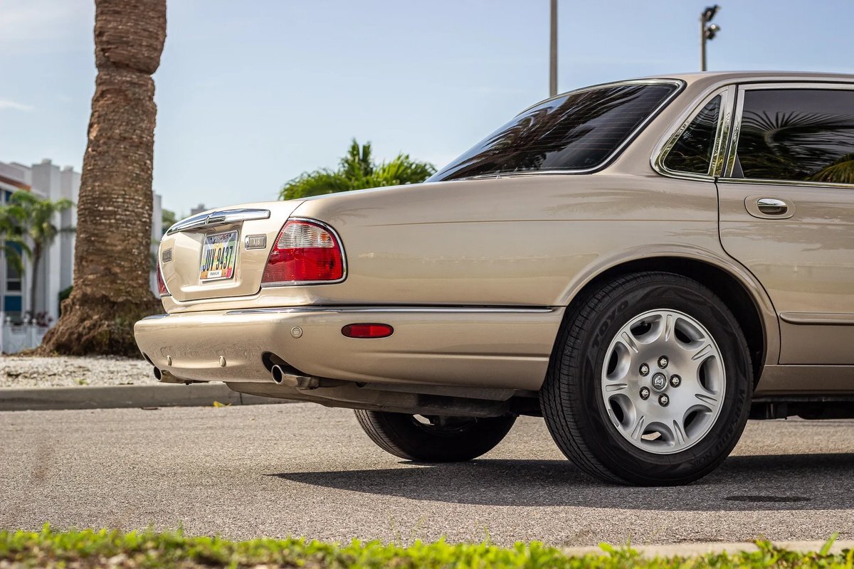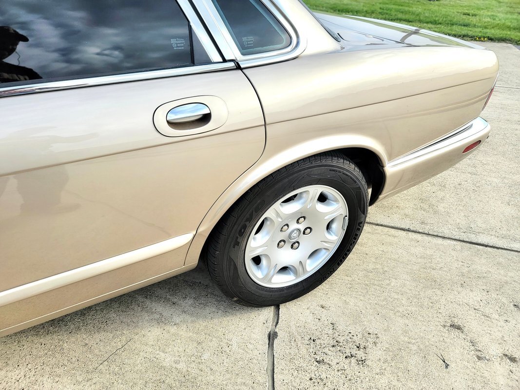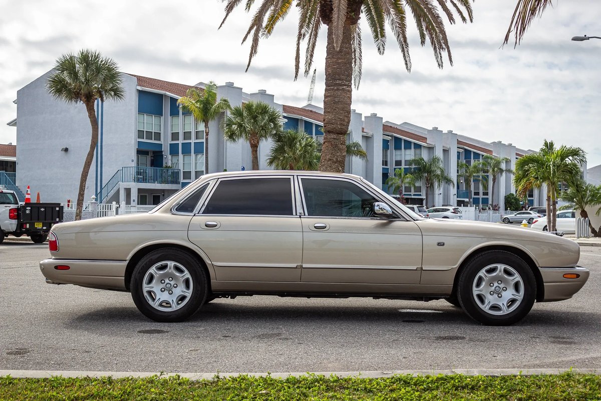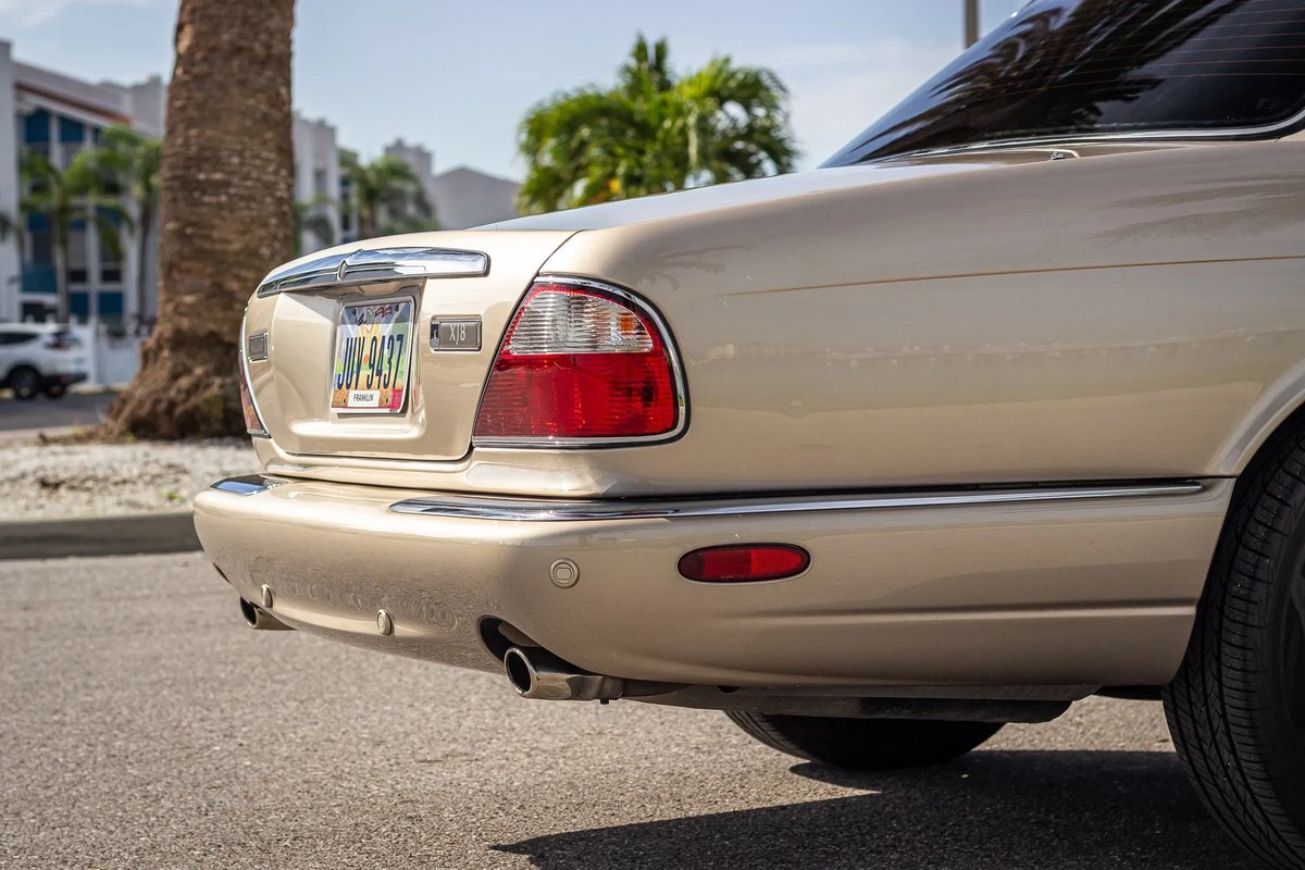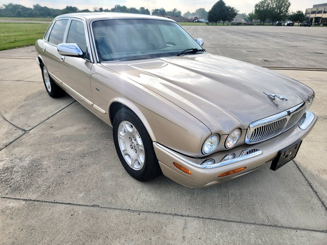 his 2003 Jaguar XJ8 is said to have remained within a single family in California from new until 2022. It is finished in Topaz over Oatmeal leather and is powered by a 4.0-liter V8 paired with a five-speed automatic transmission. Equipment includes a power-operated sunroof, heated power-adjustable front seats, automatic climate control, cruise control, rear parking sensors, heated rear seats, and auto-dimming mirrors. This XJ8 has 64k miles and is now offered with two keys with fobs, and a clean Carfax report.