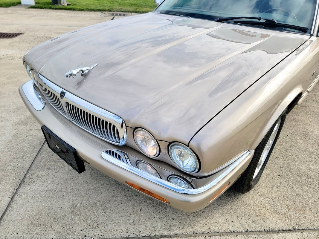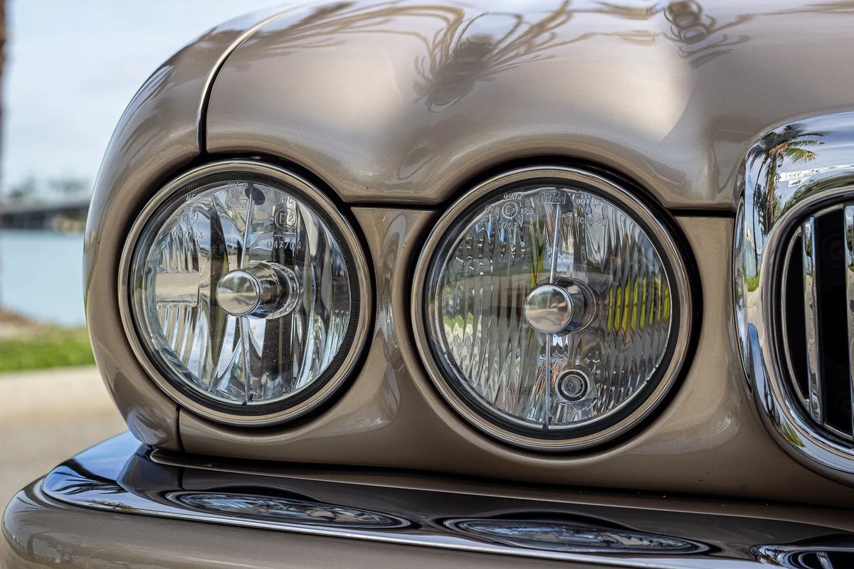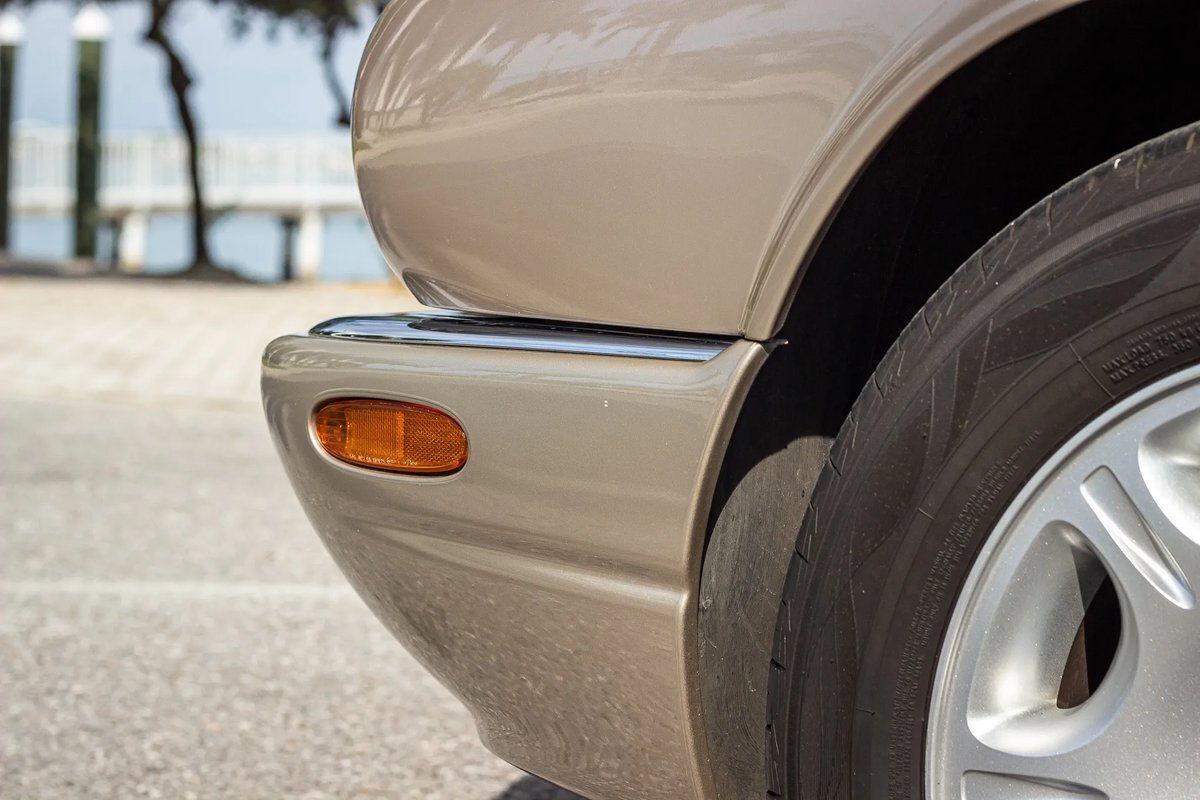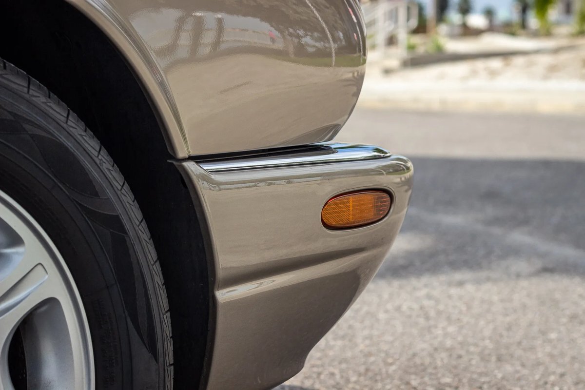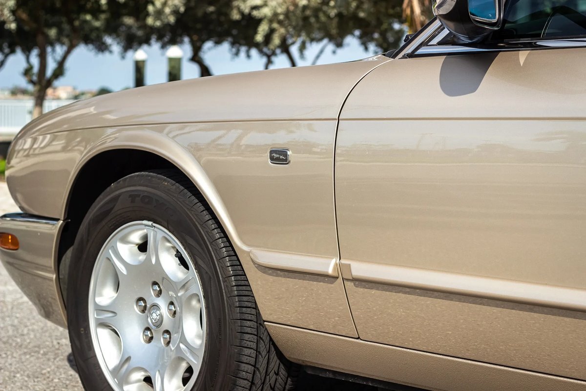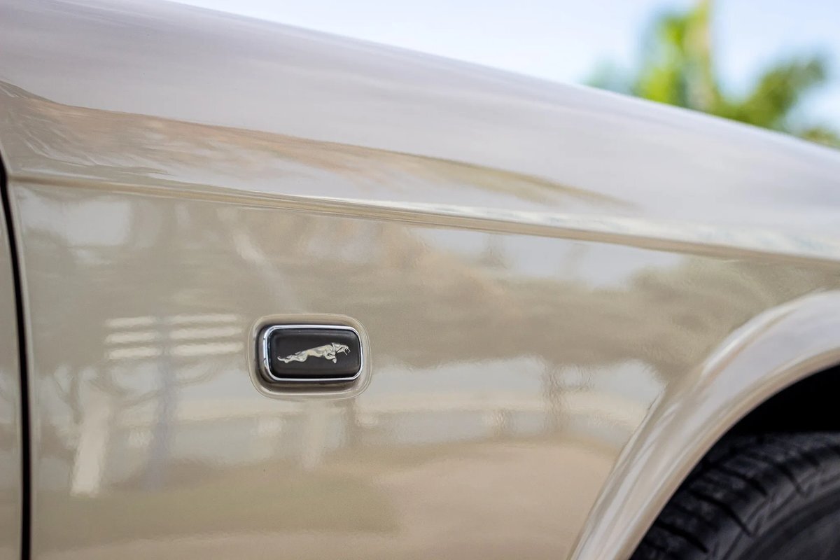 The car is finished in Topaz (SEC) and features bright trim and mirror covers. Additional equipment includes fog lights, a Leaper hood ornament, a power-operated sunroof, and dual exhaust outlets. The antenna broke off but is included in the sale.