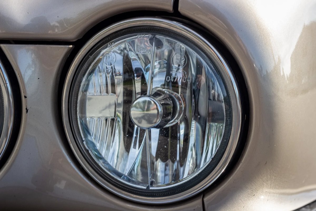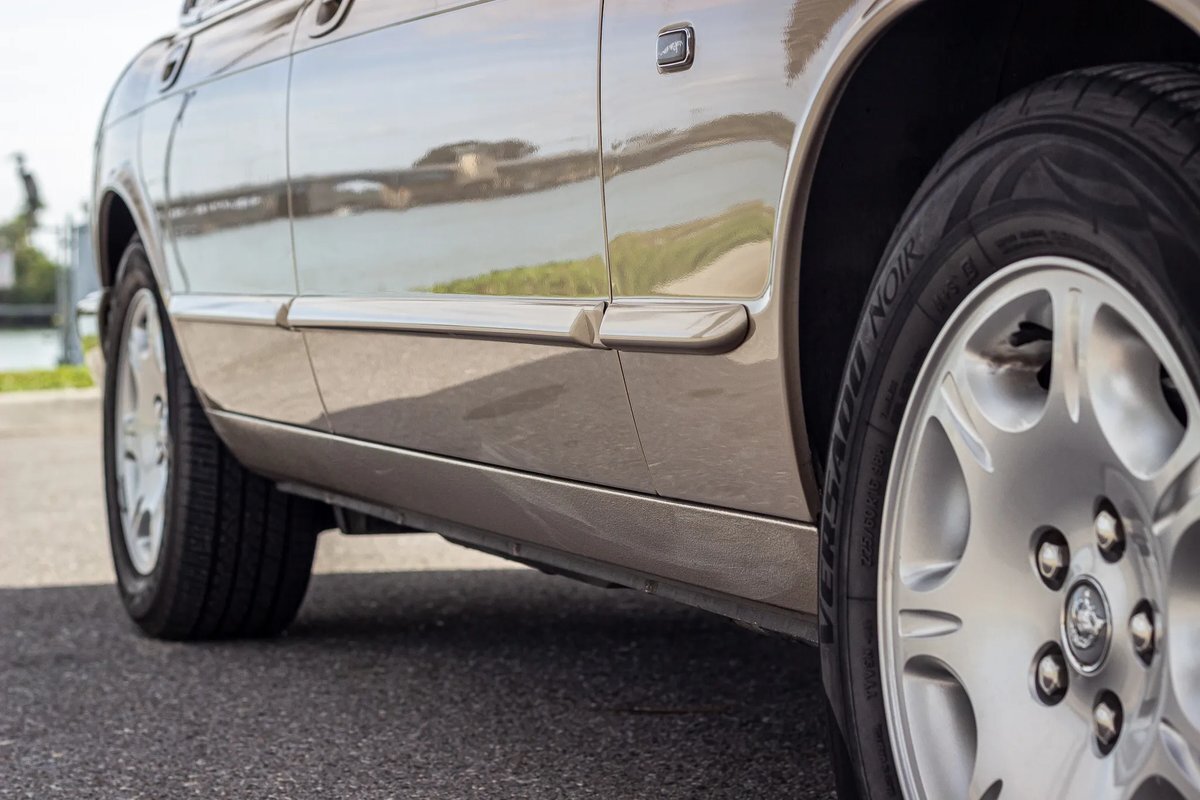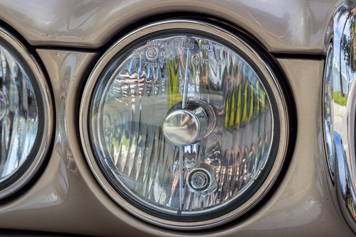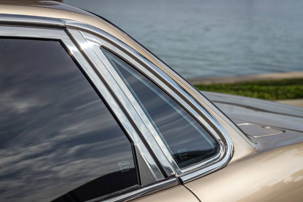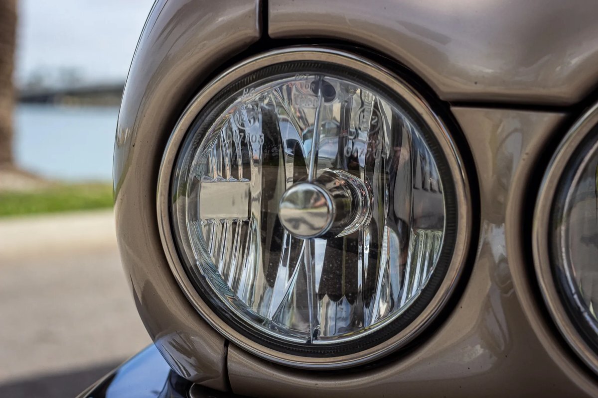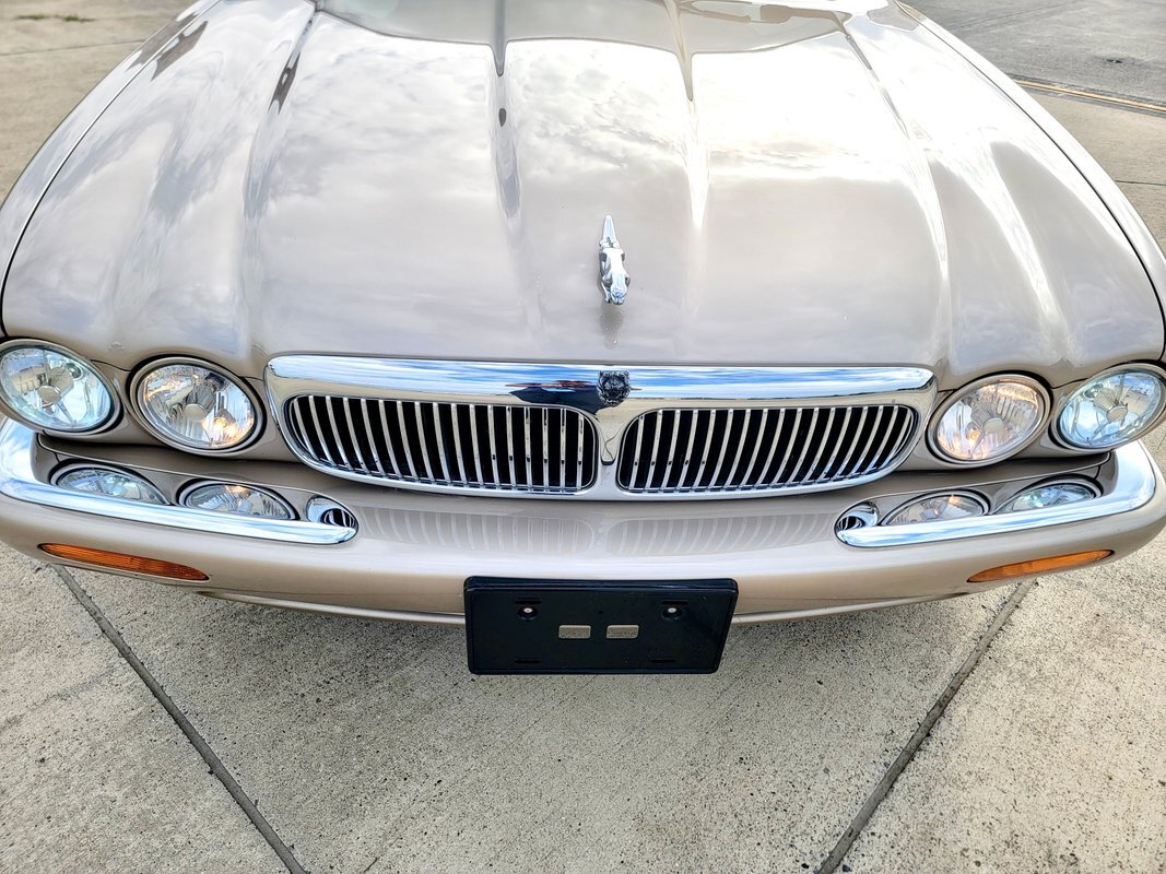 The car is finished in Topaz (SEC) and features bright trim and mirror covers. Additional equipment includes fog lights, a Leaper hood ornament, a power-operated sunroof, and dual exhaust outlets. The antenna broke off but is included in the sale.