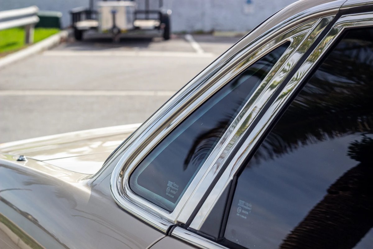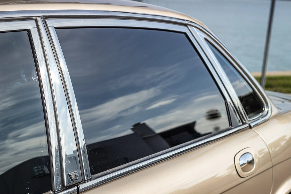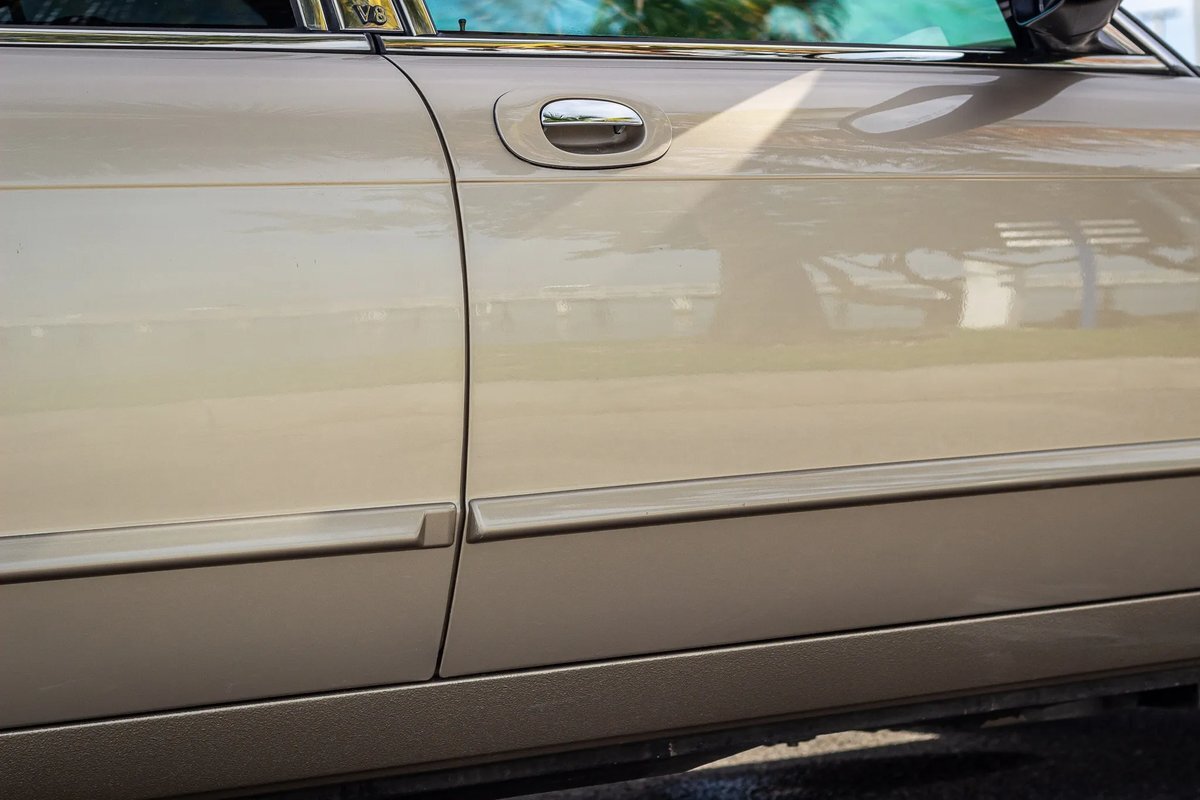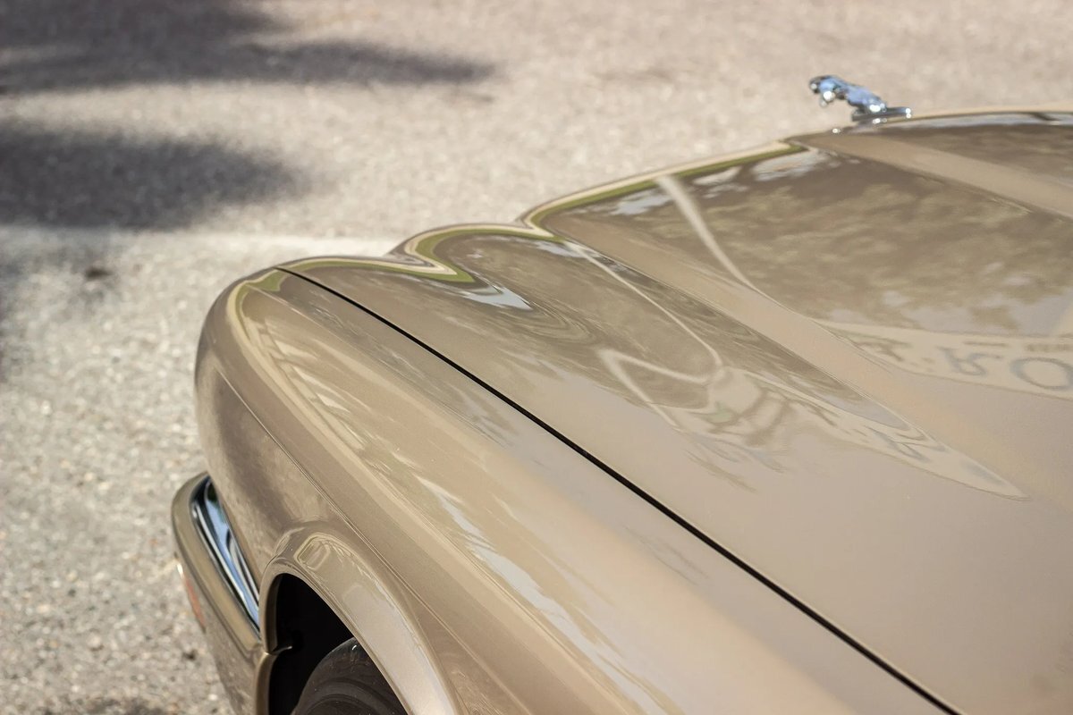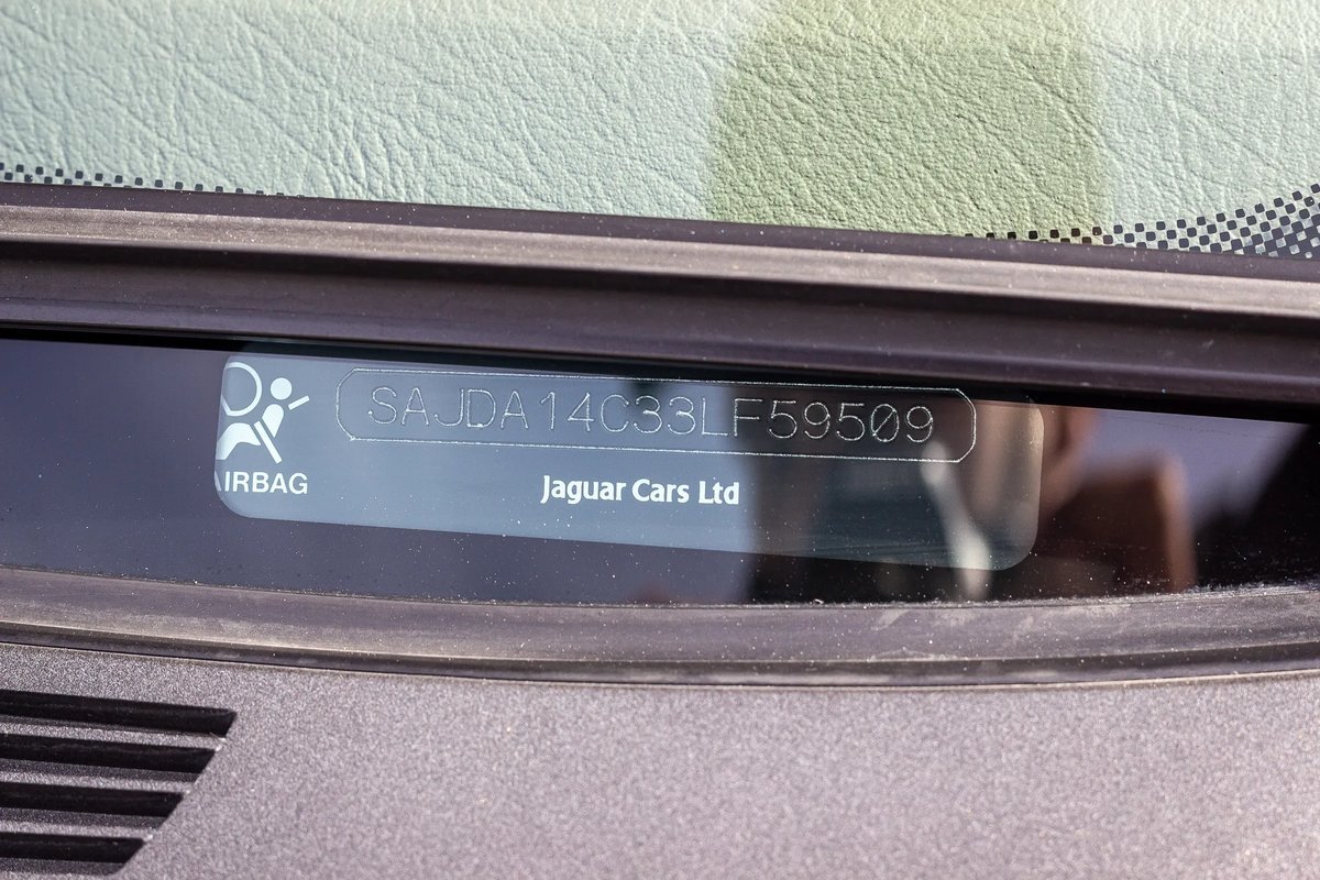 The car is finished in Topaz (SEC) and features bright trim and mirror covers. Additional equipment includes fog lights, a Leaper hood ornament, a power-operated sunroof, and dual exhaust outlets. The antenna broke off but is included in the sale.