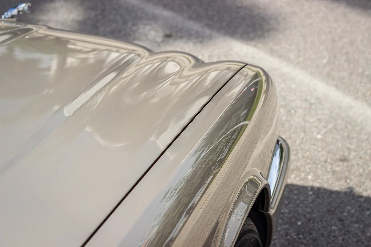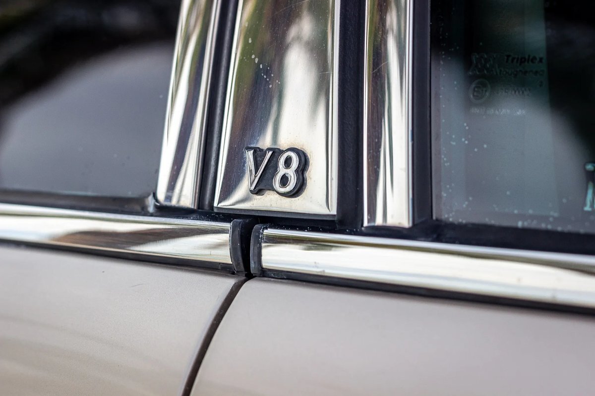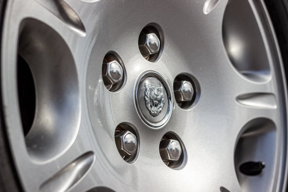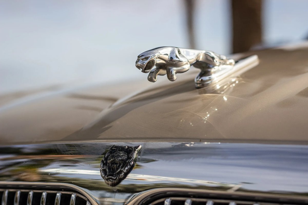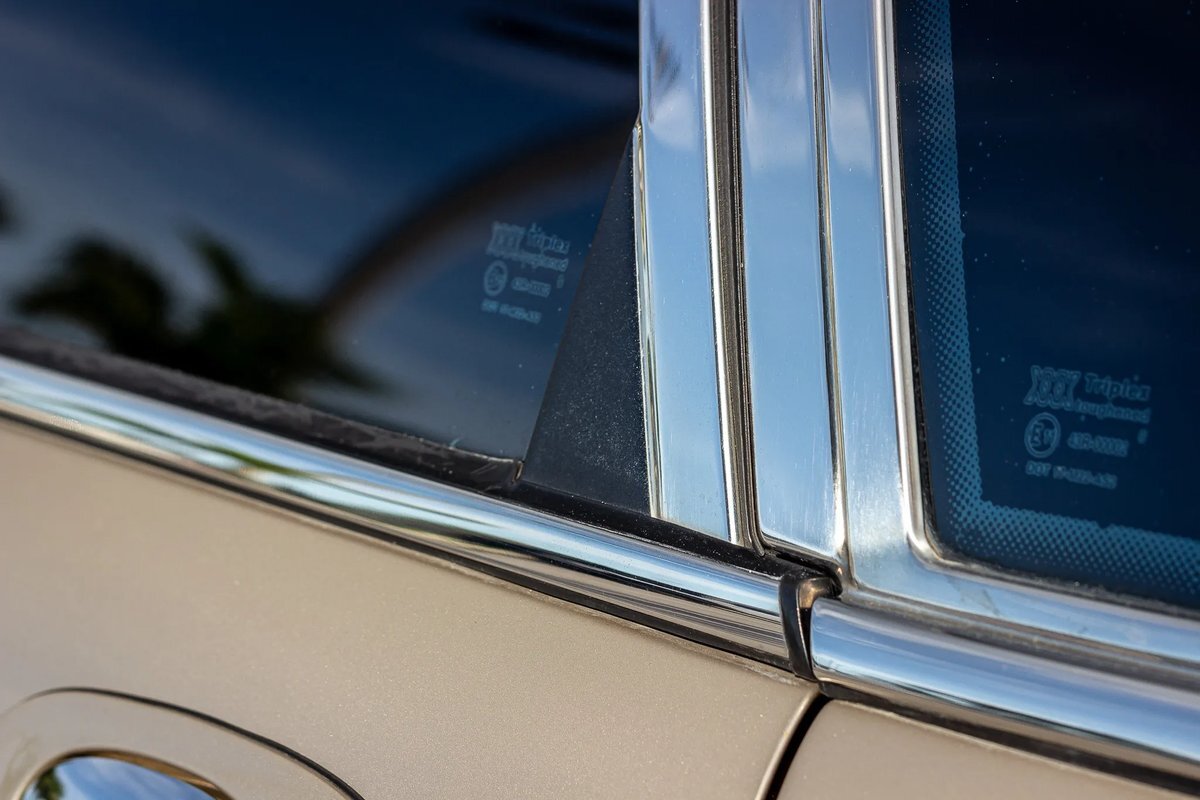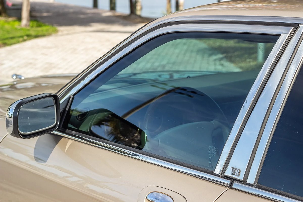 The car is finished in Topaz (SEC) and features bright trim and mirror covers. Additional equipment includes fog lights, a Leaper hood ornament, a power-operated sunroof, and dual exhaust outlets. The antenna broke off but is included in the sale.