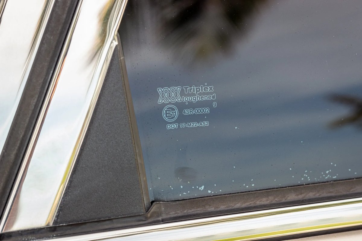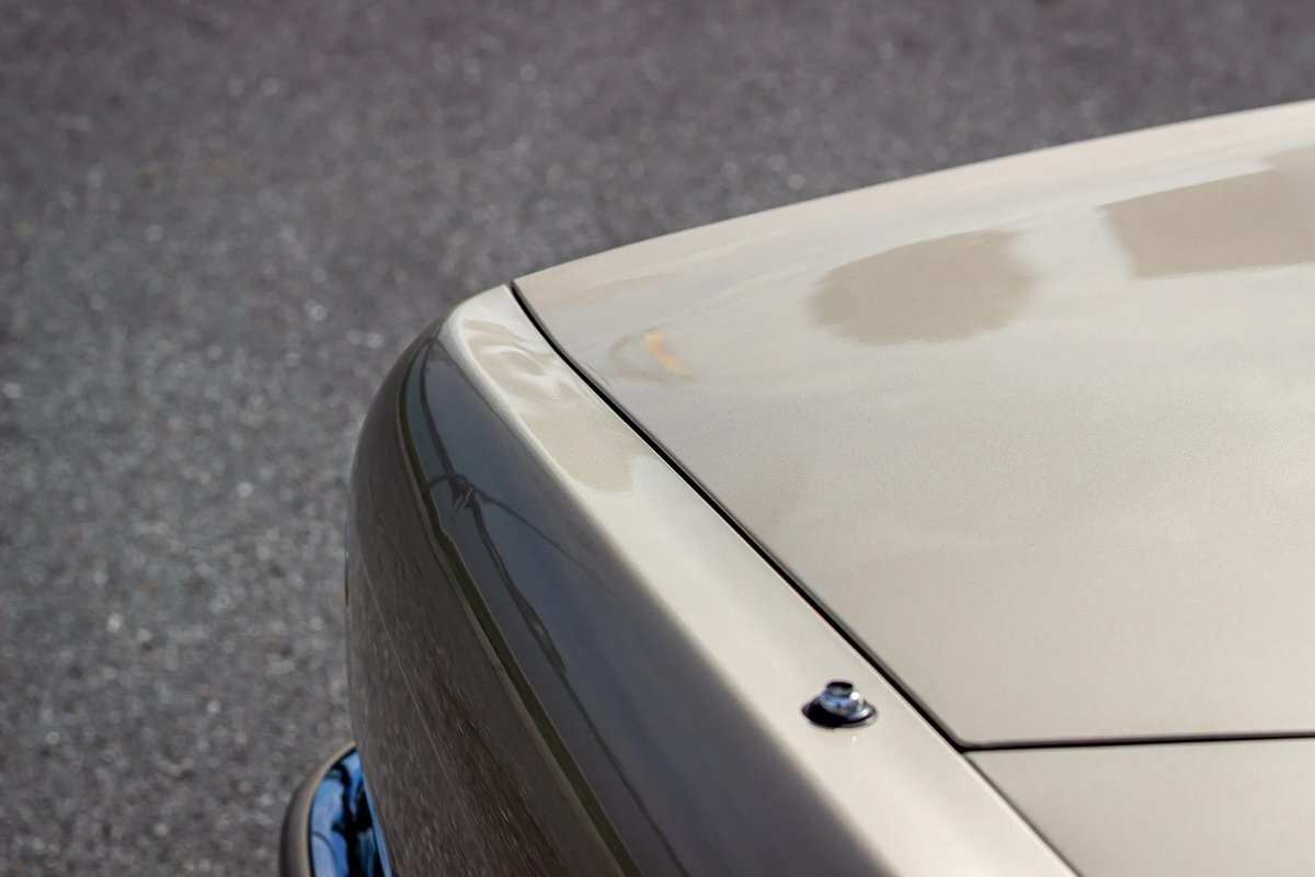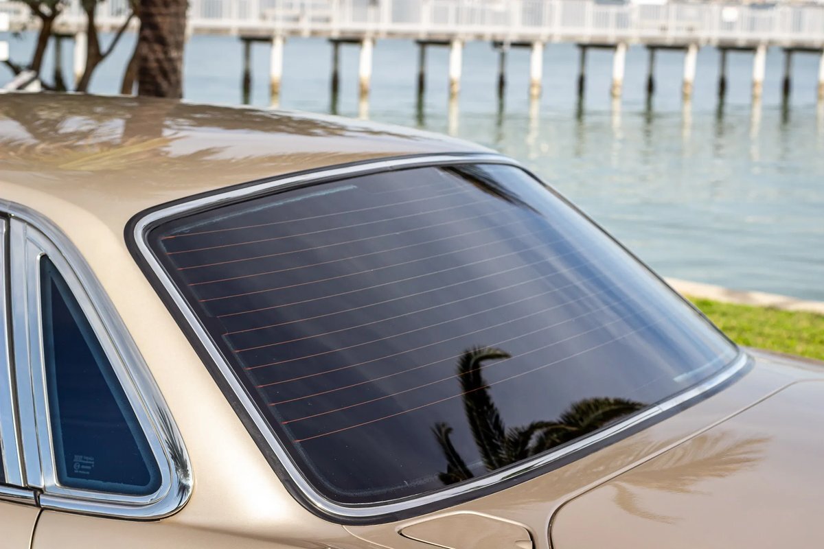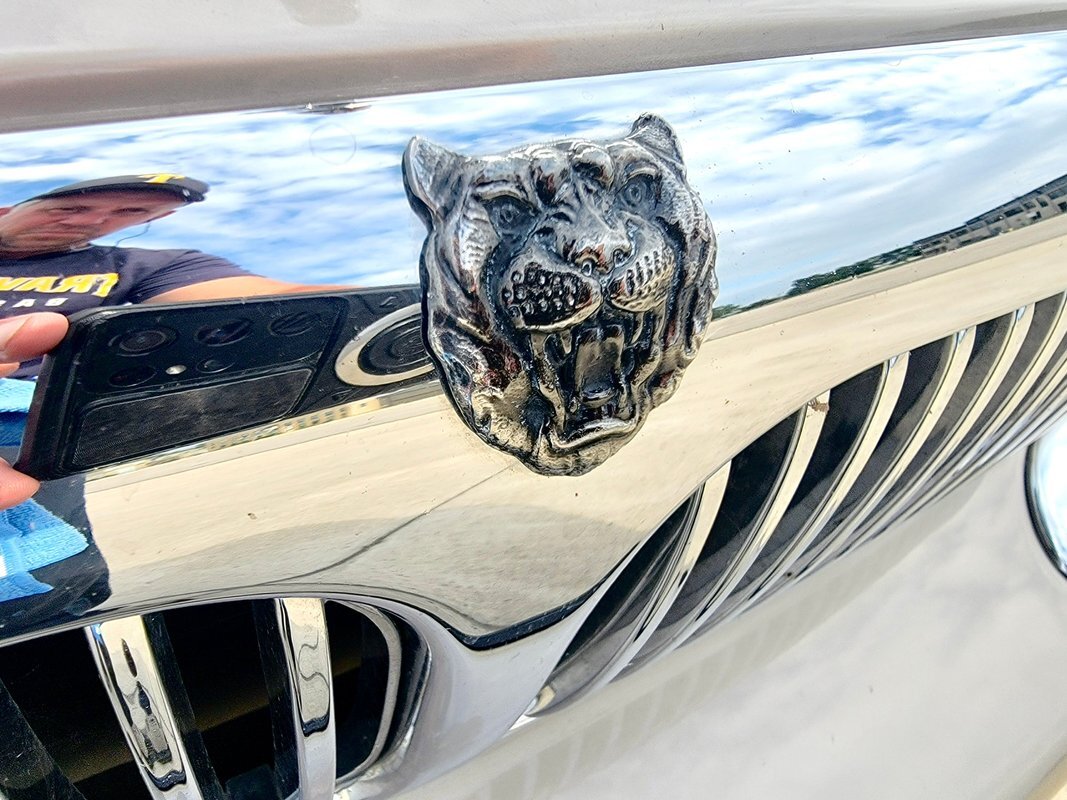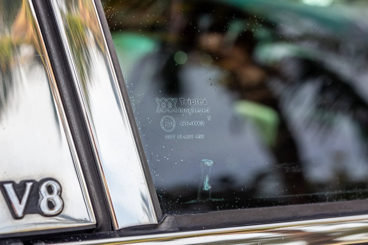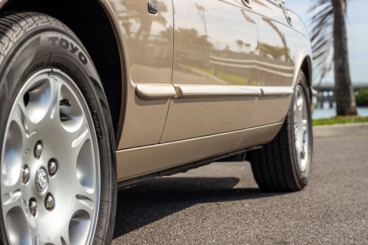 The car is finished in Topaz (SEC) and features bright trim and mirror covers. Additional equipment includes fog lights, a Leaper hood ornament, a power-operated sunroof, and dual exhaust outlets. The antenna broke off but is included in the sale.