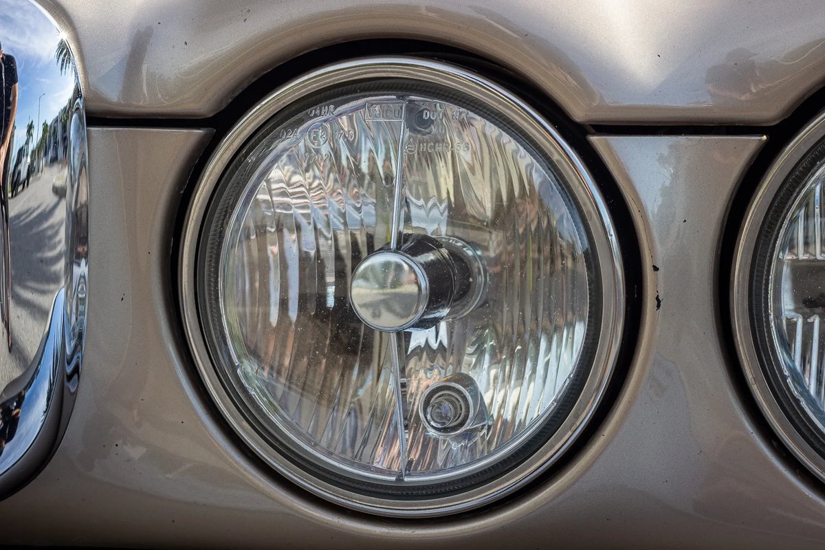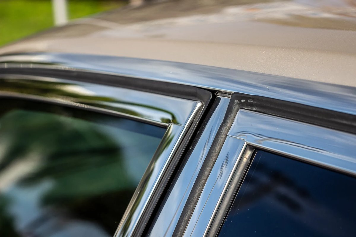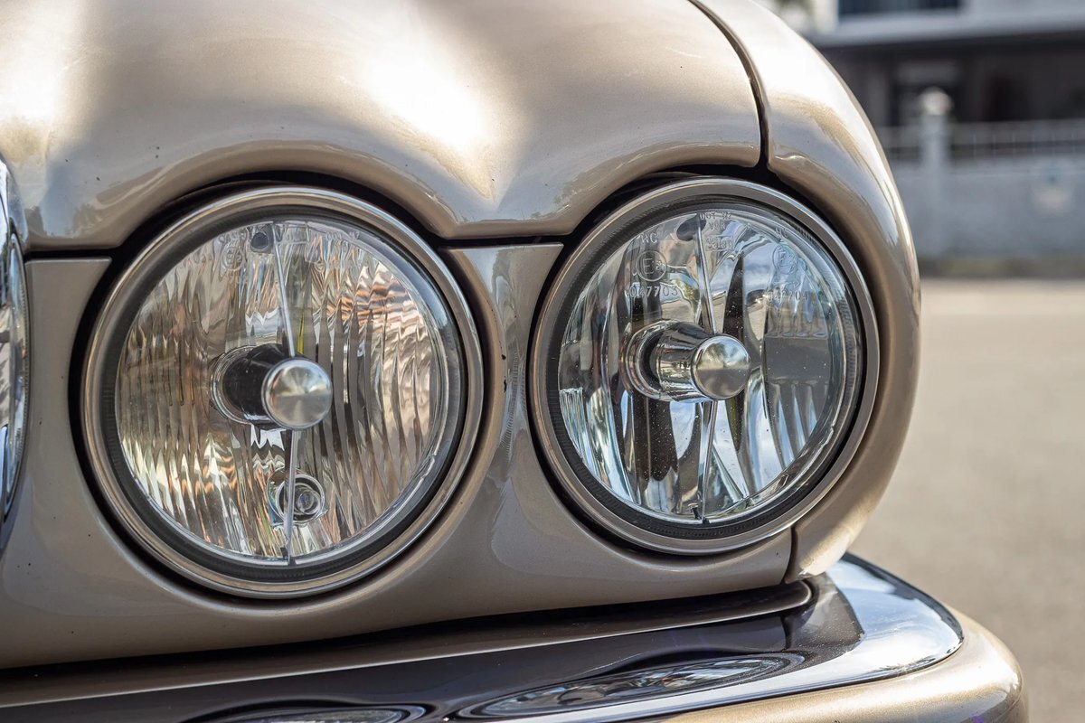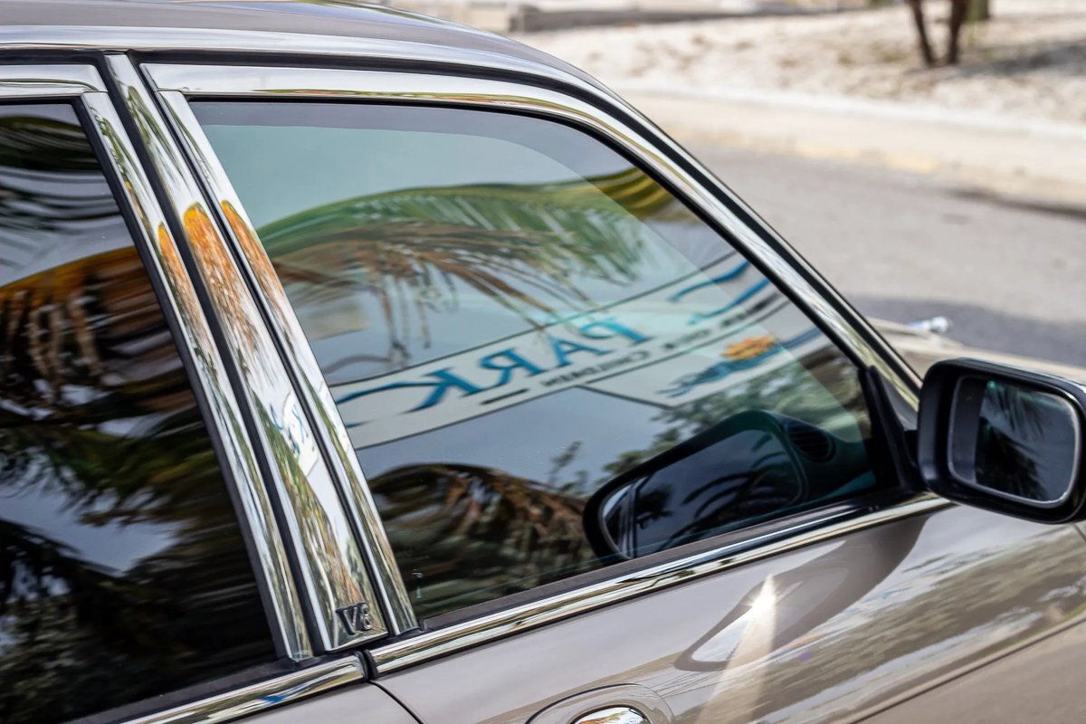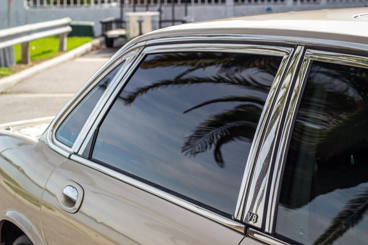 The car is finished in Topaz (SEC) and features bright trim and mirror covers. Additional equipment includes fog lights, a Leaper hood ornament, a power-operated sunroof, and dual exhaust outlets. The antenna broke off but is included in the sale.