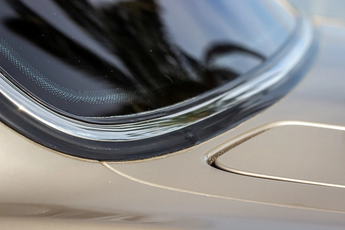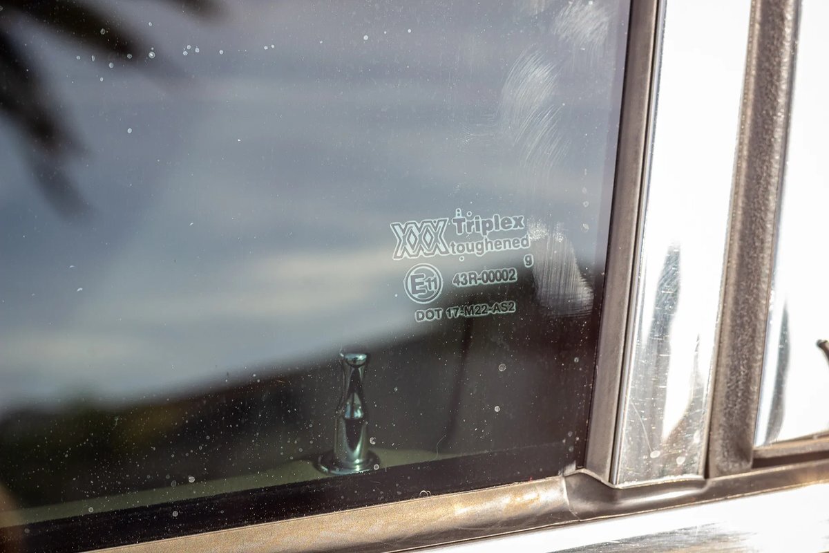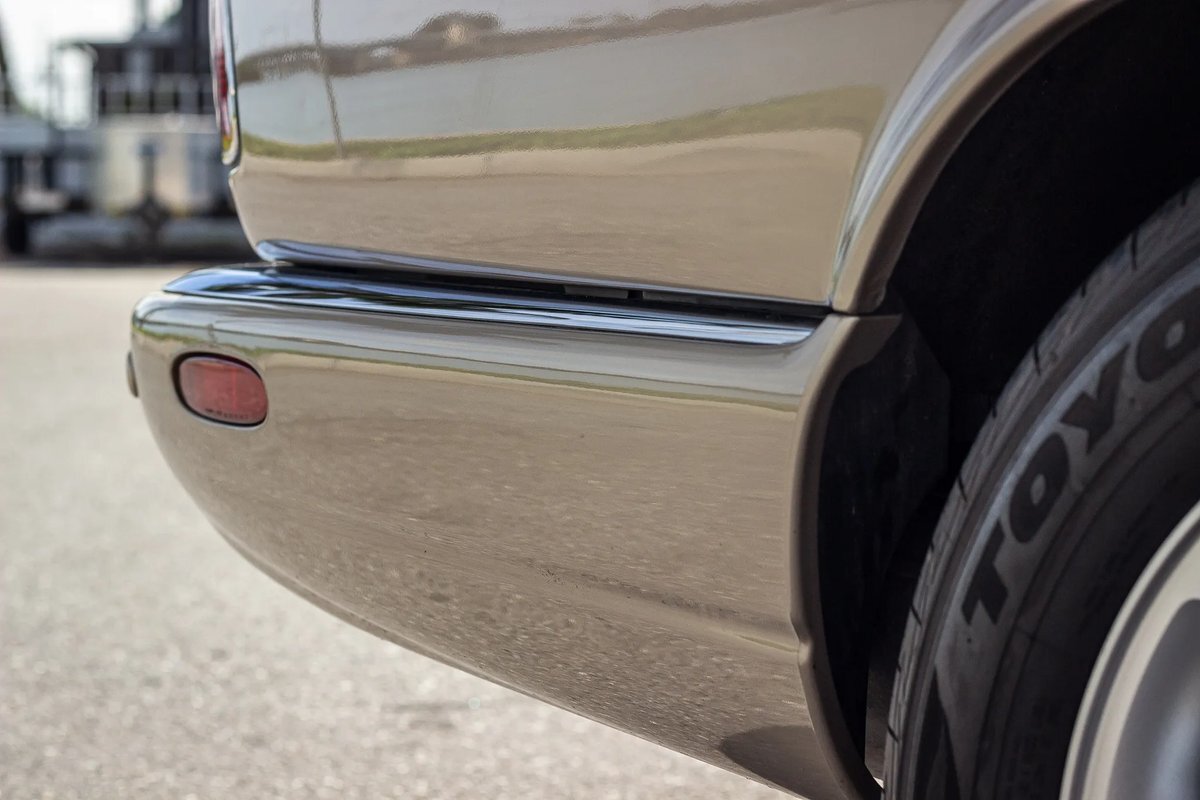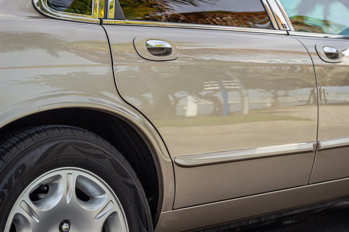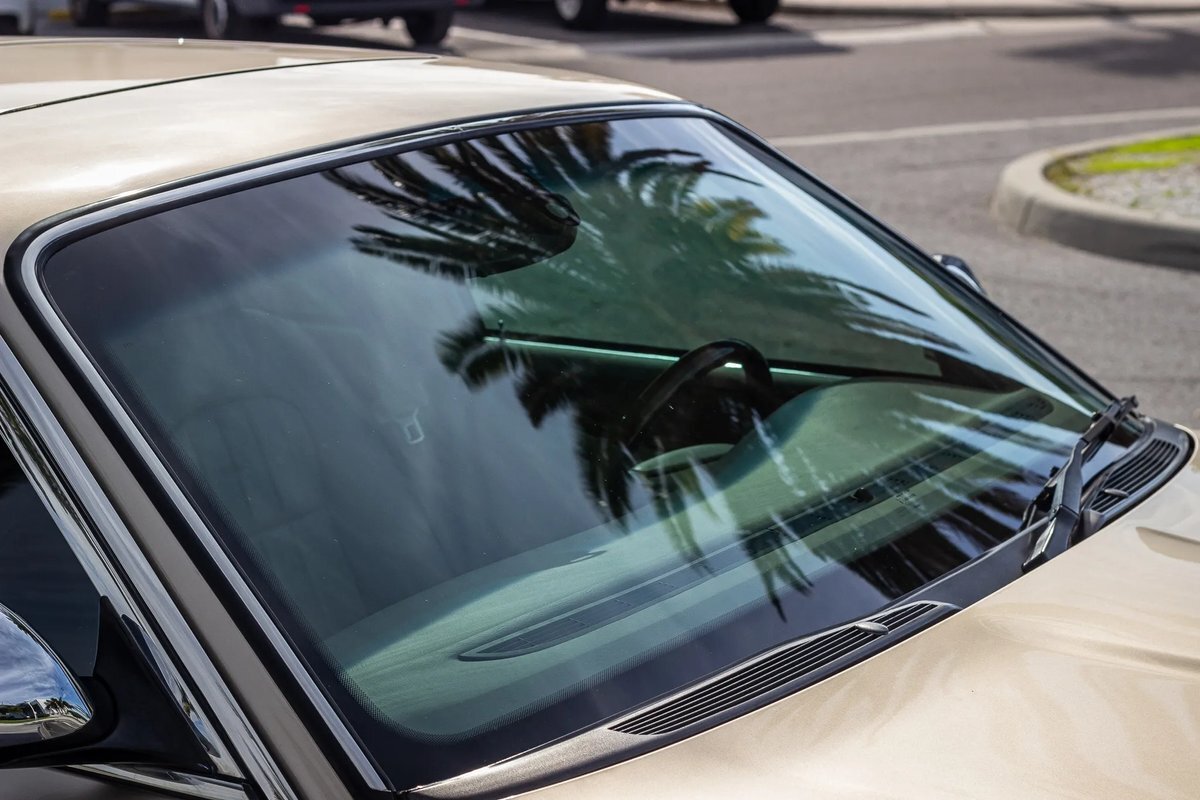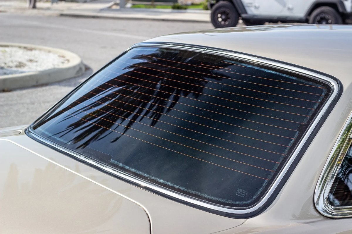 The car is finished in Topaz (SEC) and features bright trim and mirror covers. Additional equipment includes fog lights, a Leaper hood ornament, a power-operated sunroof, and dual exhaust outlets. The antenna broke off but is included in the sale.