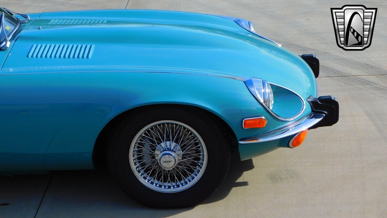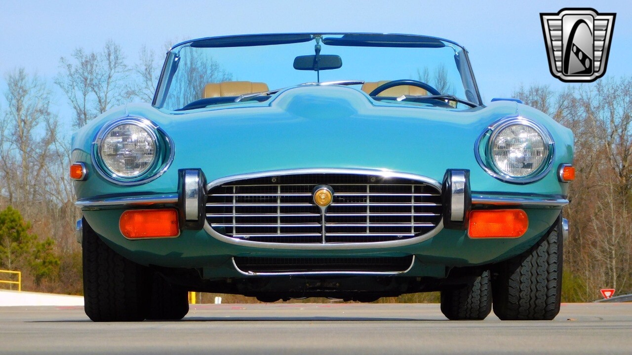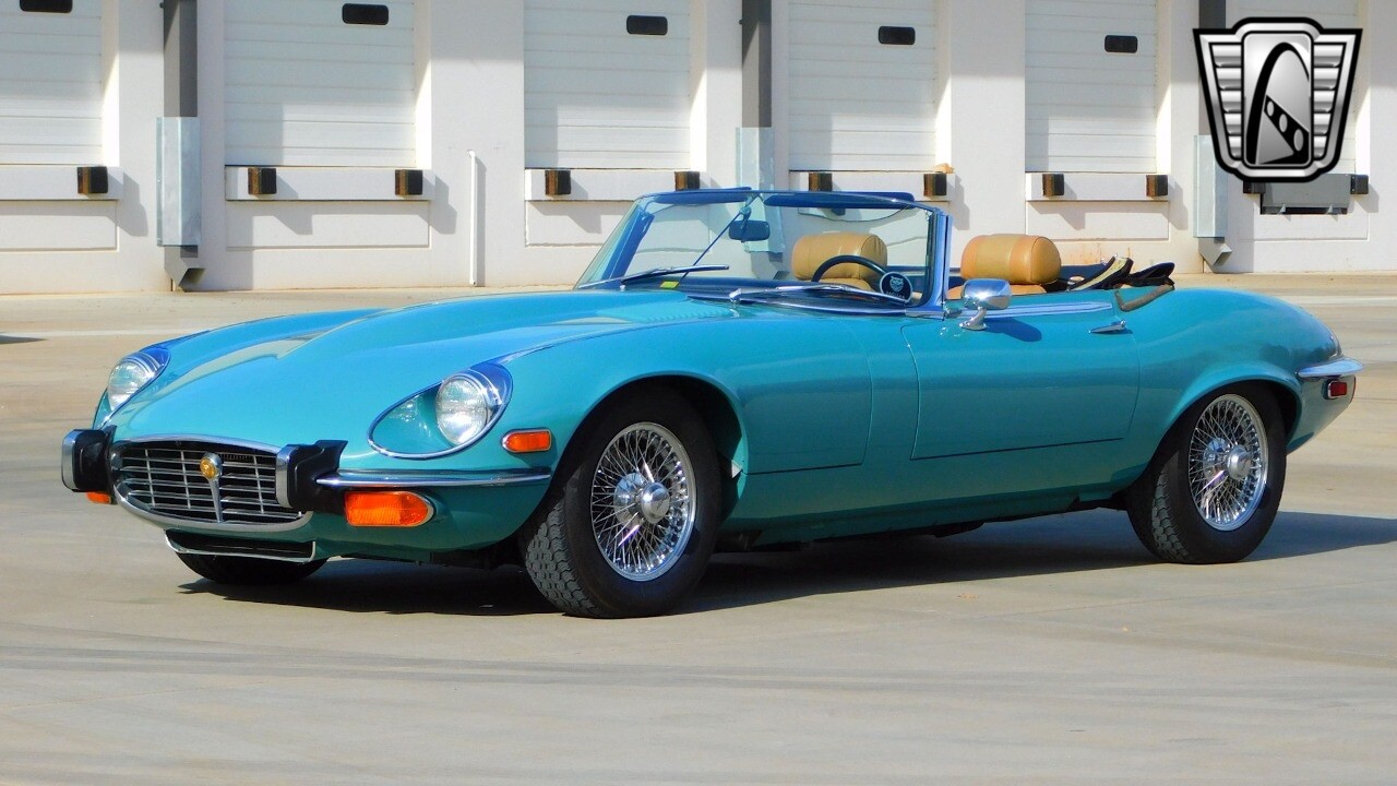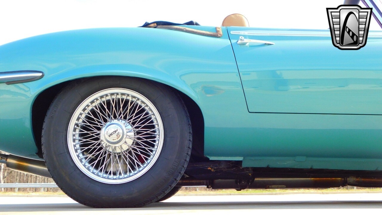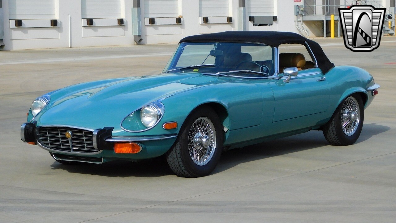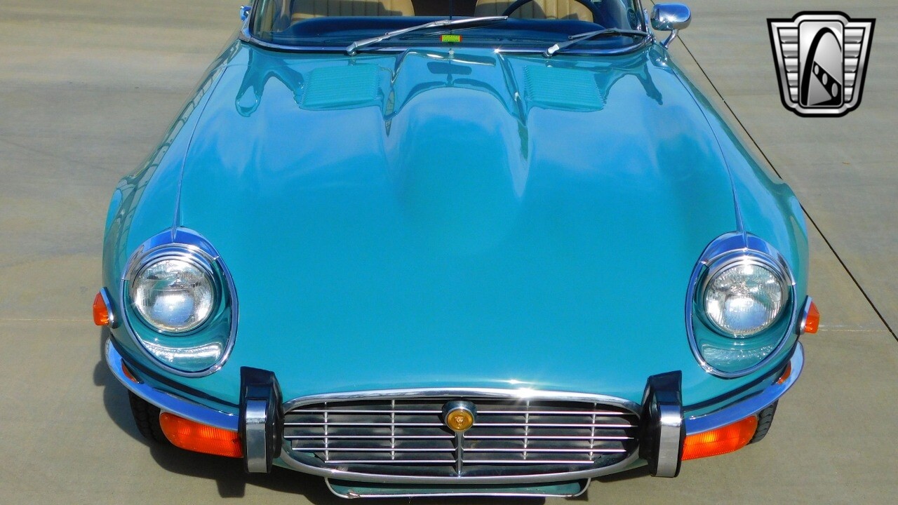 Introducing this 1973 Jaguar E-Type V12 Convertible, a blend of British engineering and alluring antiquity. With its appealing turquoise exterior, it is truly a classic motor vehicle. The dazzling body shade is contrasted by the tan interior - a combination made to turn heads and evoke admiration wherever you go.
